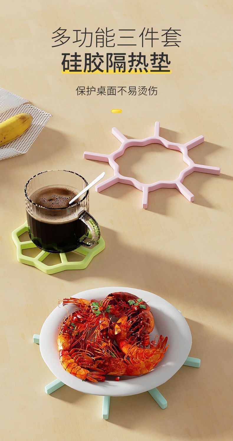 팔각형 식탁 실리콘 단열 매트 중공 가정용 주방 화상 방지 그릇 매트 크리에이티브 화상 방지 매트 고온 저항 코스터