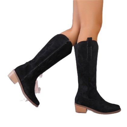 빈티지 자수 V-입 마틴 부츠 여성의 가을과 겨울 다크 브라운 청키 힐 미드 실린더 사이버 연예인 기사 부츠 짧은 부츠 웨스턴 데님