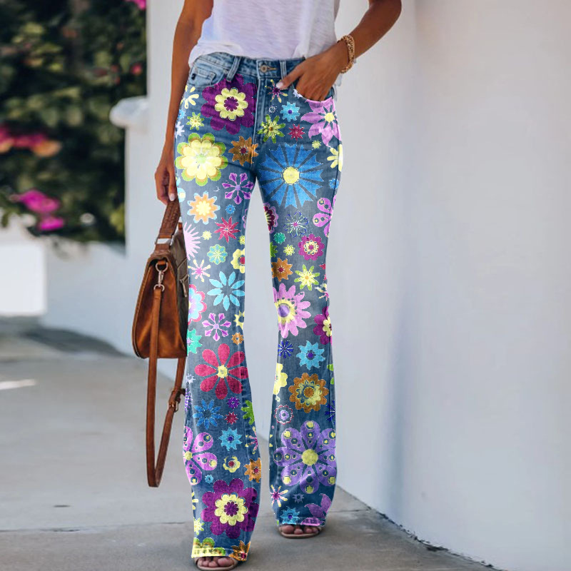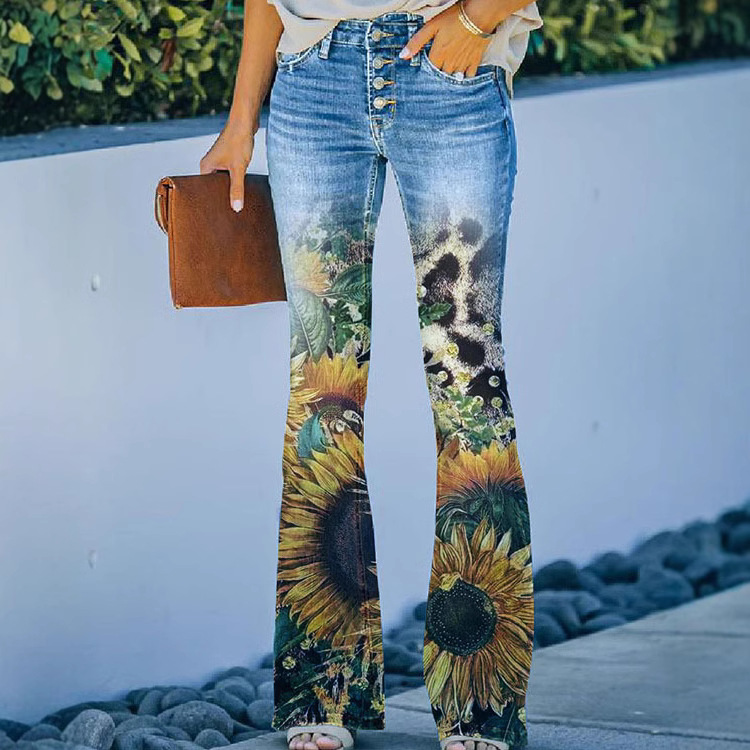 BD 01 260g 능직 여성 인쇄 모조 청바지 AliExpress 이베이 유럽과 미국 대외 무역 얇은 캐주얼 바지