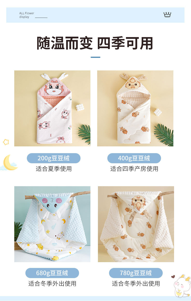 지퍼형 비니이불, 탈부착 가능한 신생아 비니이불, 외출용 포장이불, 아기 순면이불