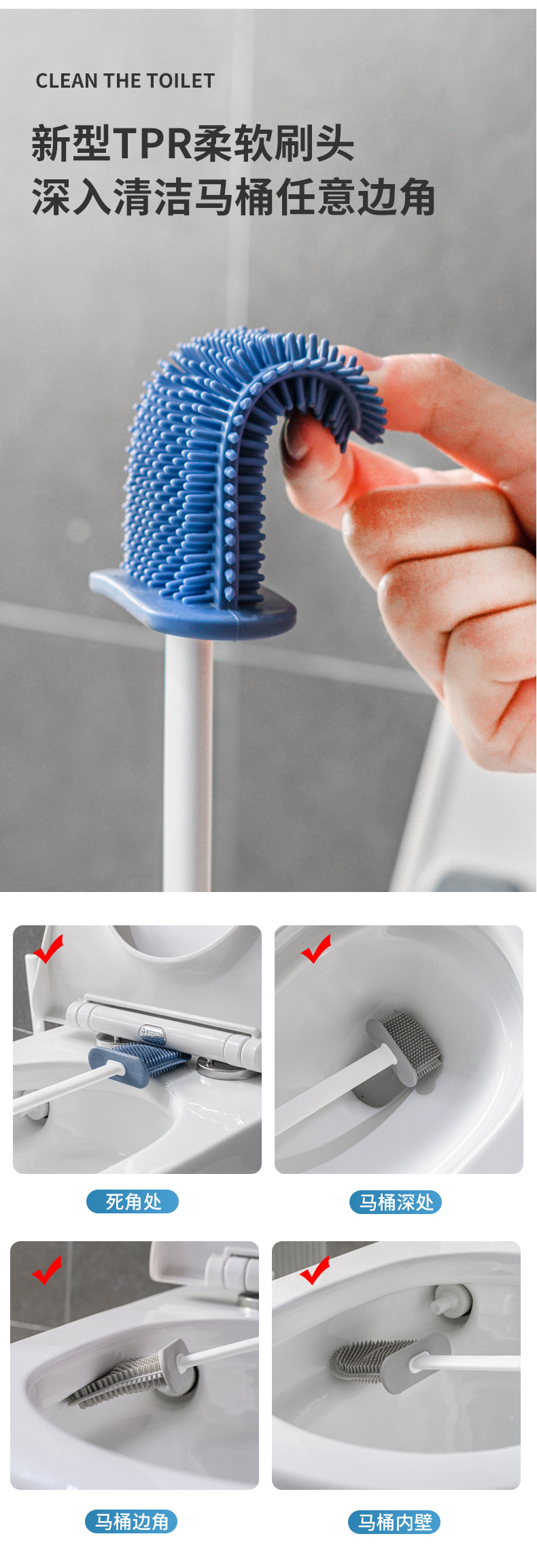 아니 데드 앵글 화장실 브러쉬 가정용 실리콘 화장실 벽걸이 형 벽 세척 화장실 브러시 유물 청소 브러시 세트