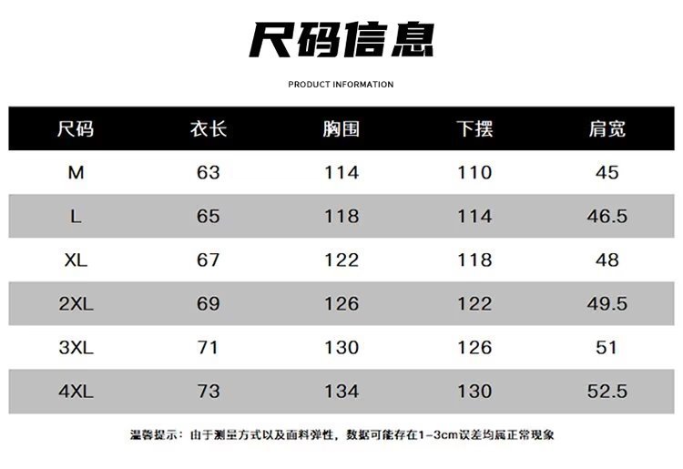 本商品是不含税的价格,如需开发票请联系客服 申请退货的商品不影响二次销售才能退货退款 张尺码表为通用变,宽松版型的3XL=5XL,敬请参考