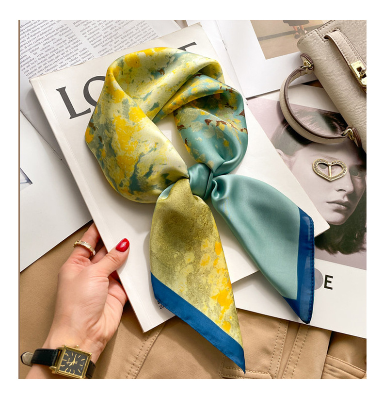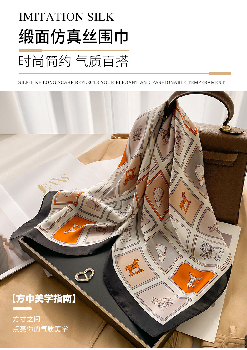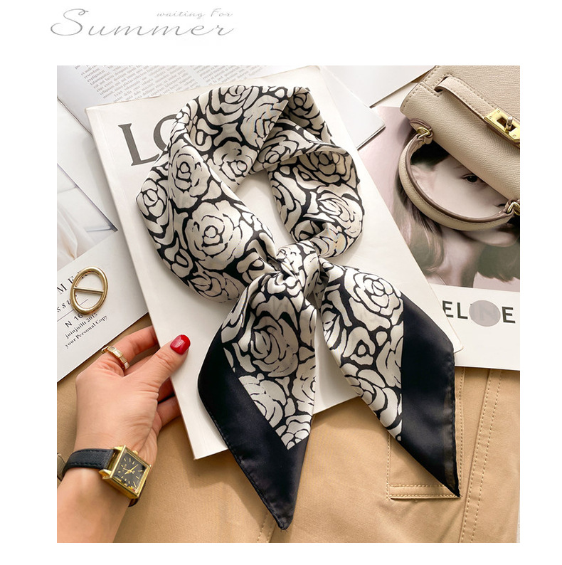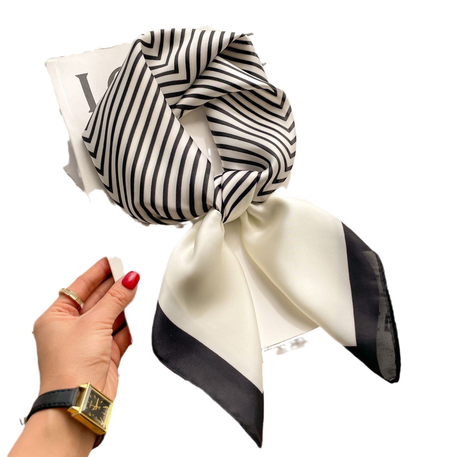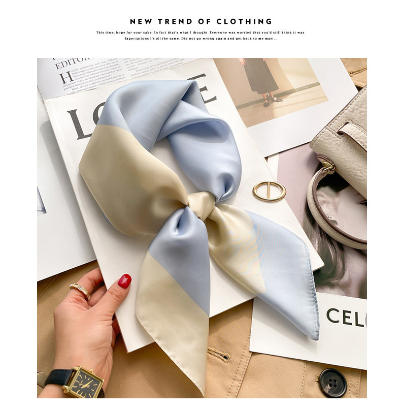 새로운 봄과 가을 모조 실크 작은 스카프 여성용 패션 모든 매치 리본 장식 스카프 고급 감각 비즈니스 착용 작은 스카프