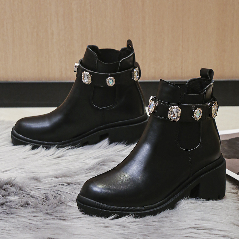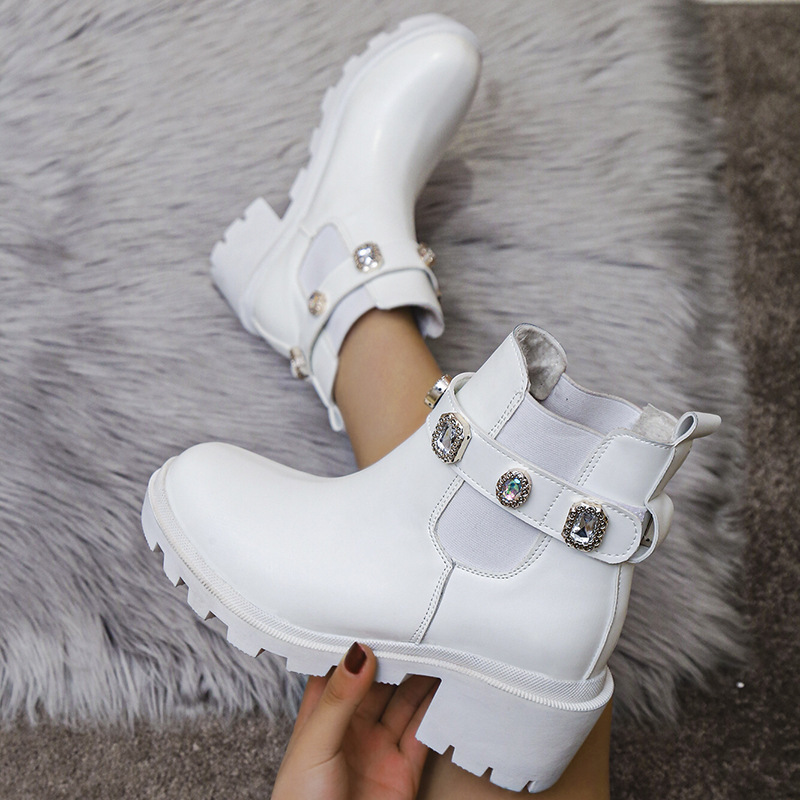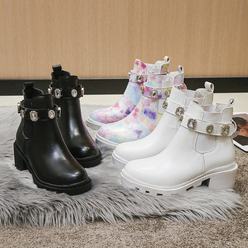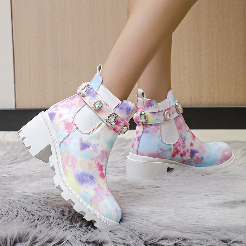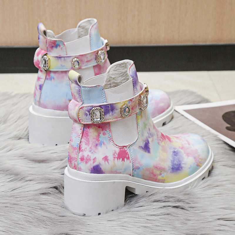 대외 무역 새로운 플러스 사이즈 다채로운 인쇄 짧은 부츠 여성 2022 유럽과 미국 패션 모조 다이아몬드 두꺼운 패션 마틴 부츠 여성