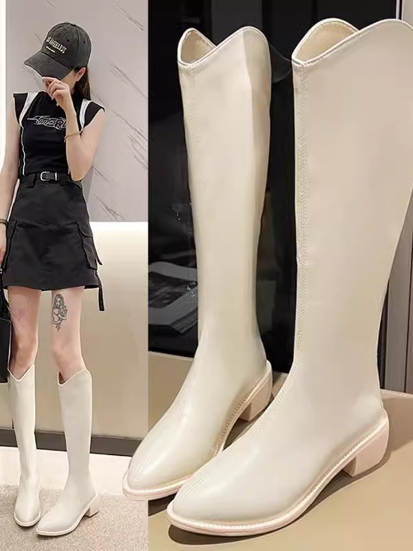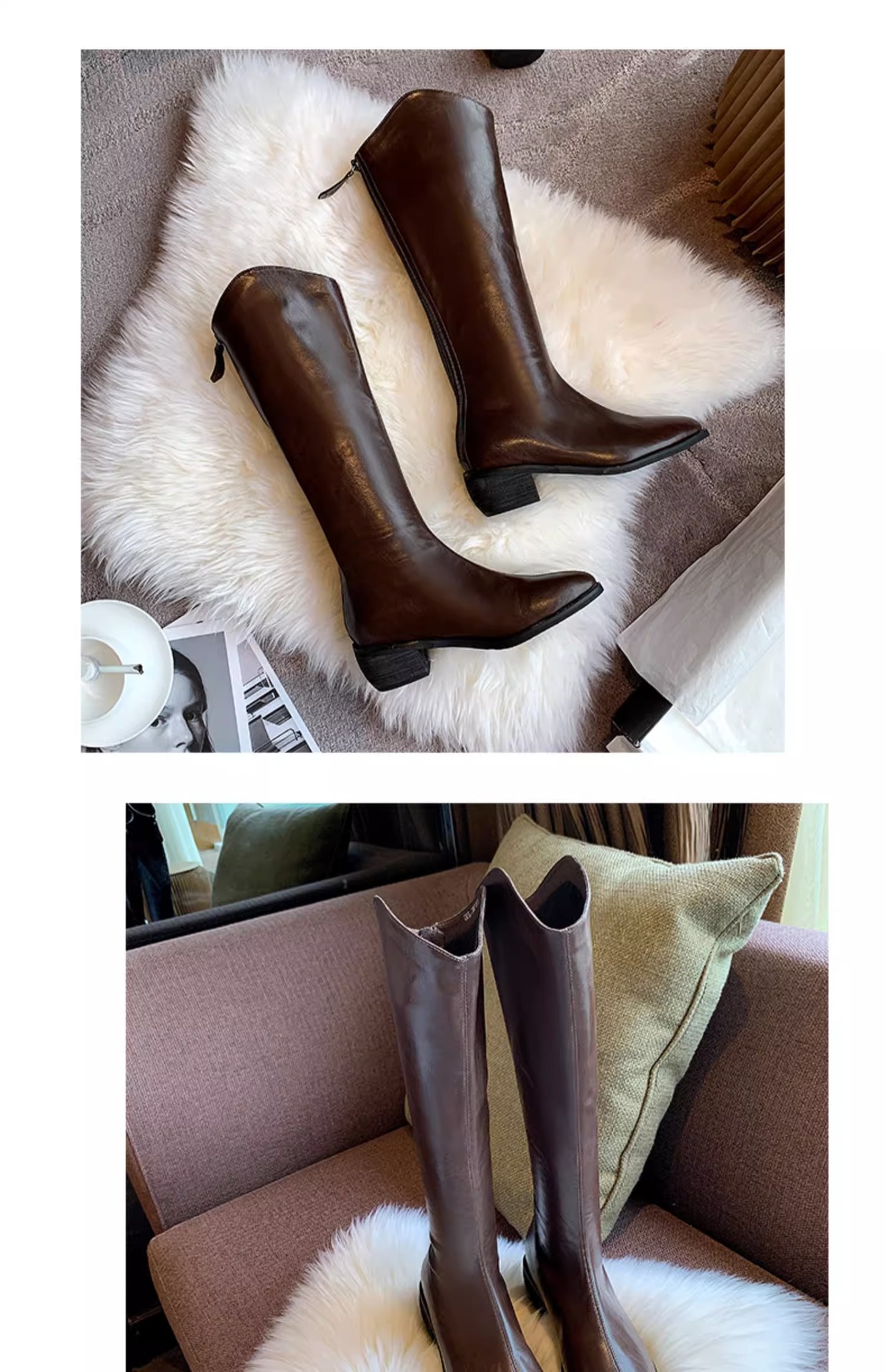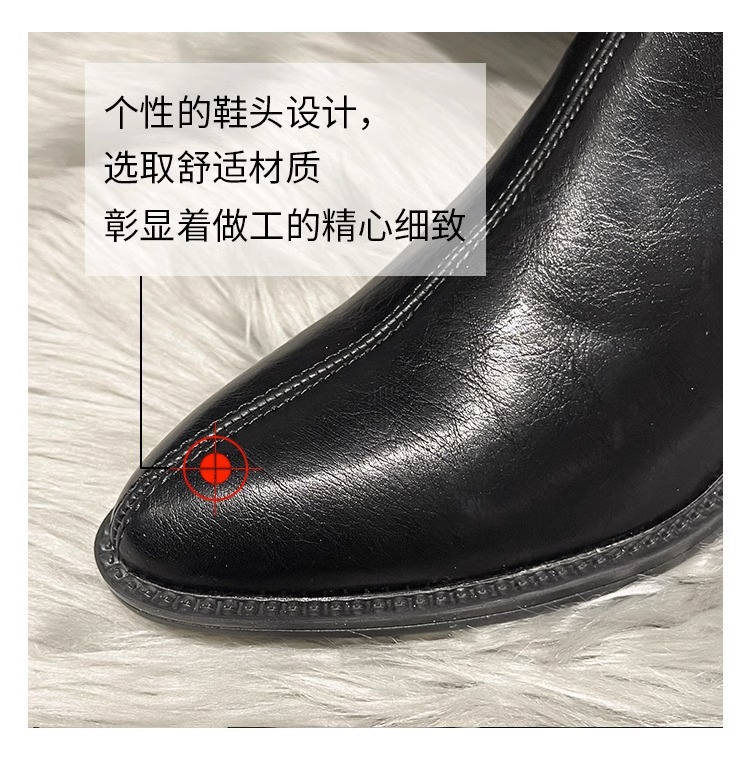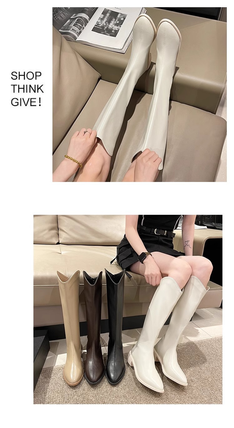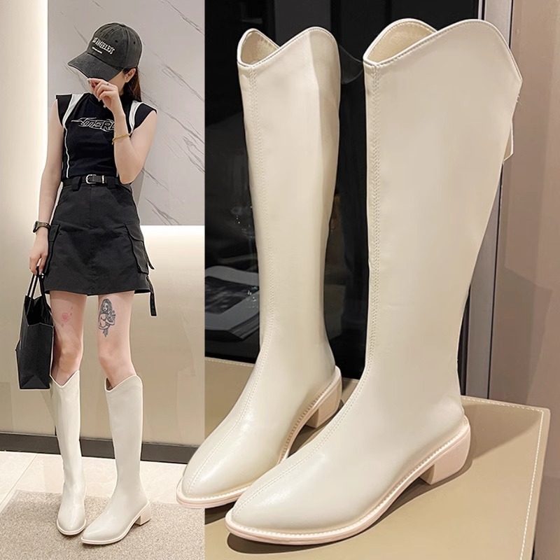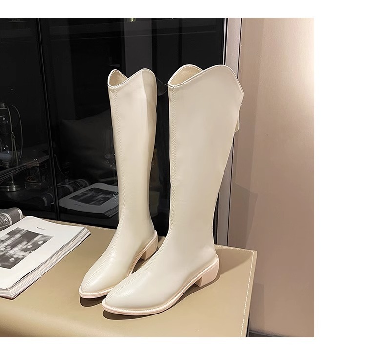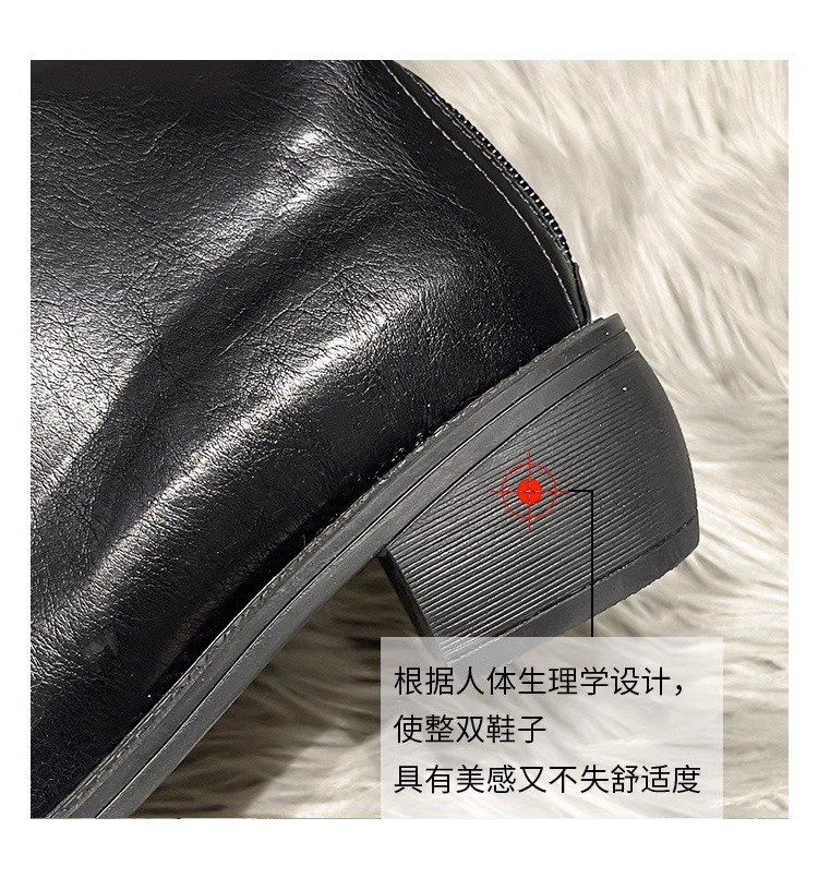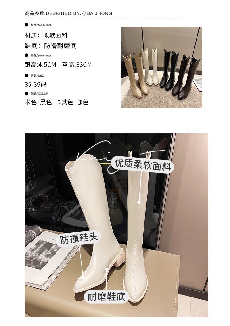 정품 가죽 부츠 V 입 밀크 티 컬러 브라운 봄, 가을 두꺼운 굽 부츠 여성 겨울 새로운 스타일 작은 하이 부츠