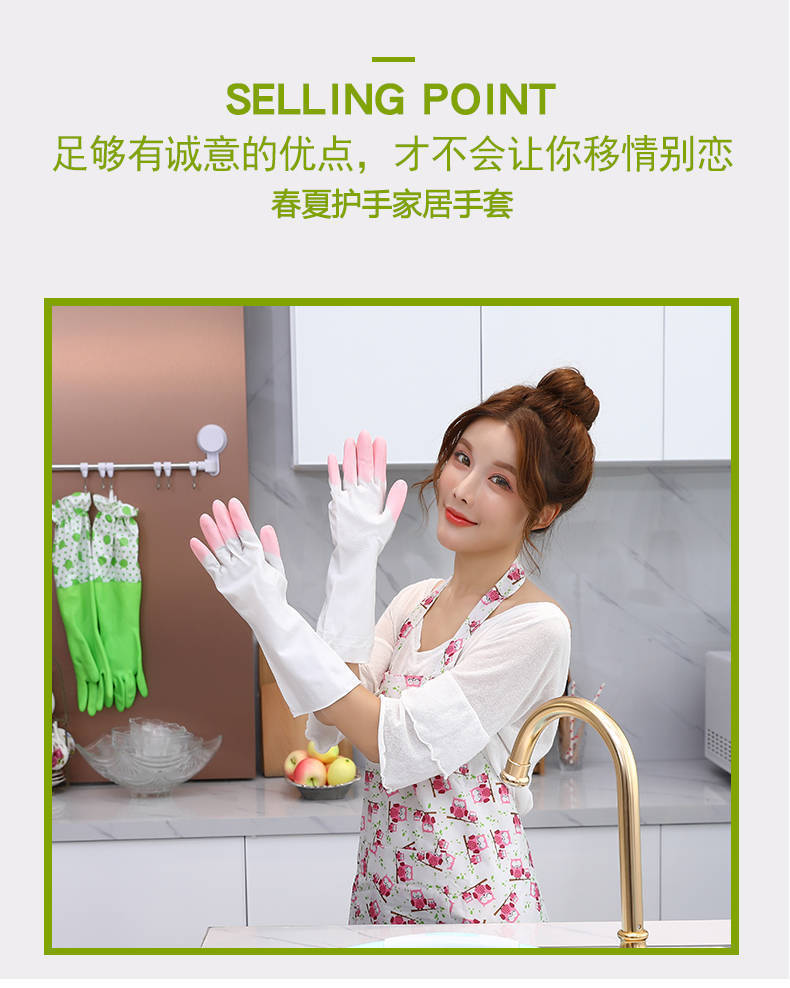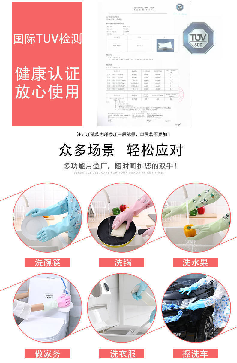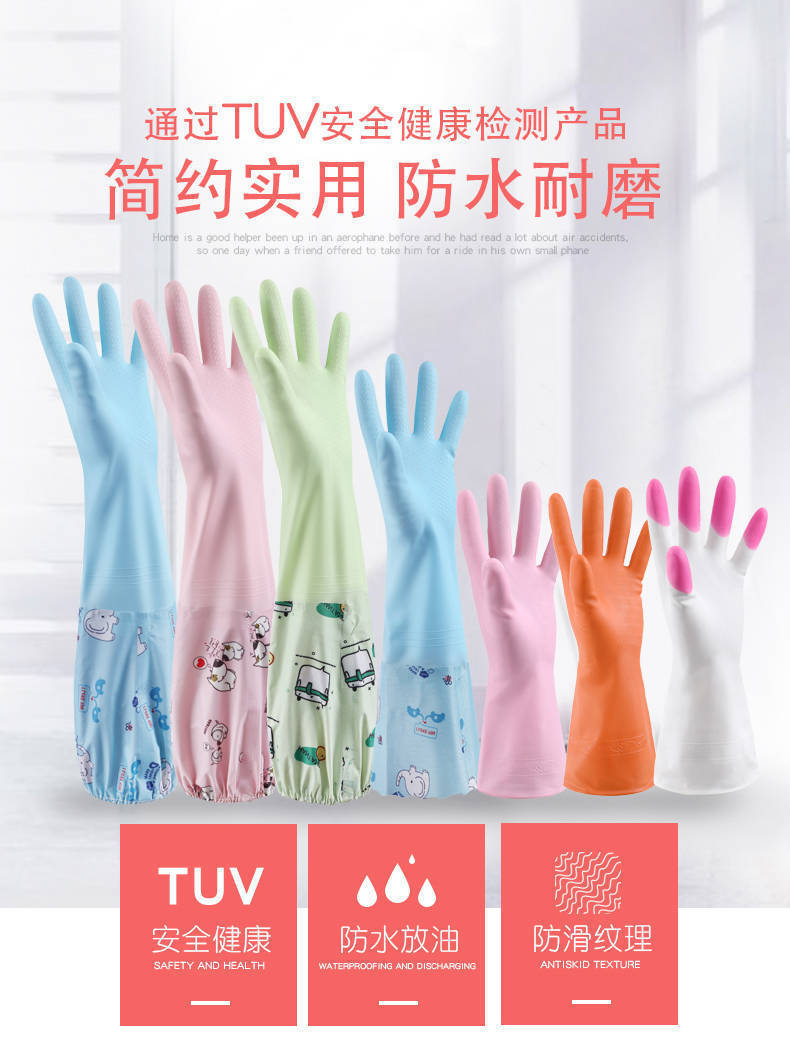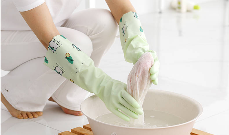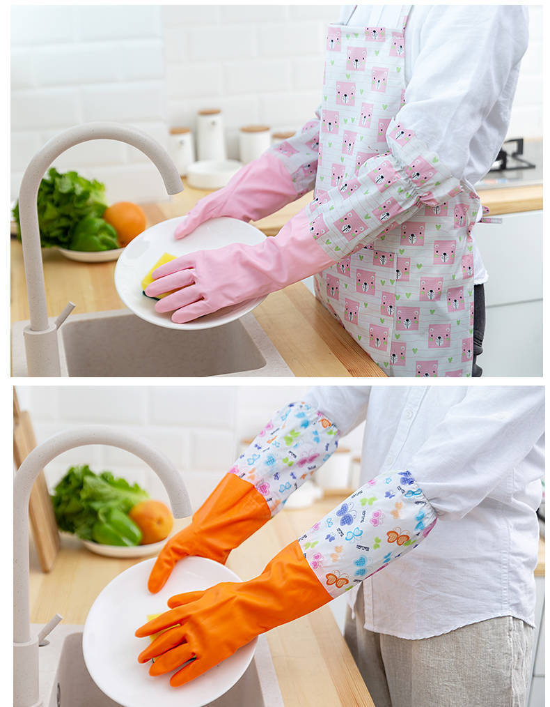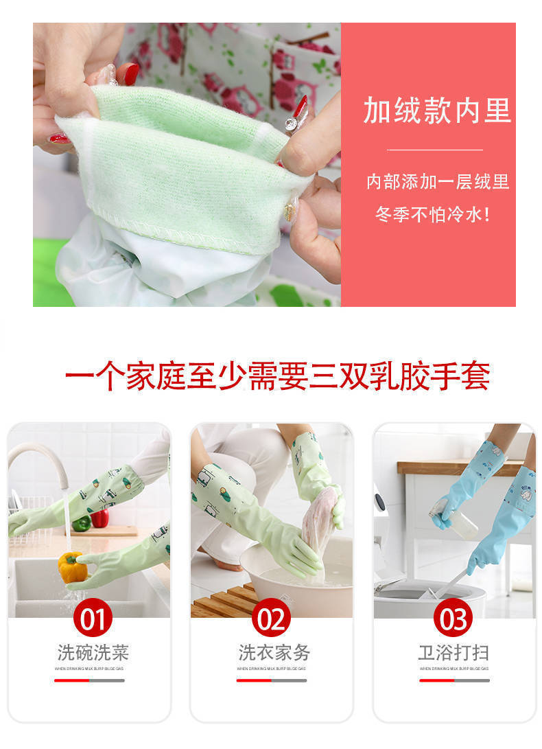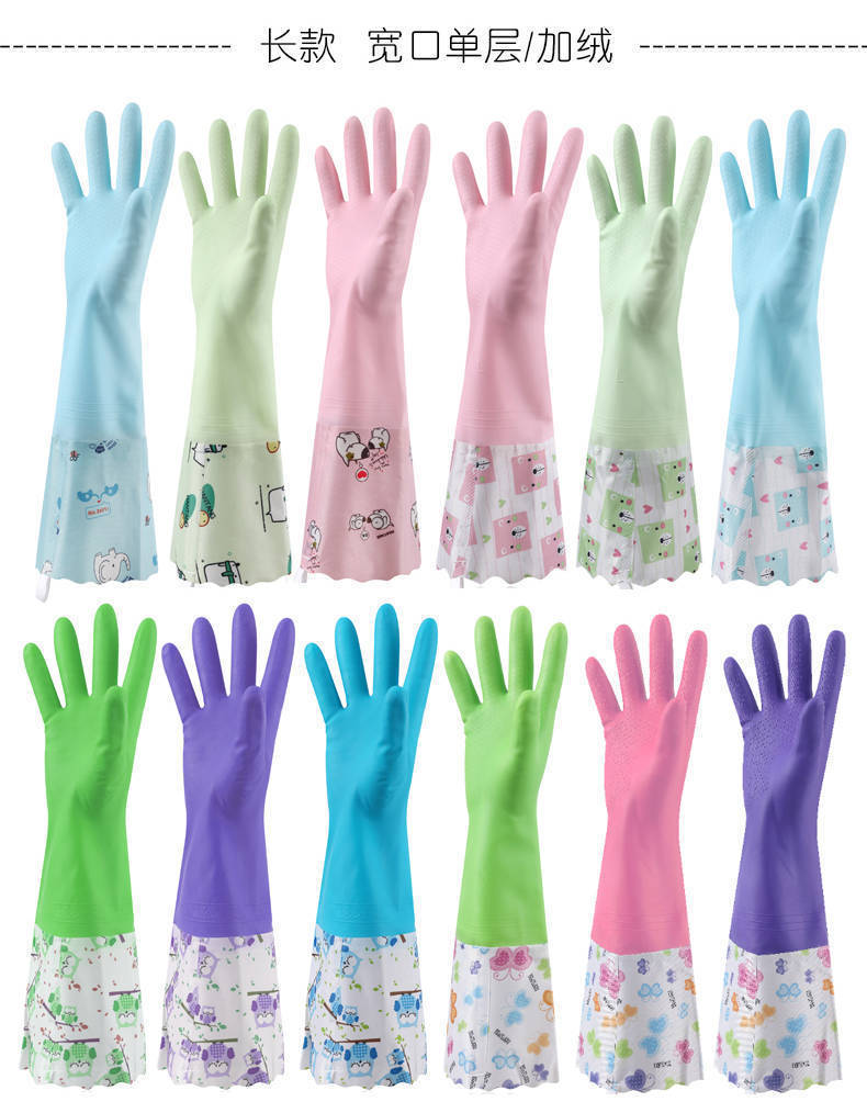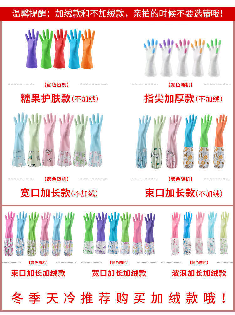 가정용 청소용 고급 벨벳 식기 세척 장갑 도매 내구성 청소 가정용 세탁 고무 장갑 가죽 방수 두꺼워 내구성