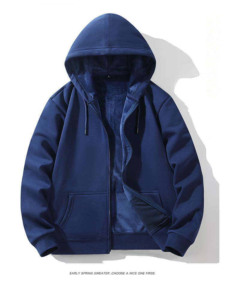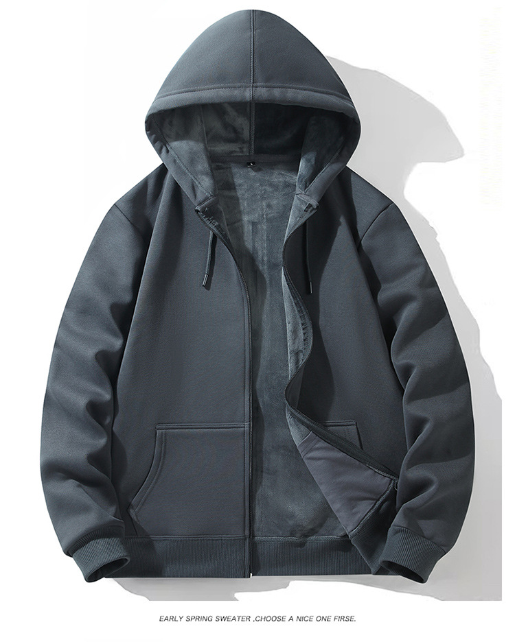 무거운 후드 스웨터 남자의 카디건 재킷 새로운 가을과 겨울 기모 두꺼운 재킷 느슨한 학생 단색 크로스 보더