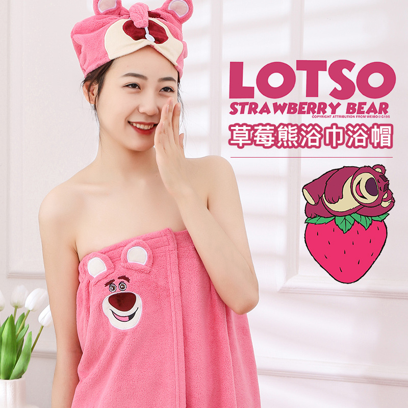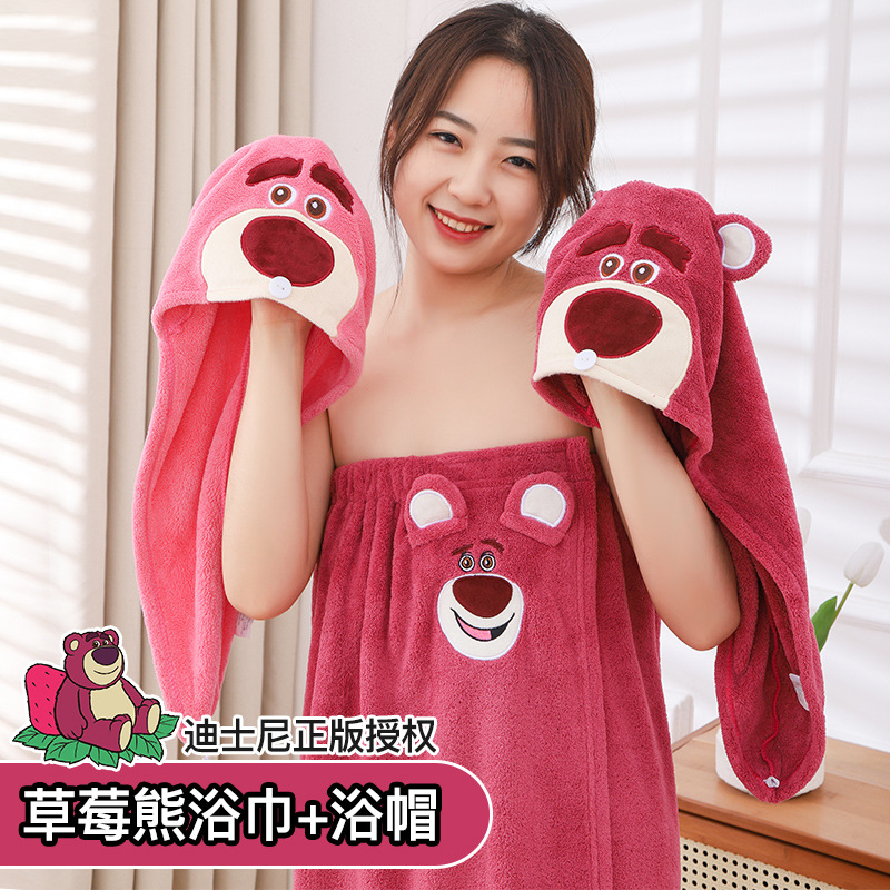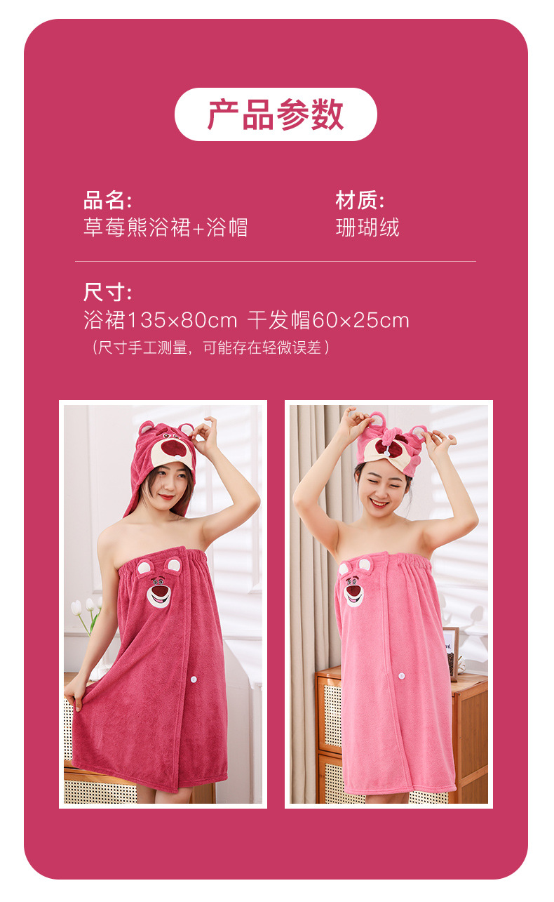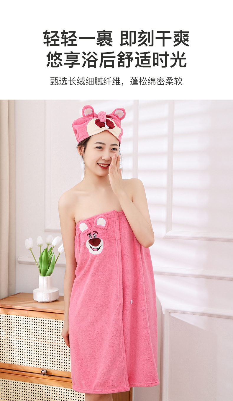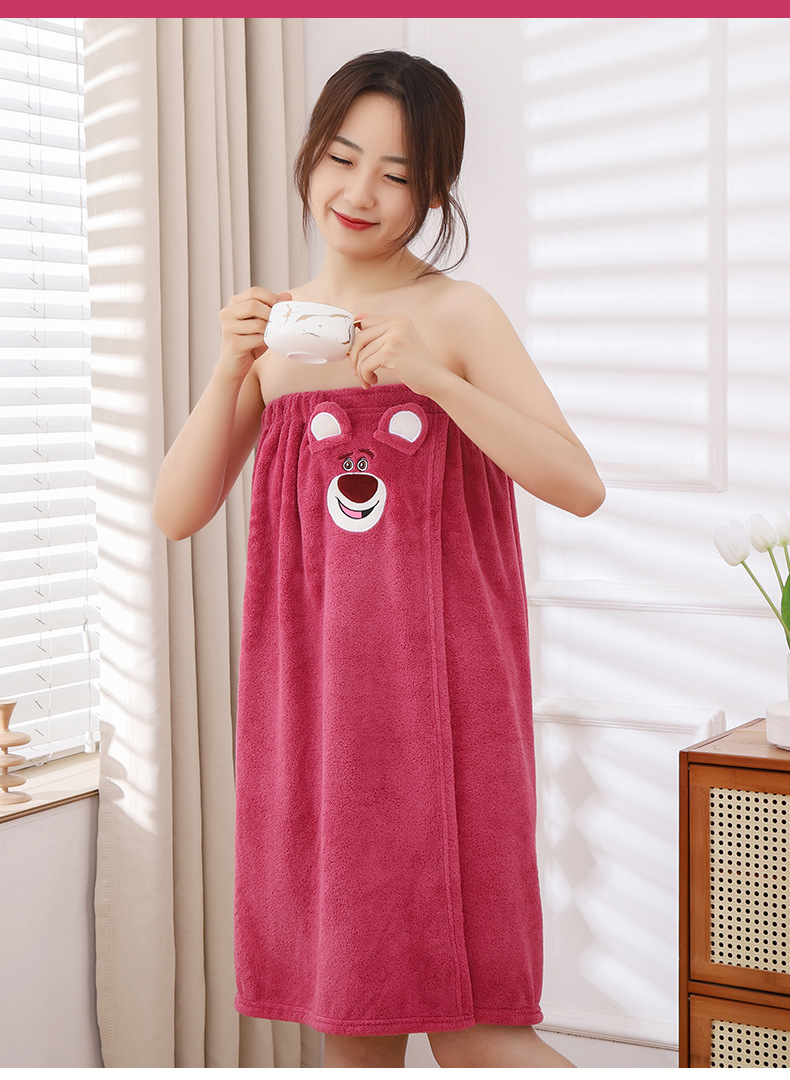딸기 곰 목욕 원피스 흡수성 두꺼운 머리없는 목욕 타월 대형 여성용 웨어러블 랩 긴 목욕 가운 빠른 헤어 후드