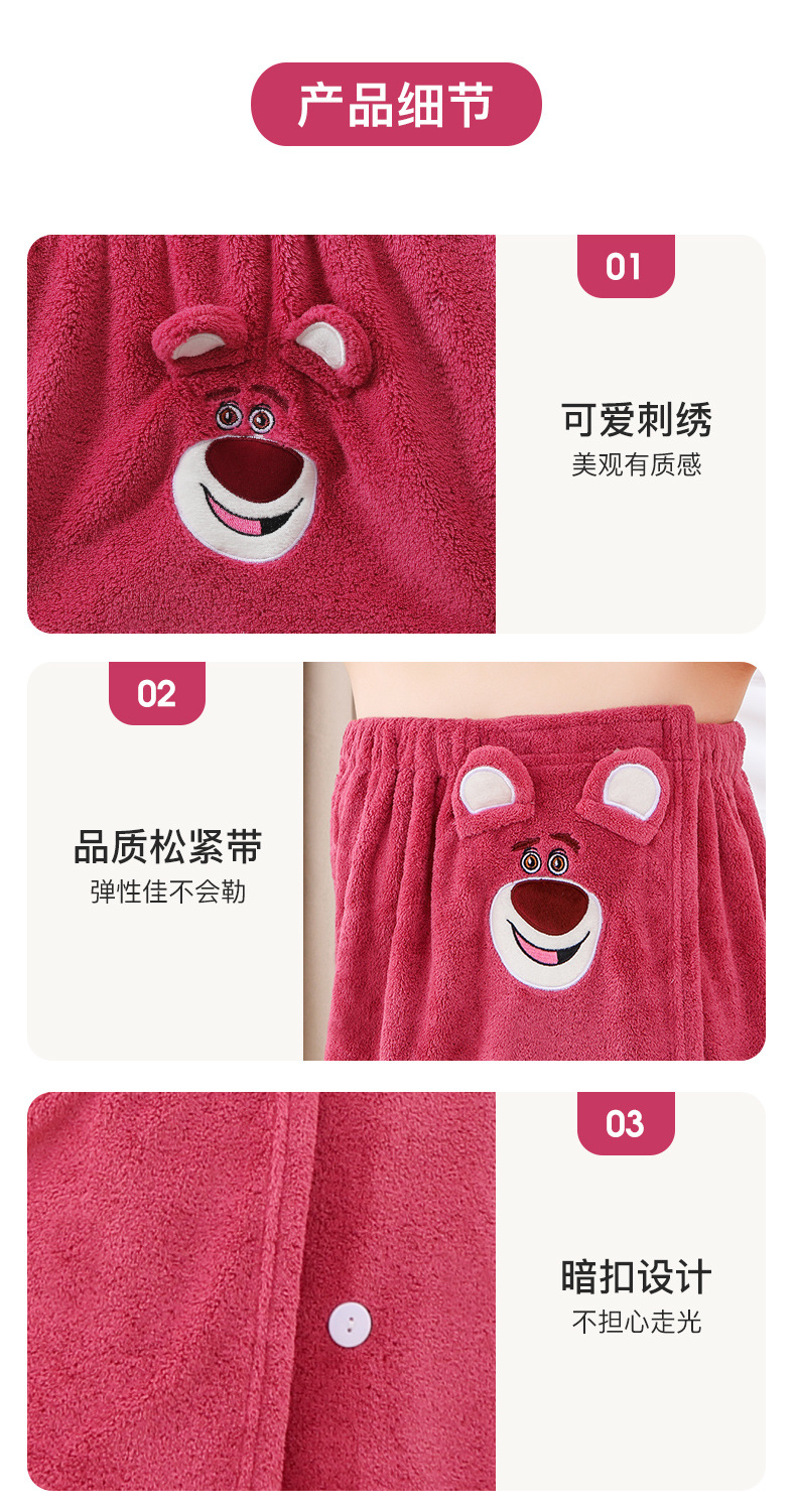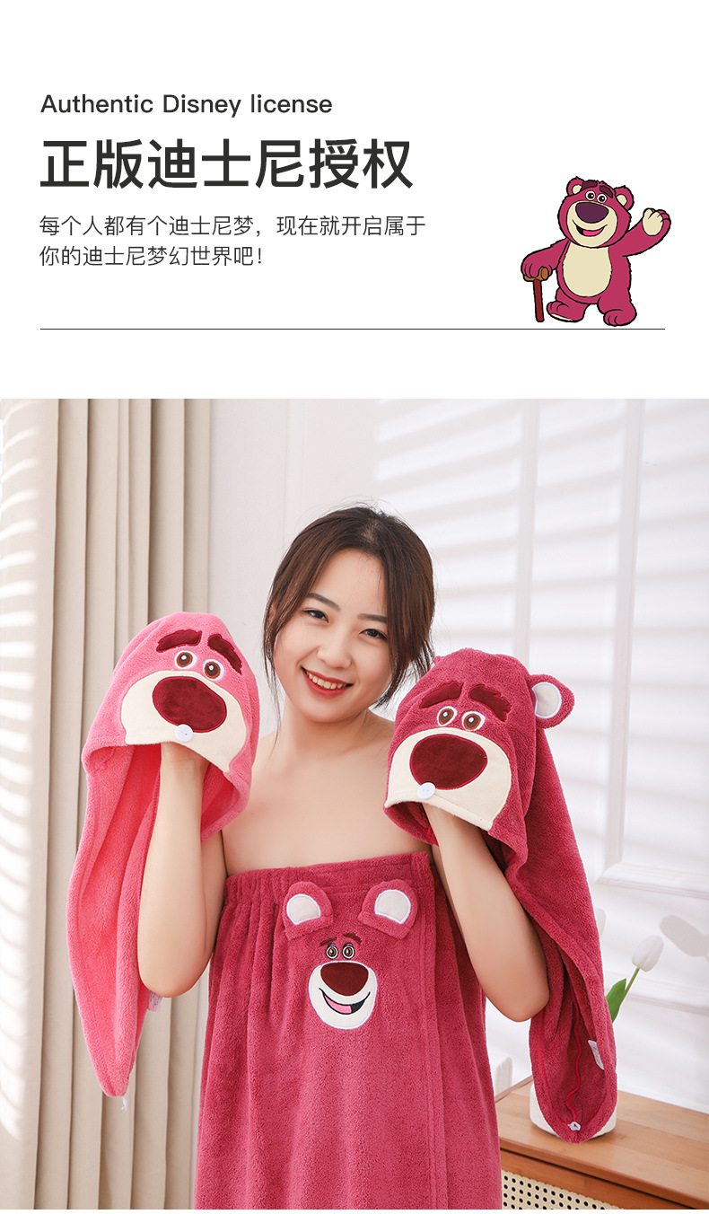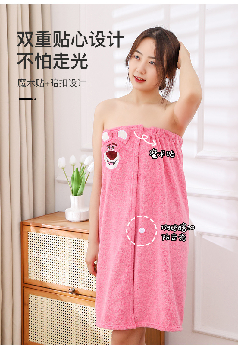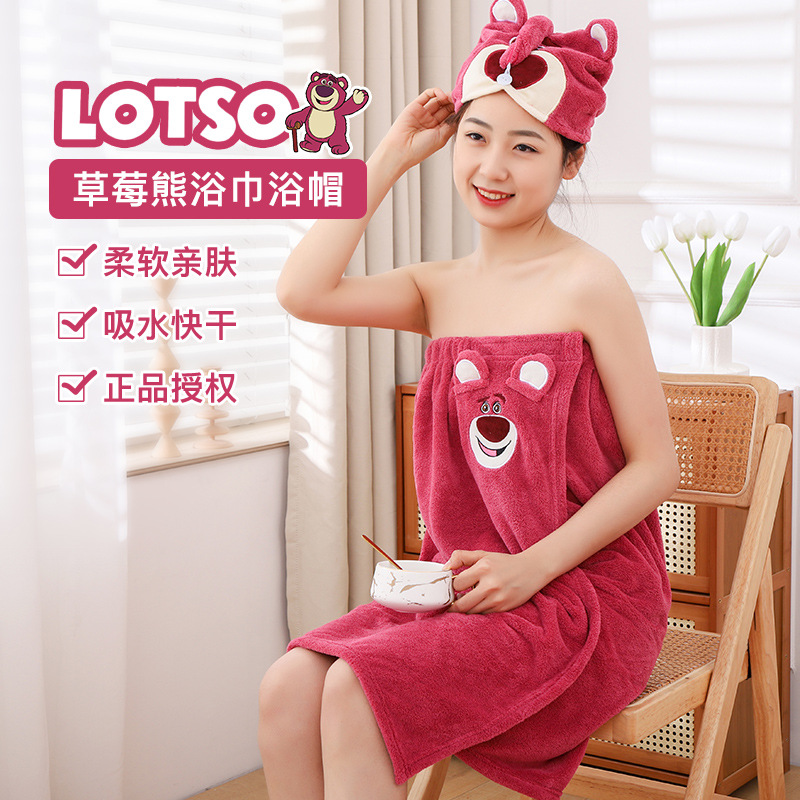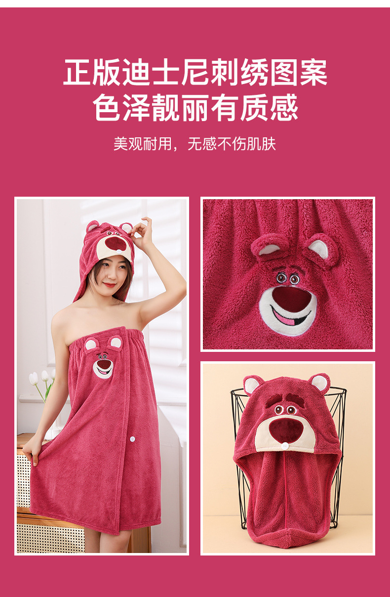 딸기 곰 목욕 원피스 흡수성 두꺼운 머리없는 목욕 타월 대형 여성용 웨어러블 랩 긴 목욕 가운 빠른 헤어 후드