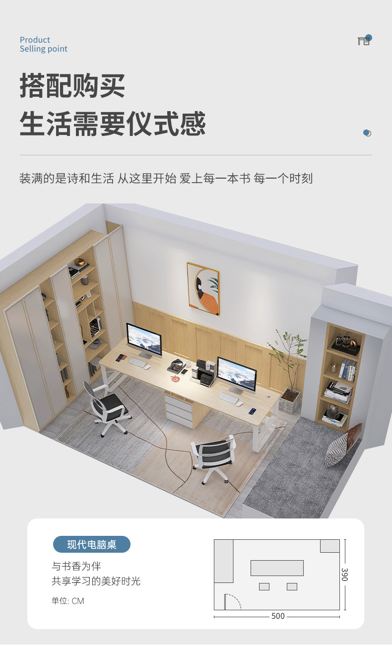 더블 컴퓨터 책상 홈 오피스 데스크 간단한 현대 책상 공부 테이블 침실 긴 테이블 쓰기 테이블과 의자 조합