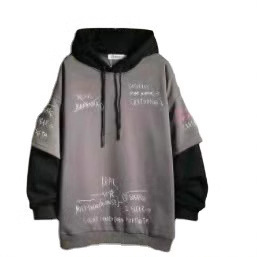 가을과 겨울 일본 스타일 레트로 트렌디 브랜드 유행 가짜 투피스 기모 스웨터 남성용 색상 일치 한국 스타일 느슨한 까마귀