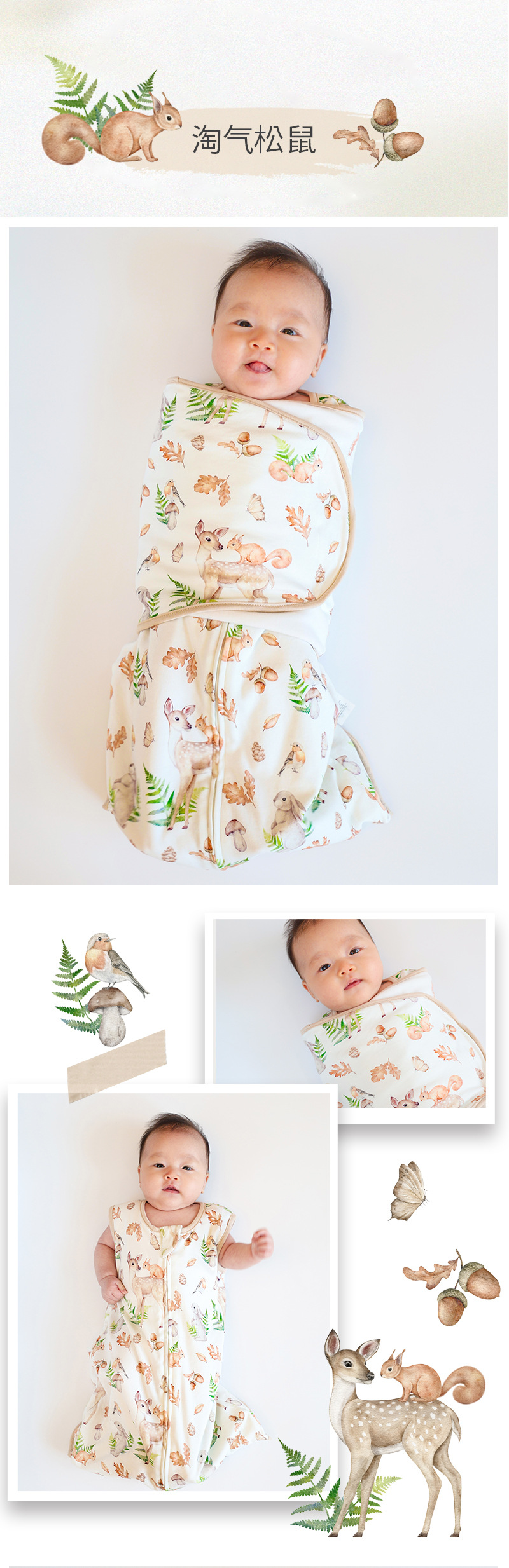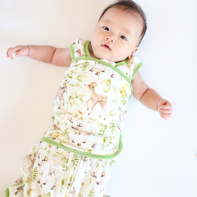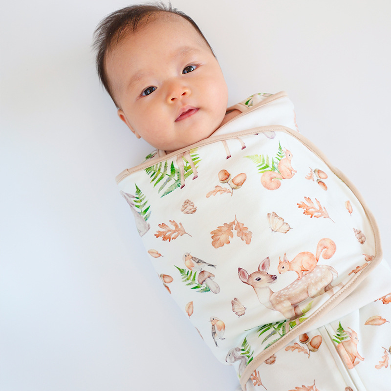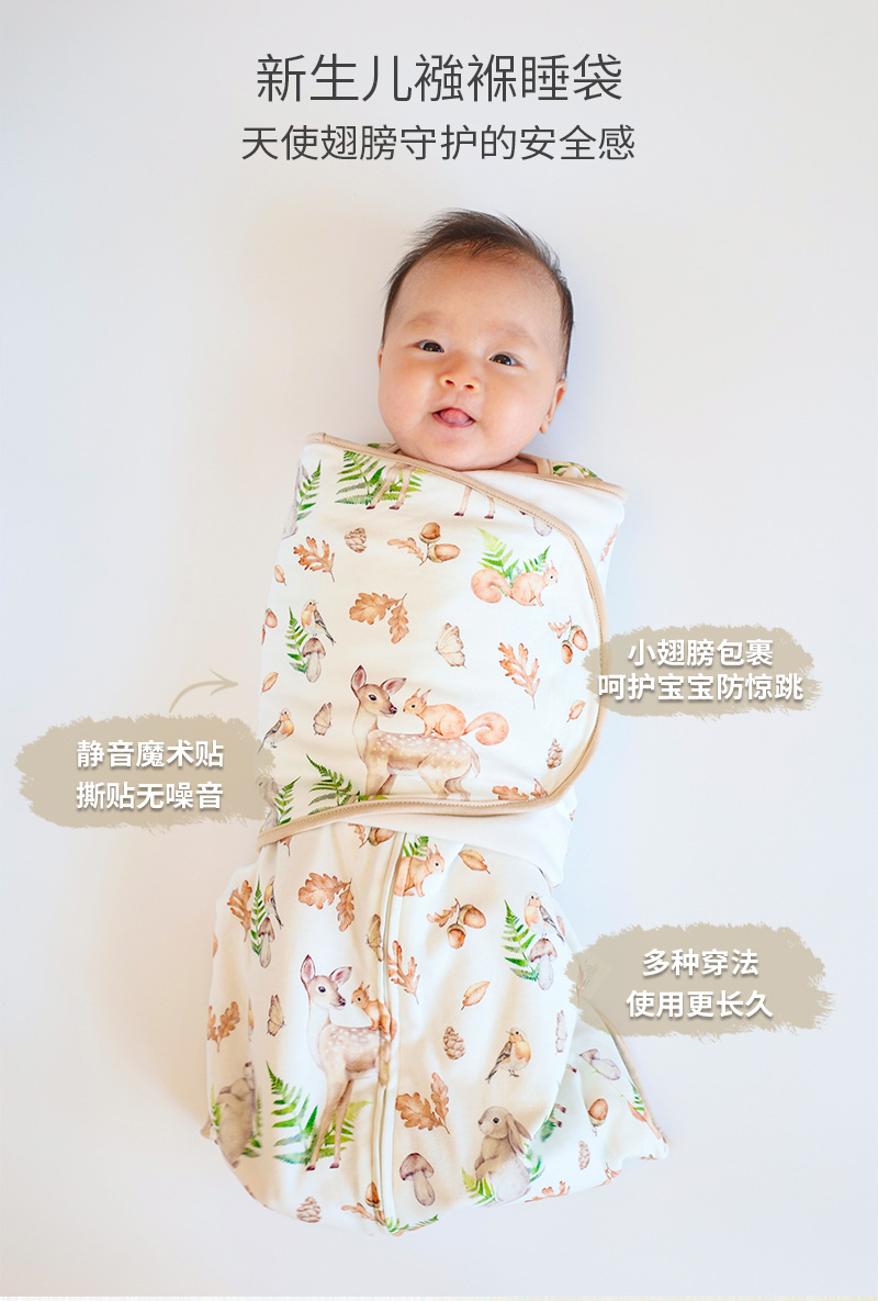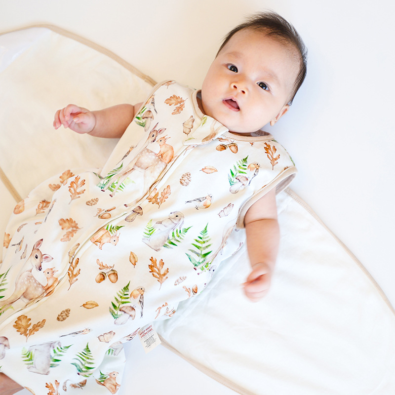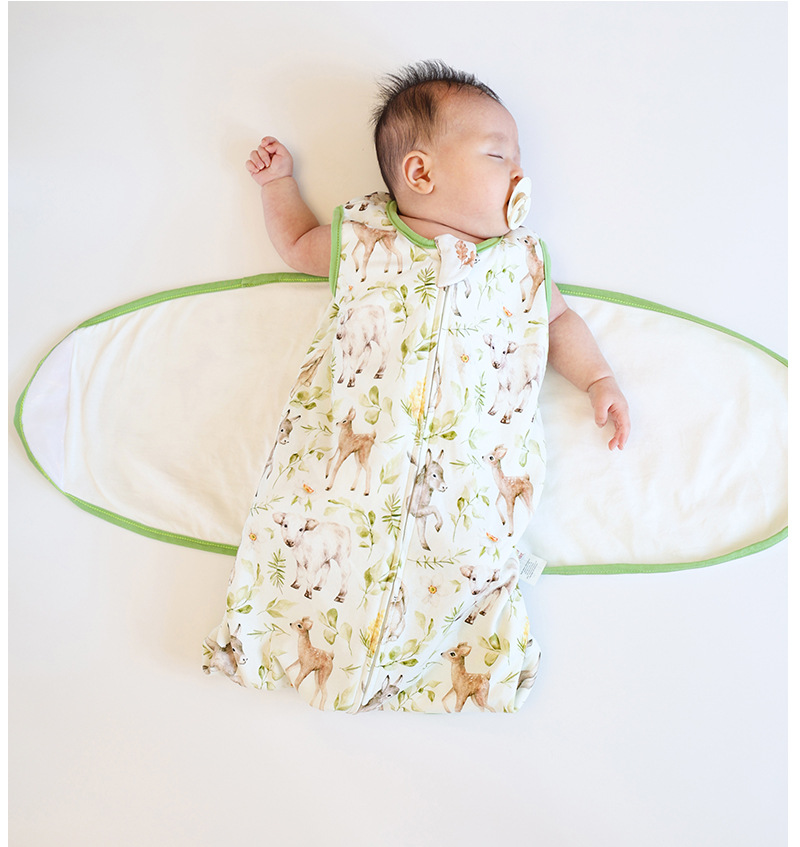 아기 수면 조끼, 깜짝 놀라지 않게 하는 가을 겨울용 유기농 면 포대기, 신생아 포장형 아기 킥 방지 이불, 만화 패턴