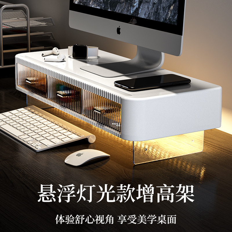 데스크탑 컴퓨터 모니터 높은 랙 사무실 데스크탑 목 보호 화면베이스 브래킷 조명으로 보관 상자 구성