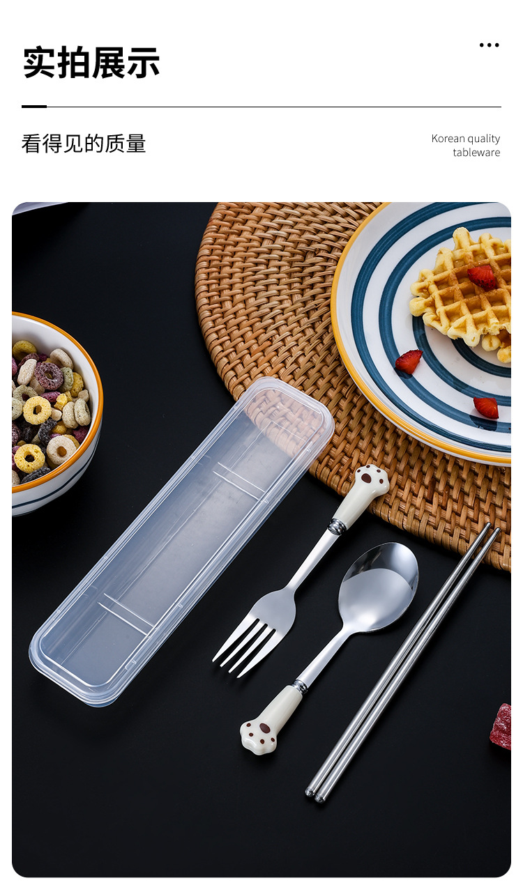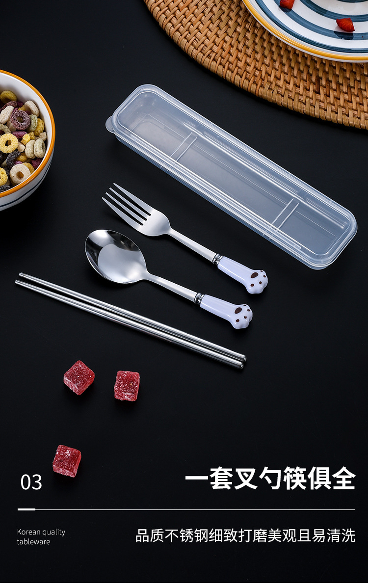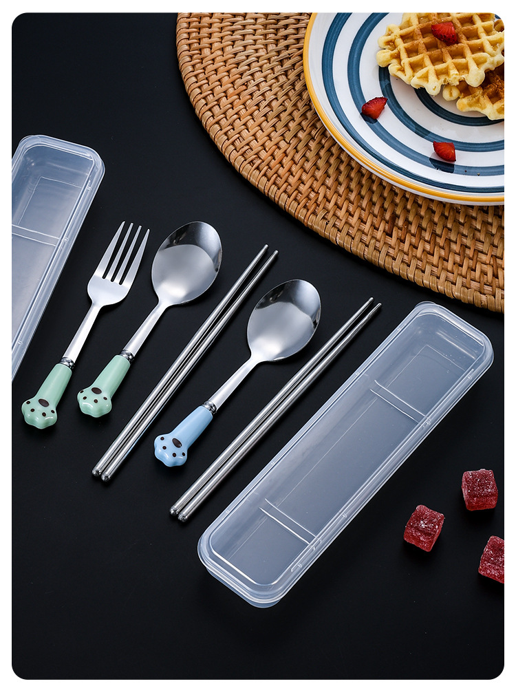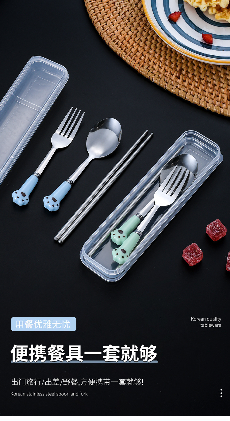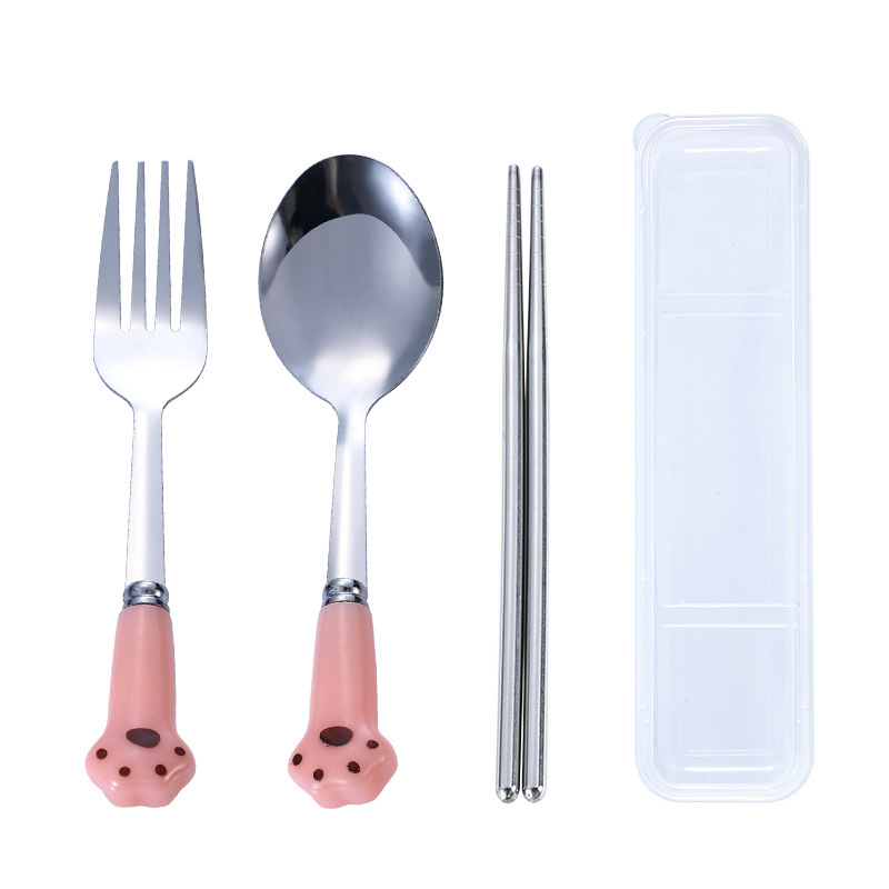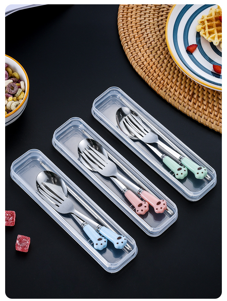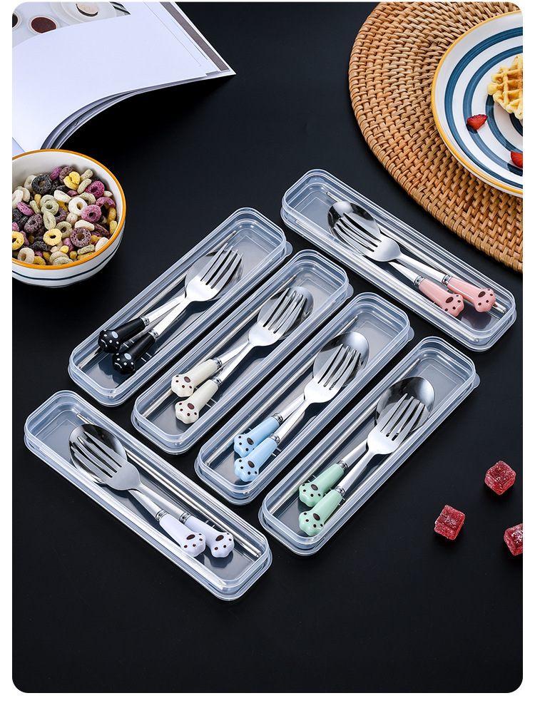 스테인레스 스틸 식기 스푼 포크 젓가락 세트 창조적 인 고양이 클로 휴대용 식기 어린이 젓가락 포크 스푼 3 조각 선물 세트