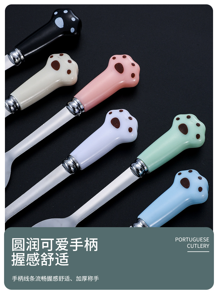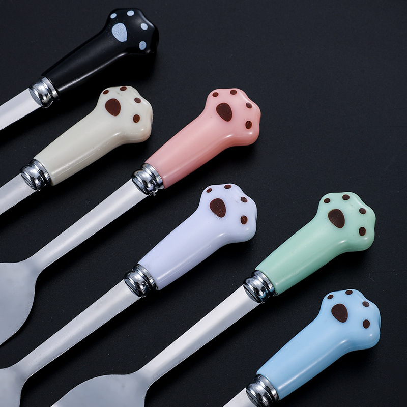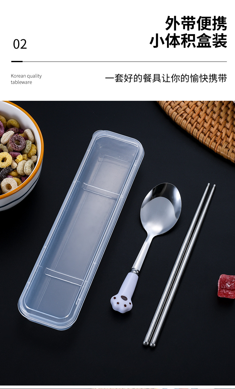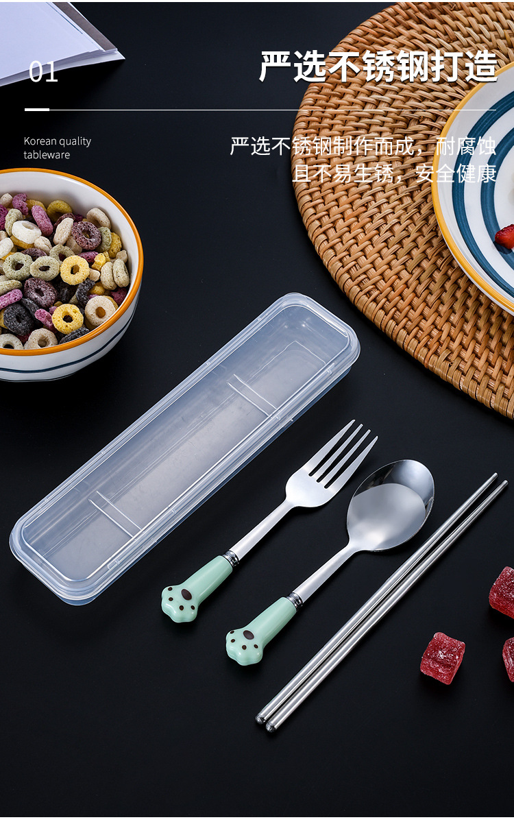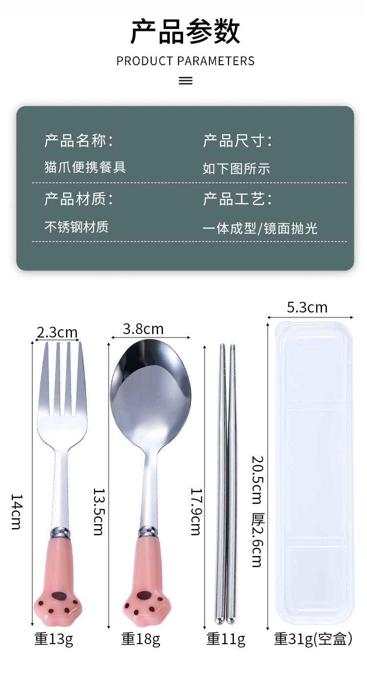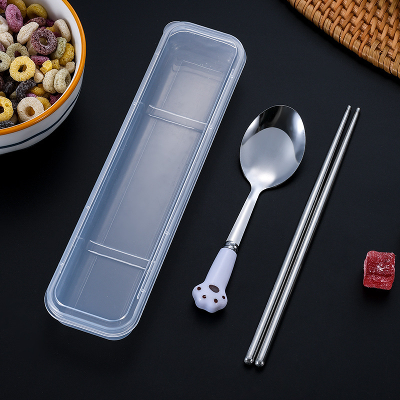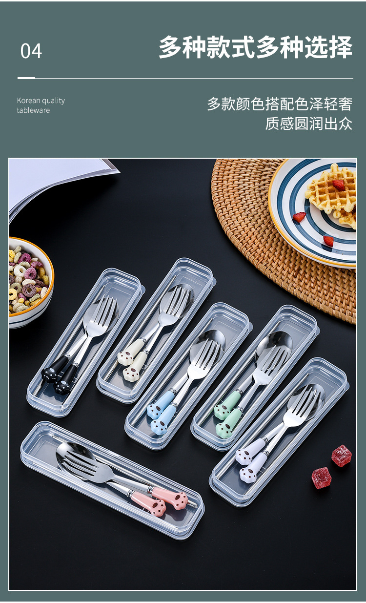 스테인레스 스틸 식기 스푼 포크 젓가락 세트 창조적 인 고양이 클로 휴대용 식기 어린이 젓가락 포크 스푼 3 조각 선물 세트