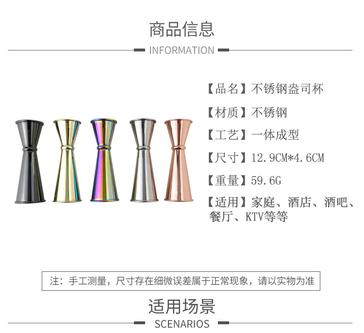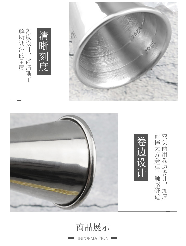 스테인리스 칵테일 계량컵 눈금 표시 이중 끝단 곡선 온스컵 밀크티 칵테일 계량기 3060 계량컵