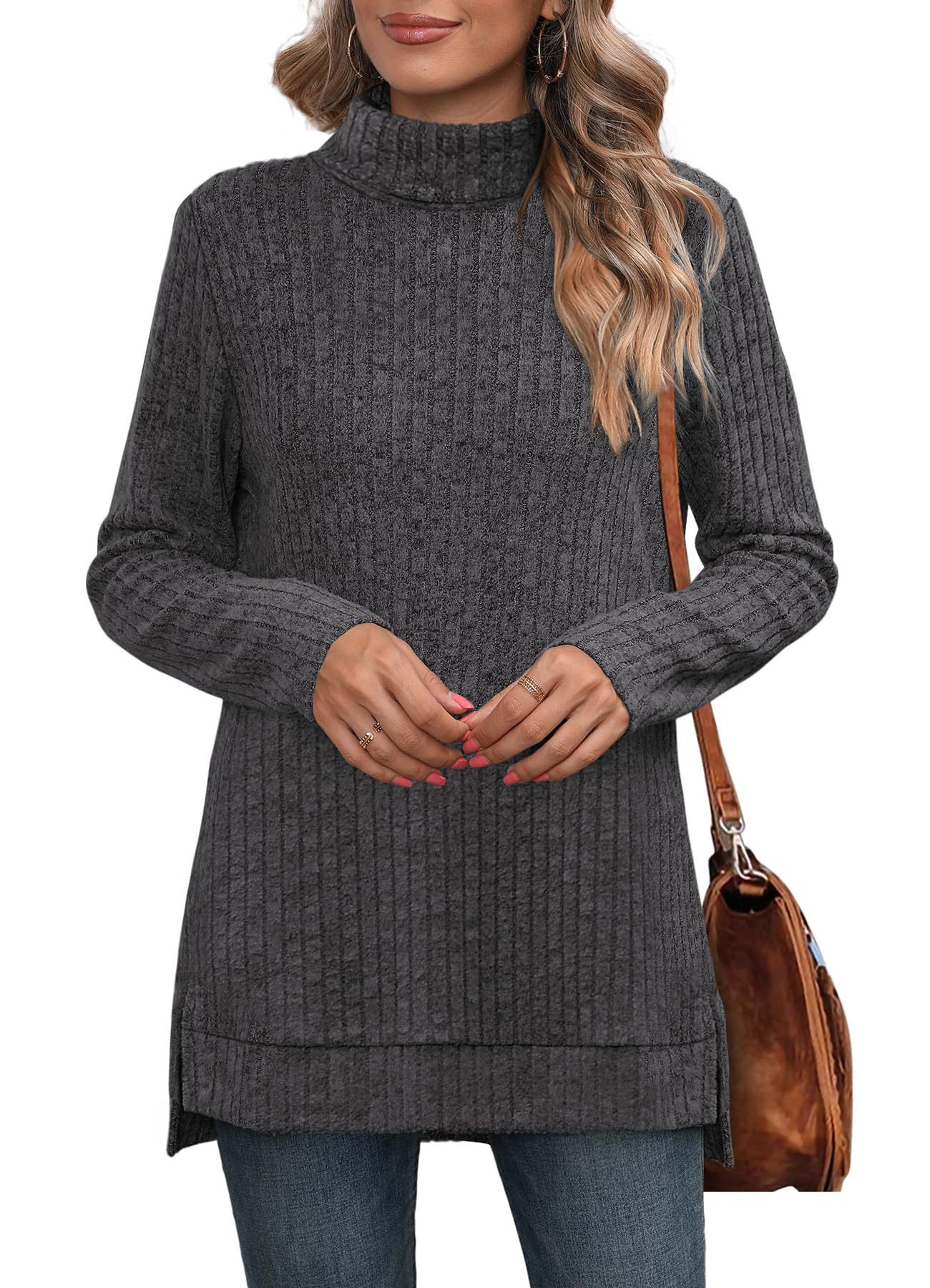 아마존 2023 유럽과 미국 가을과 겨울 새로운 하이 칼라 스카프 사이드 스플릿 단색 긴 소매 티셔츠 크로스 보더 여성용 재고