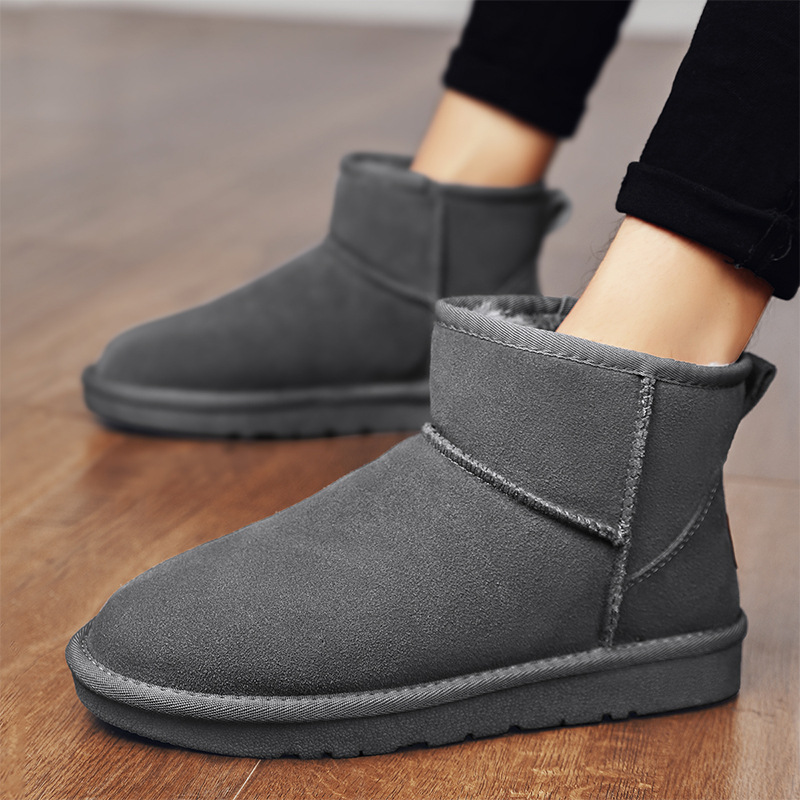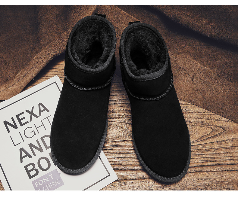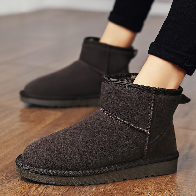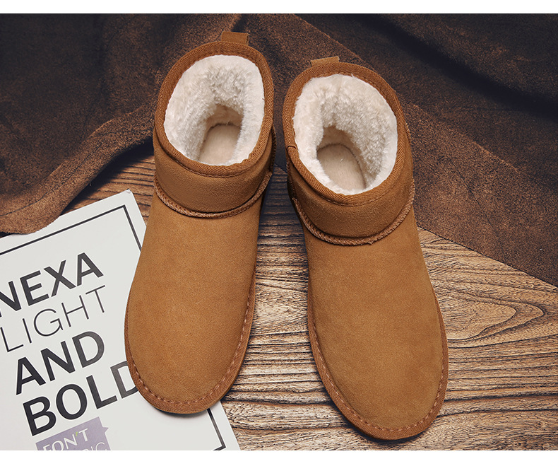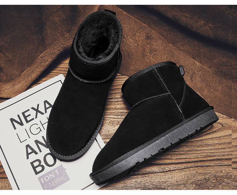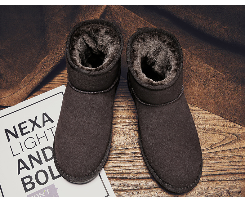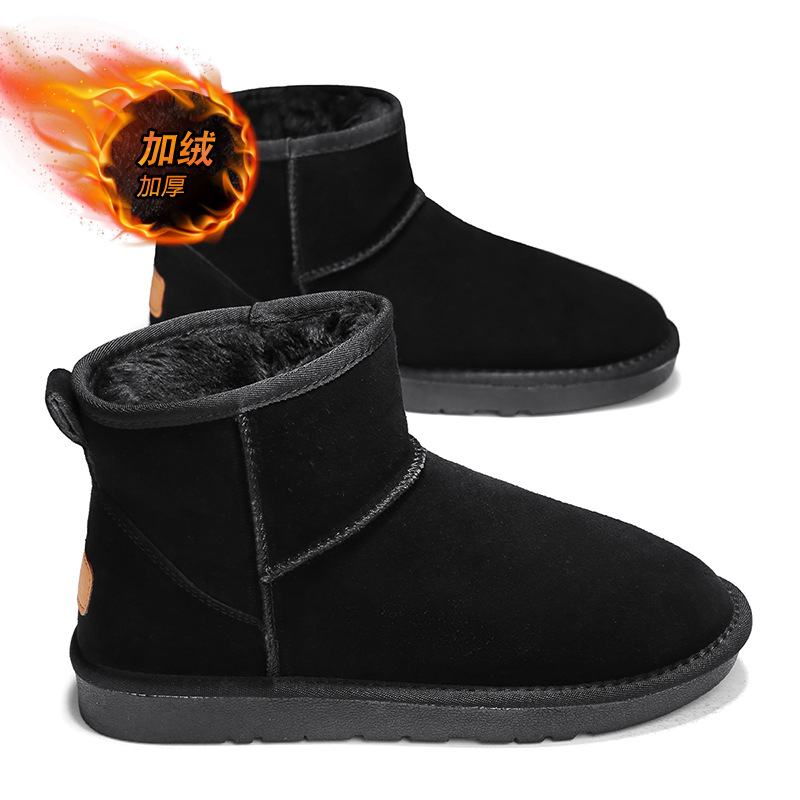 남성과 여성을 위한 기모 스노우 부츠 따뜻한 겨울 동북 대형 면 신발 가죽 및 모피 통합 빵 신발 남성용 미끄럼 방지 하이탑 면 부츠