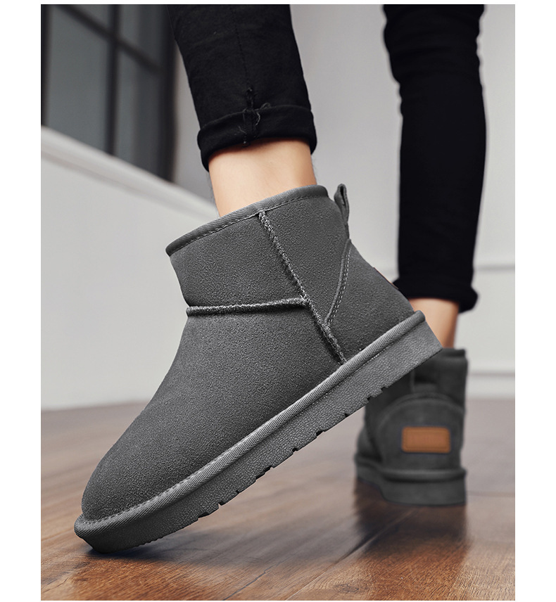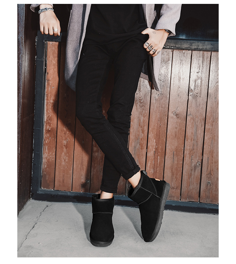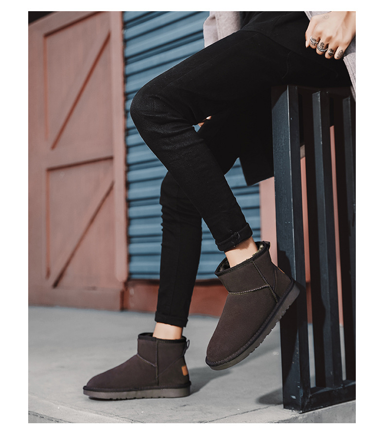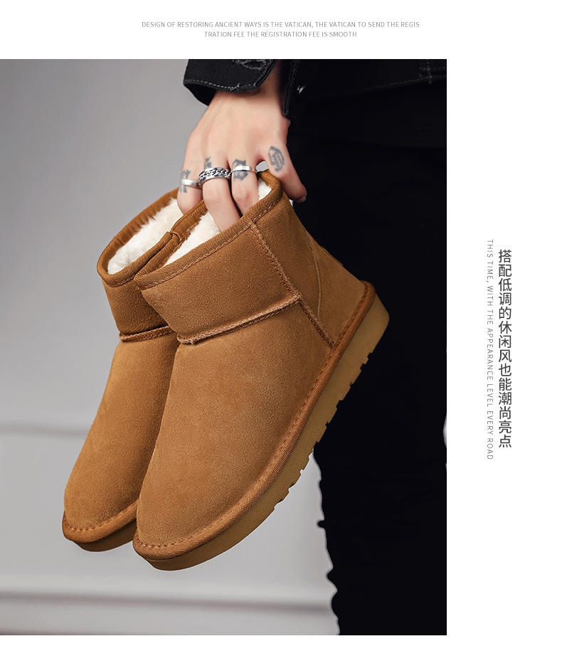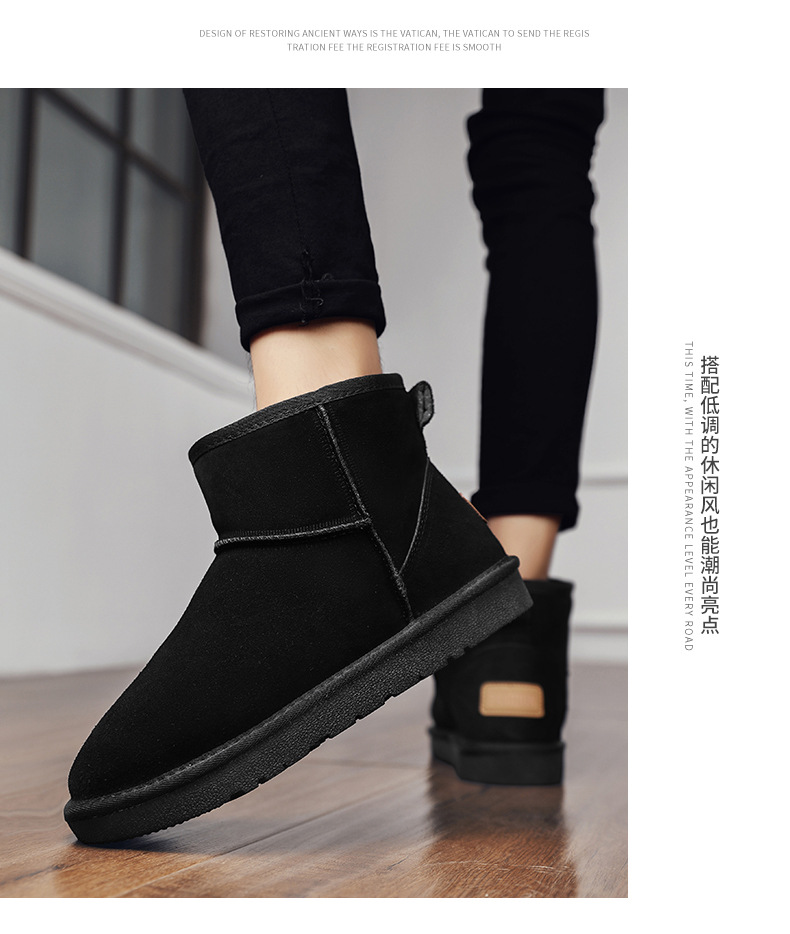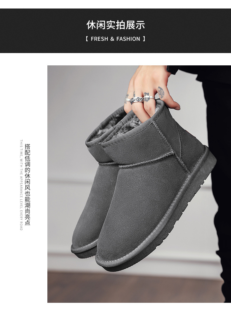 남성과 여성을 위한 기모 스노우 부츠 따뜻한 겨울 동북 대형 면 신발 가죽 및 모피 통합 빵 신발 남성용 미끄럼 방지 하이탑 면 부츠