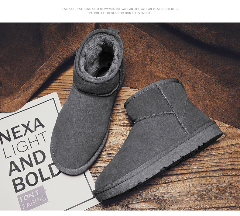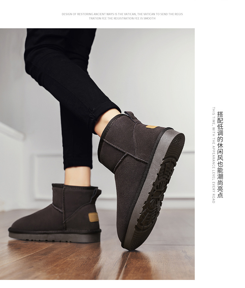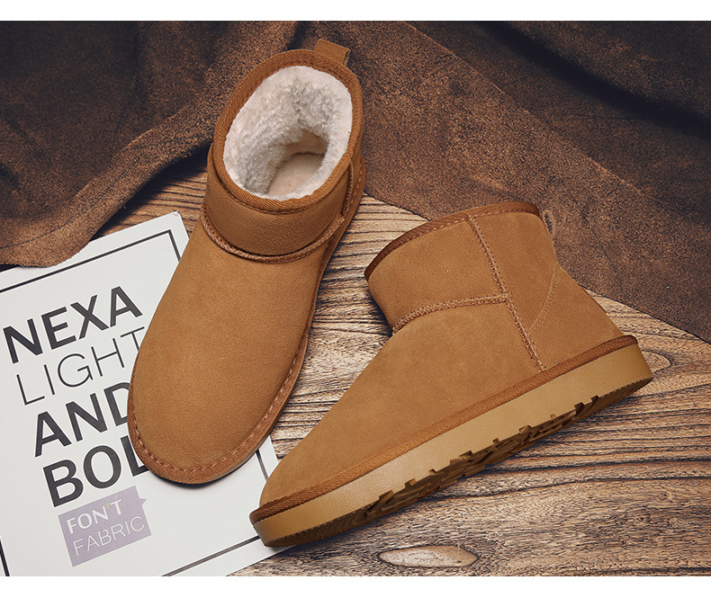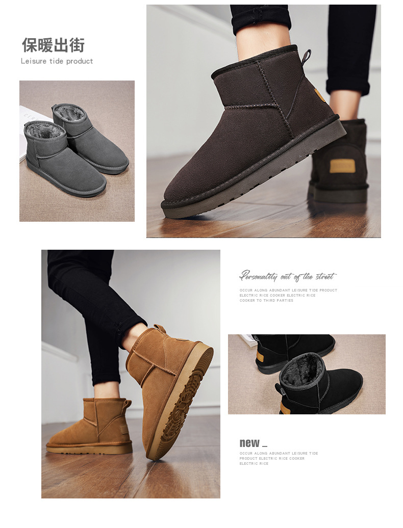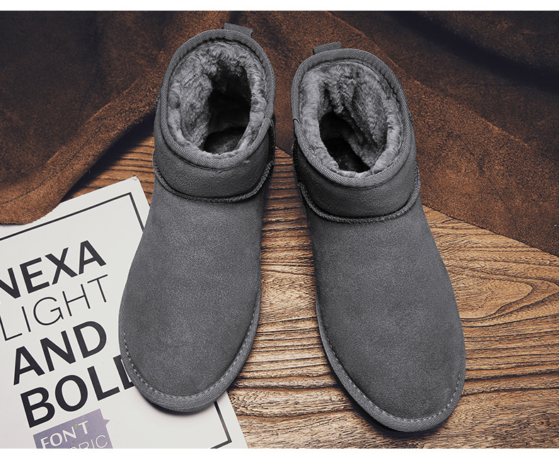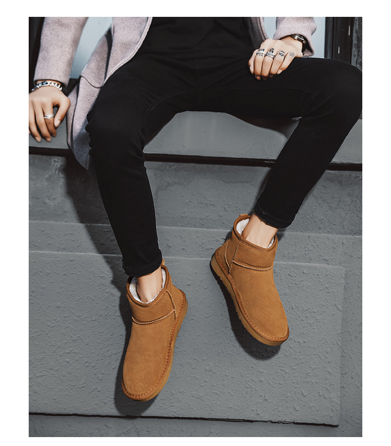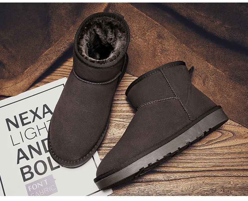 남성과 여성을 위한 기모 스노우 부츠 따뜻한 겨울 동북 대형 면 신발 가죽 및 모피 통합 빵 신발 남성용 미끄럼 방지 하이탑 면 부츠