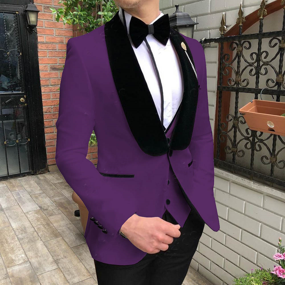 유럽과 미국 플러스 사이즈 남자의 세트 세트 슬림핏 신랑 최고의 남자 원피스 플랫 바지선 칼라 3 피스 캐주얼 비즈니스 대외 무역 세트