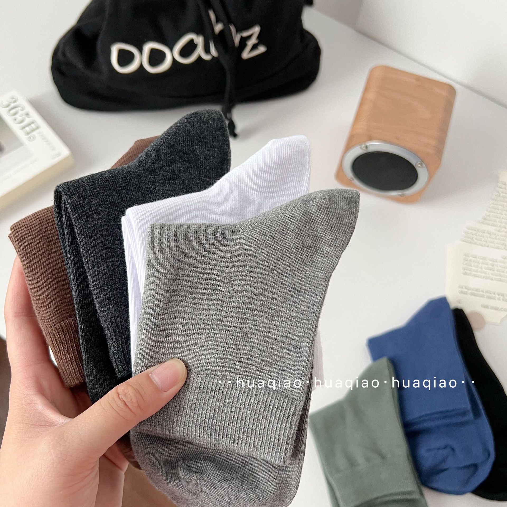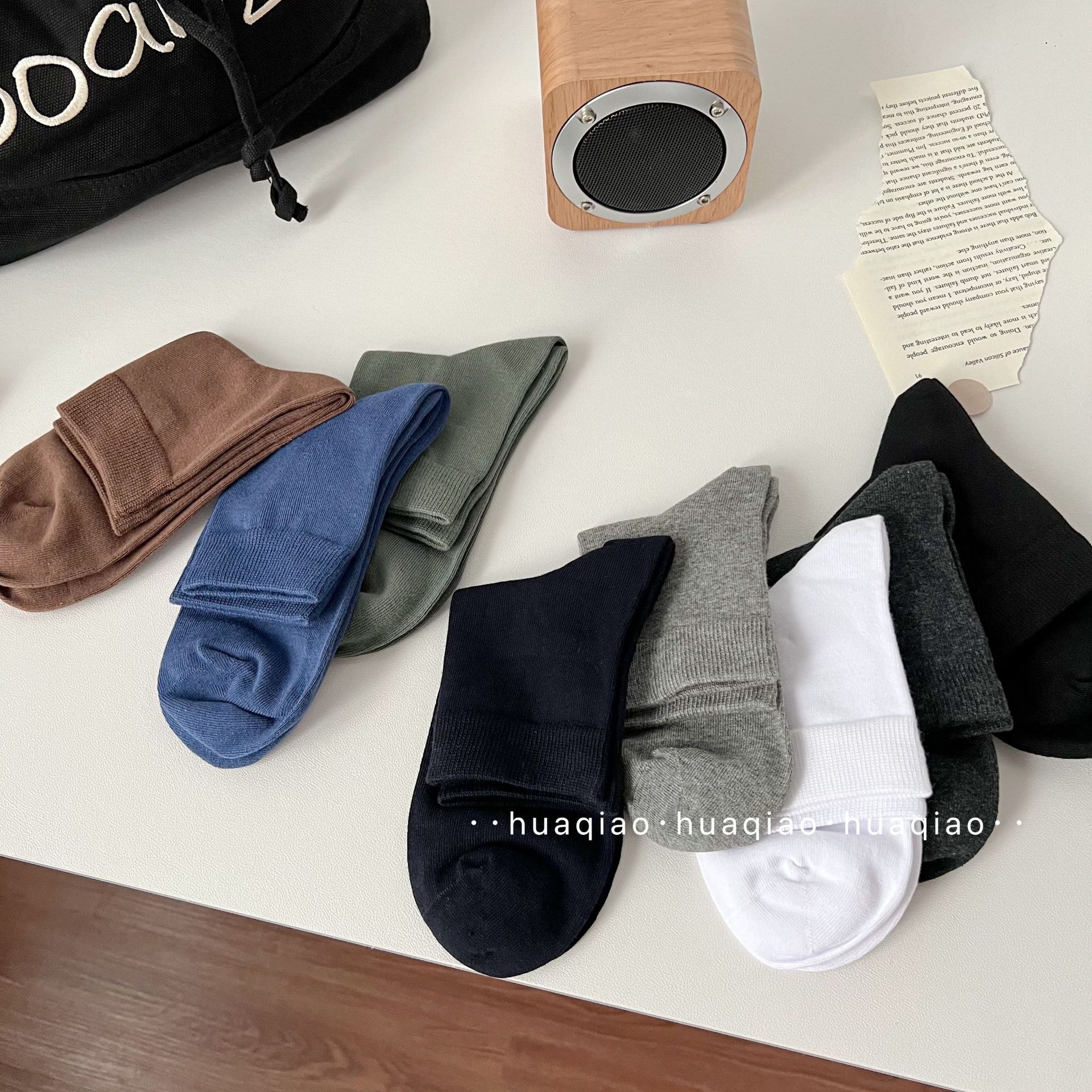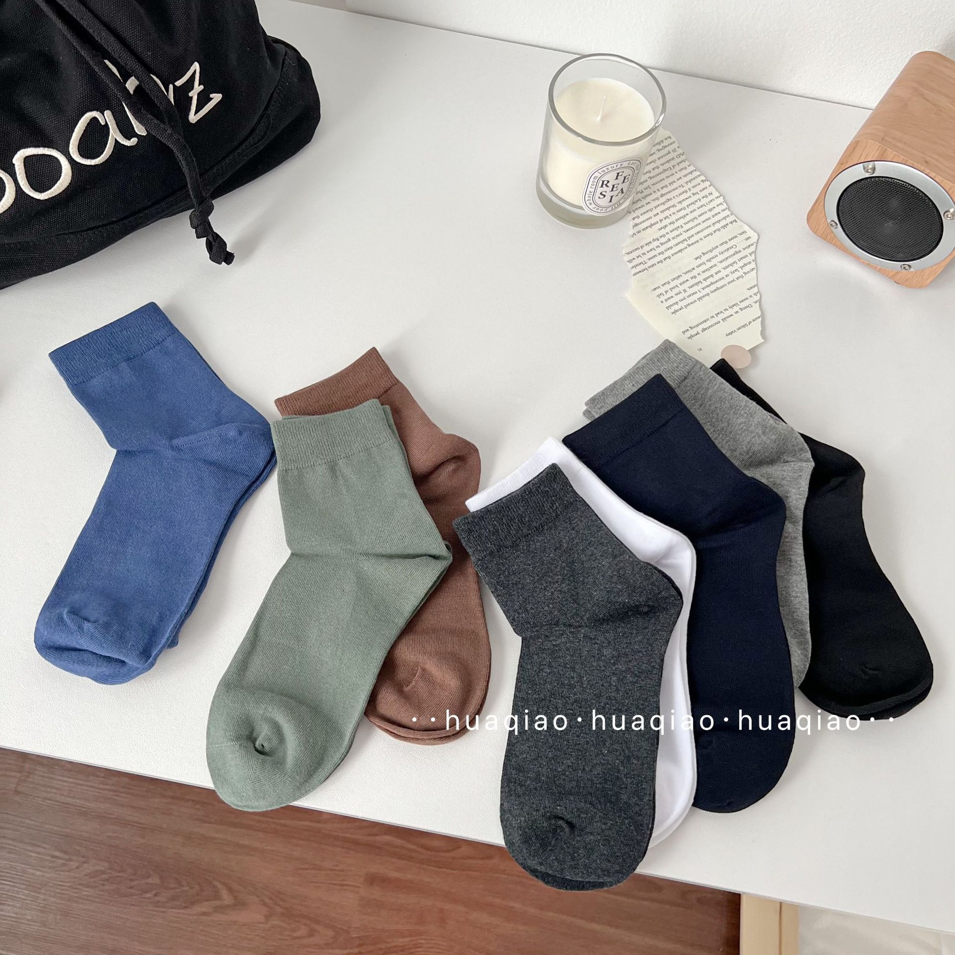 양말 남성용 봄과 가을 얇은 면 통기성 스포츠 중간 길이 양말 단색 뼈없는 내마모성 비즈니스 남성 양말
