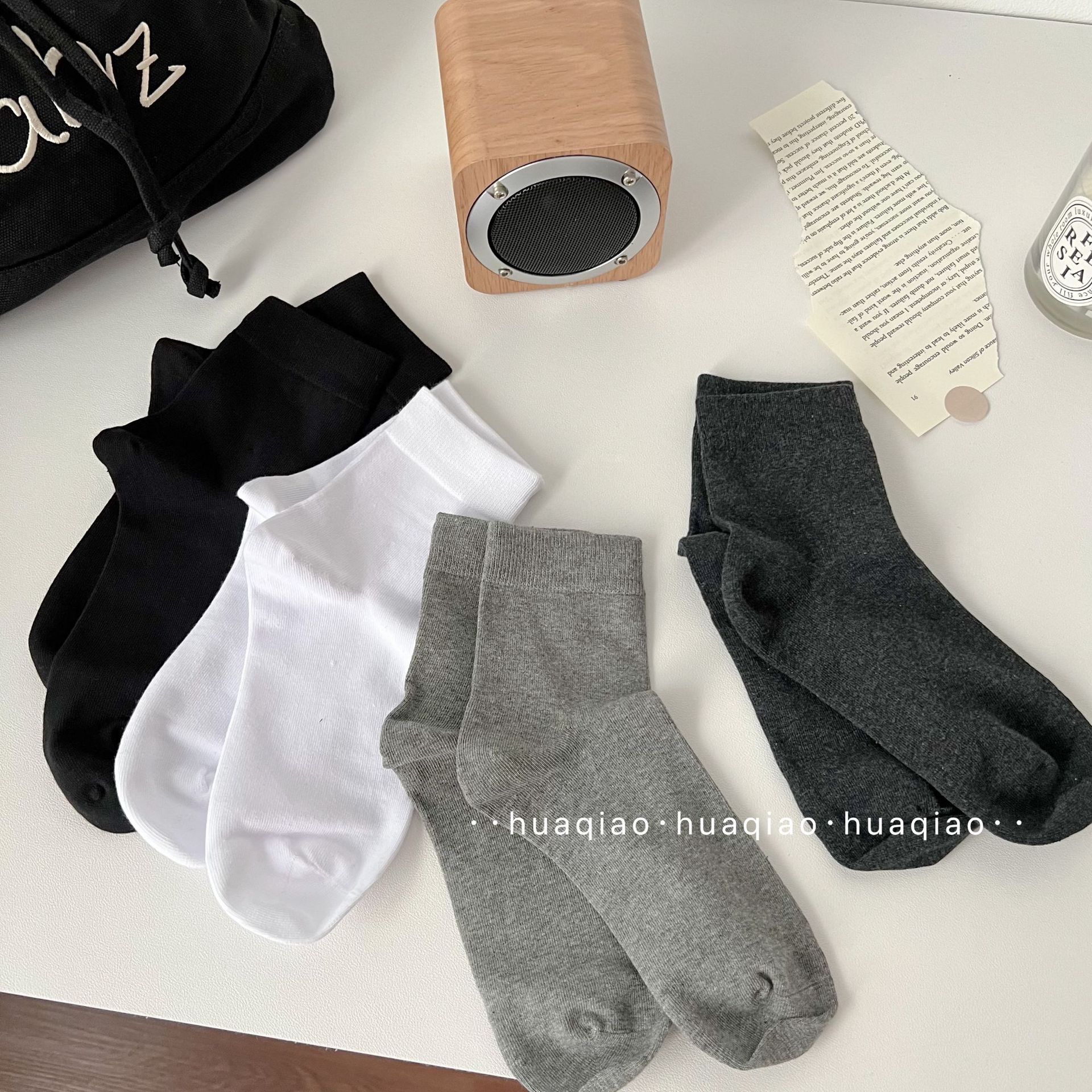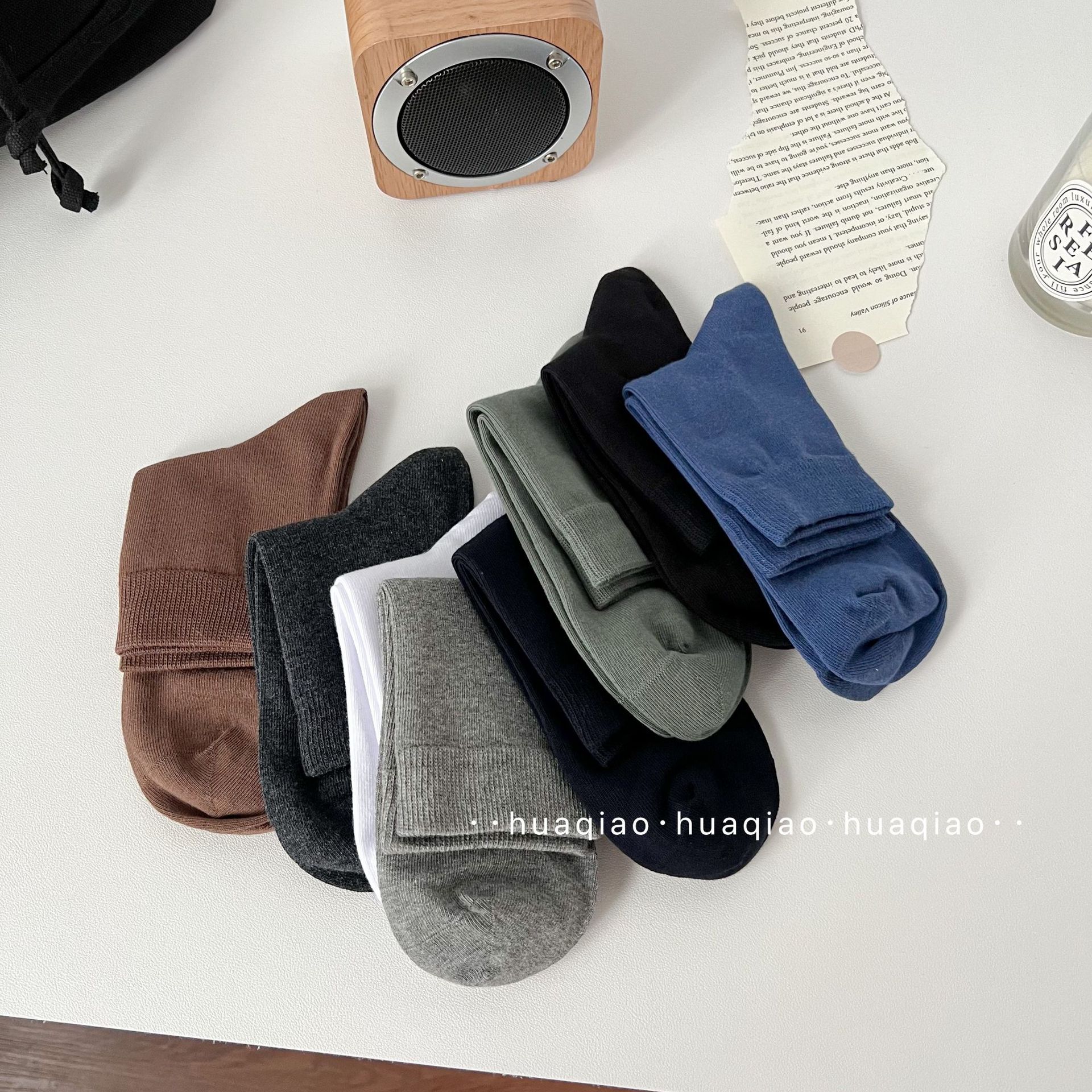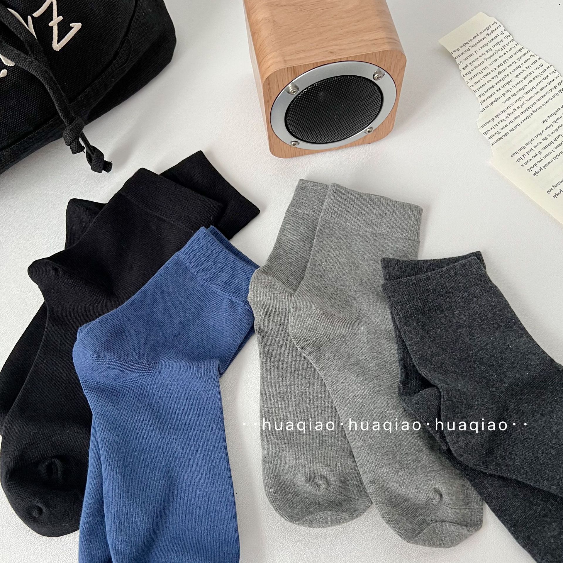양말 남성용 봄과 가을 얇은 면 통기성 스포츠 중간 길이 양말 단색 뼈없는 내마모성 비즈니스 남성 양말