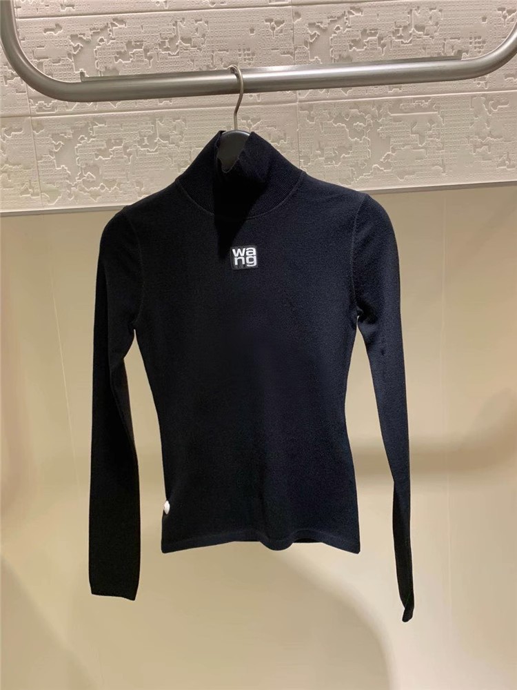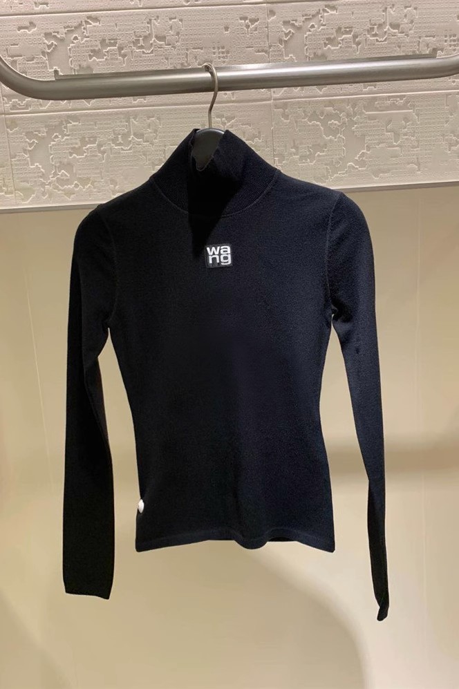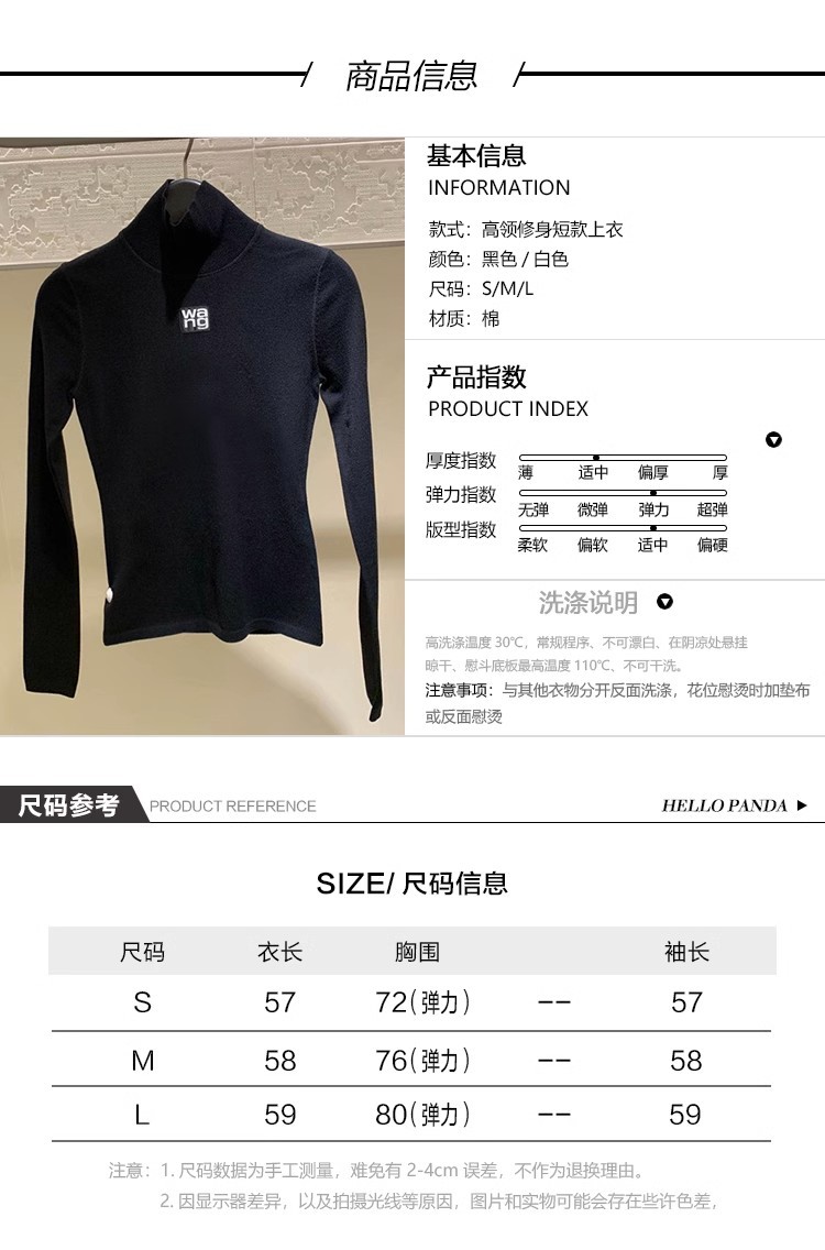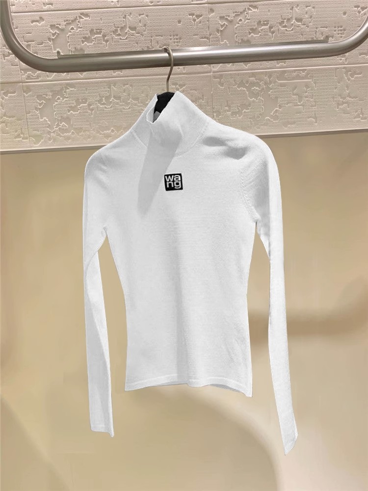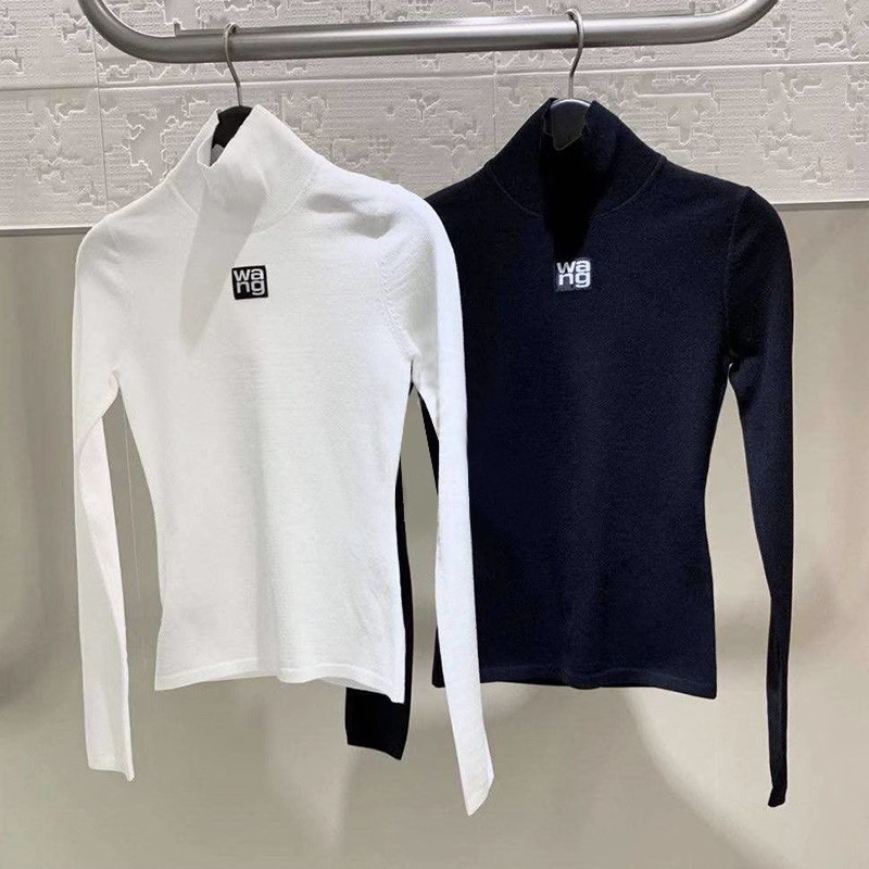 2024 가을, 겨울 하프 하이 라운드 넥 긴 소매 니트 탑 슬림 피트 레터 바닥 셔츠 탑 절묘한