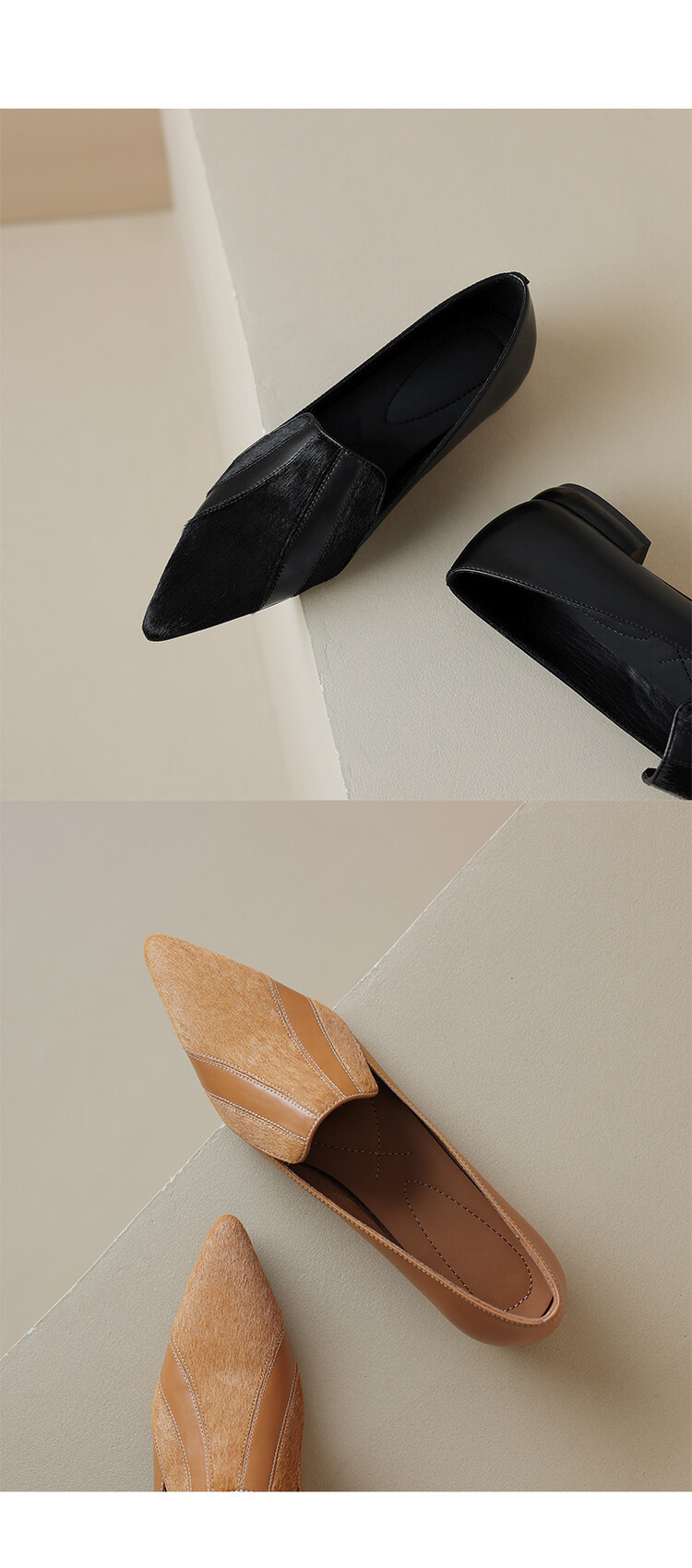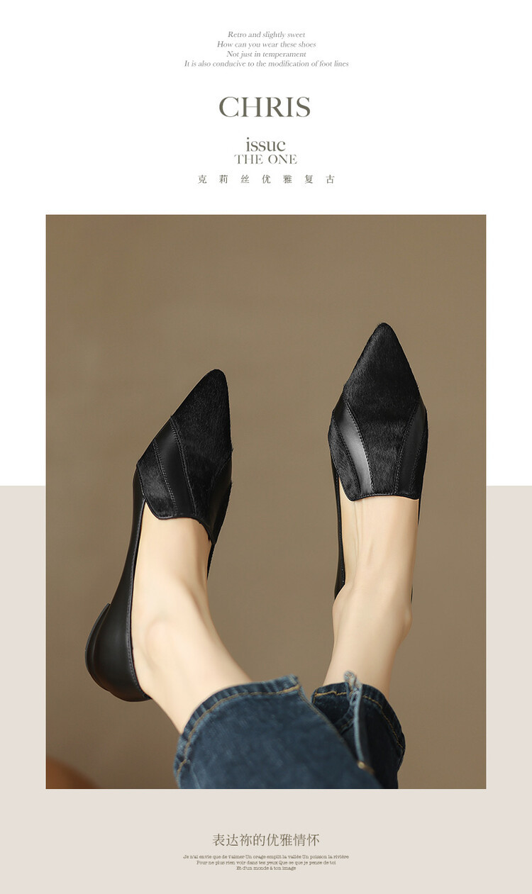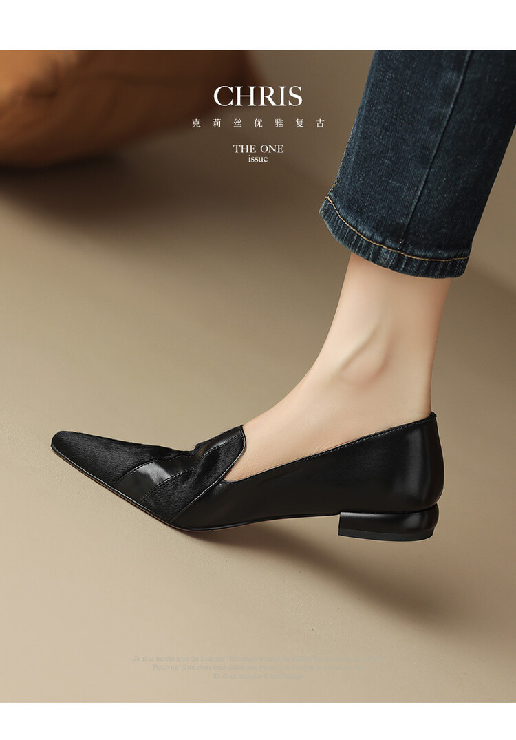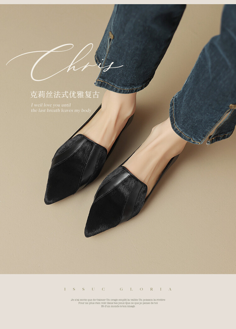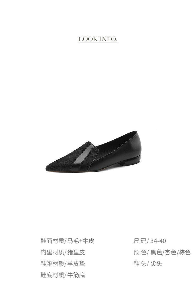 2cm 낮은 굽 말 머리 바느질 신발 여성 가을과 겨울 새로운 뾰족한 플랫 슈즈 캐주얼 블랙 통근 신발 여성