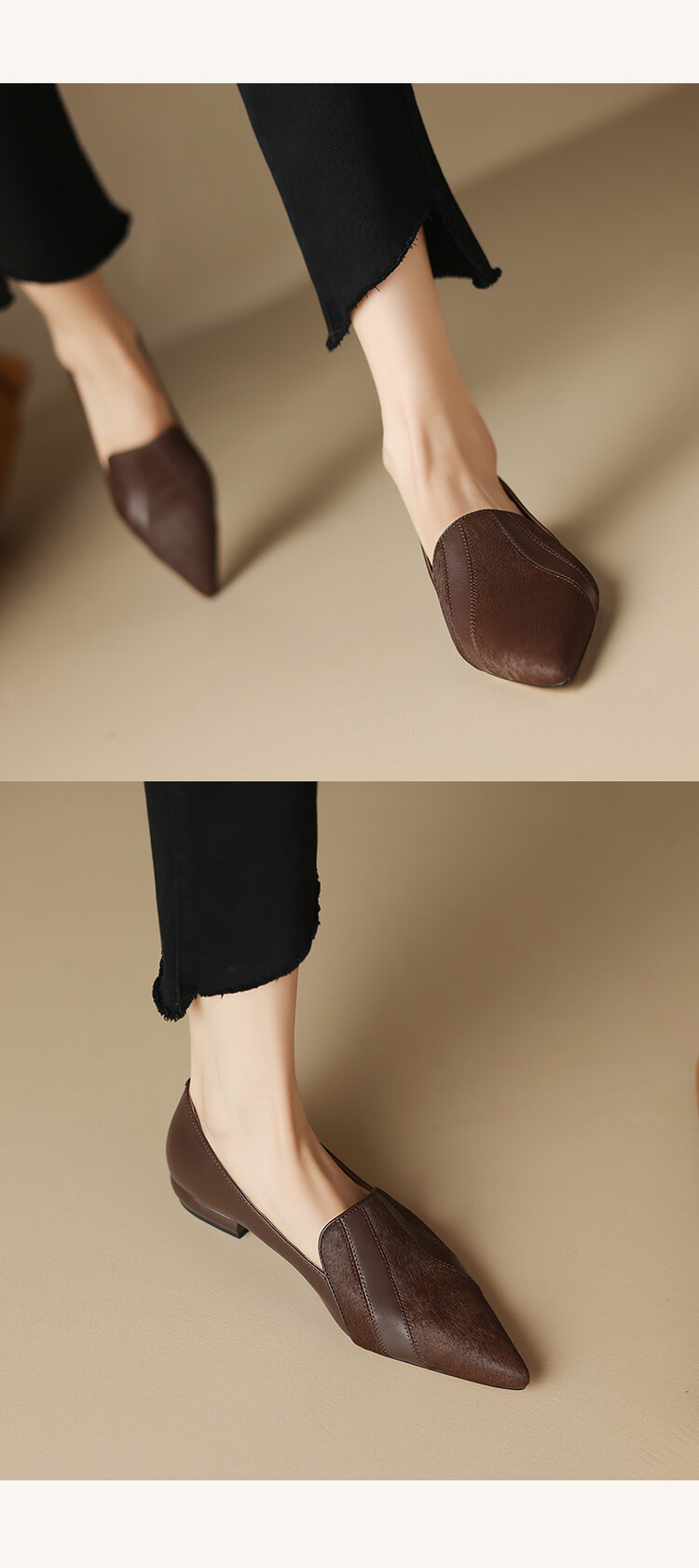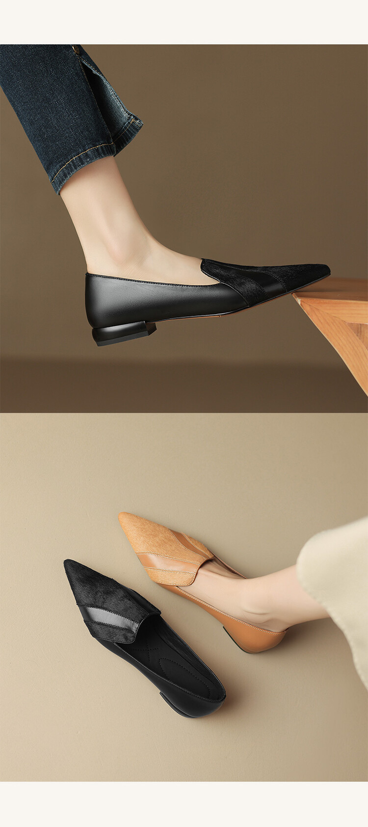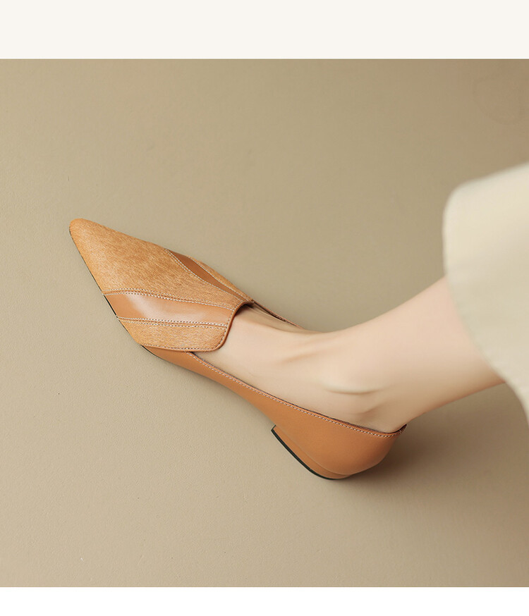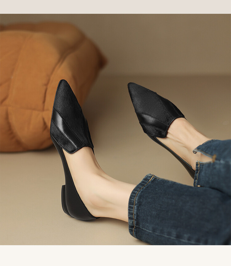2cm 낮은 굽 말 머리 바느질 신발 여성 가을과 겨울 새로운 뾰족한 플랫 슈즈 캐주얼 블랙 통근 신발 여성