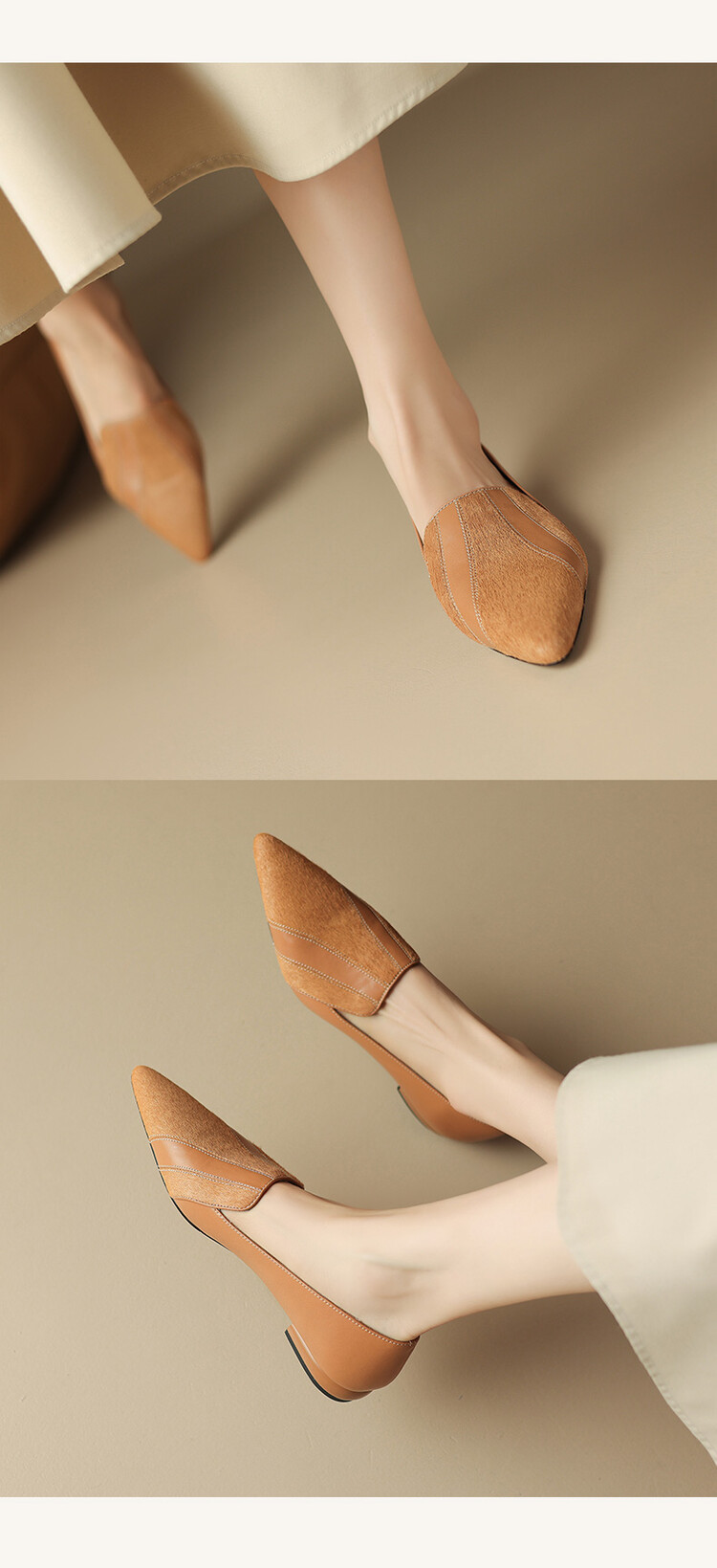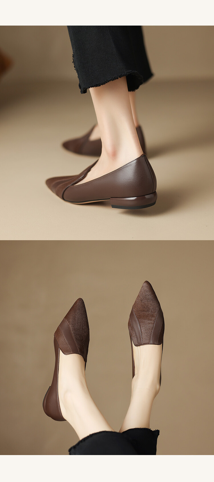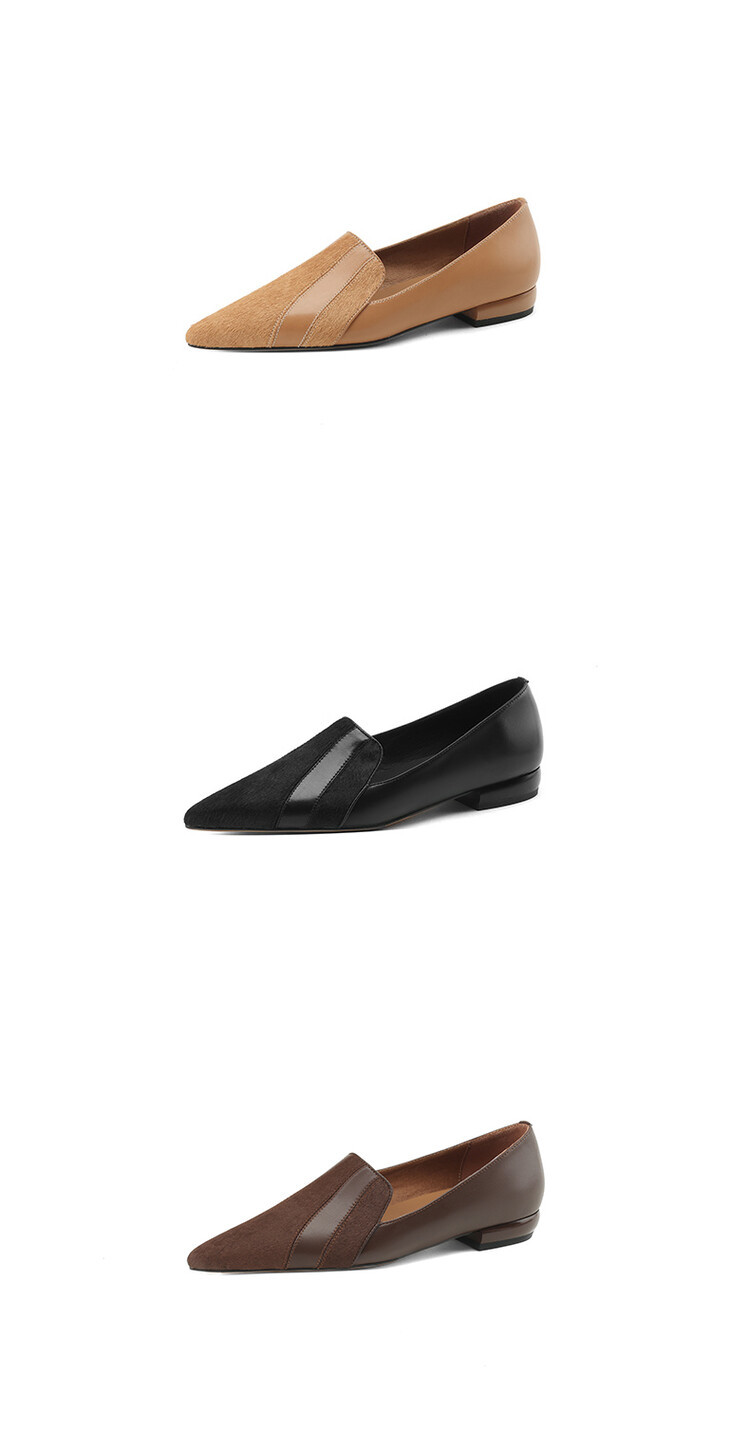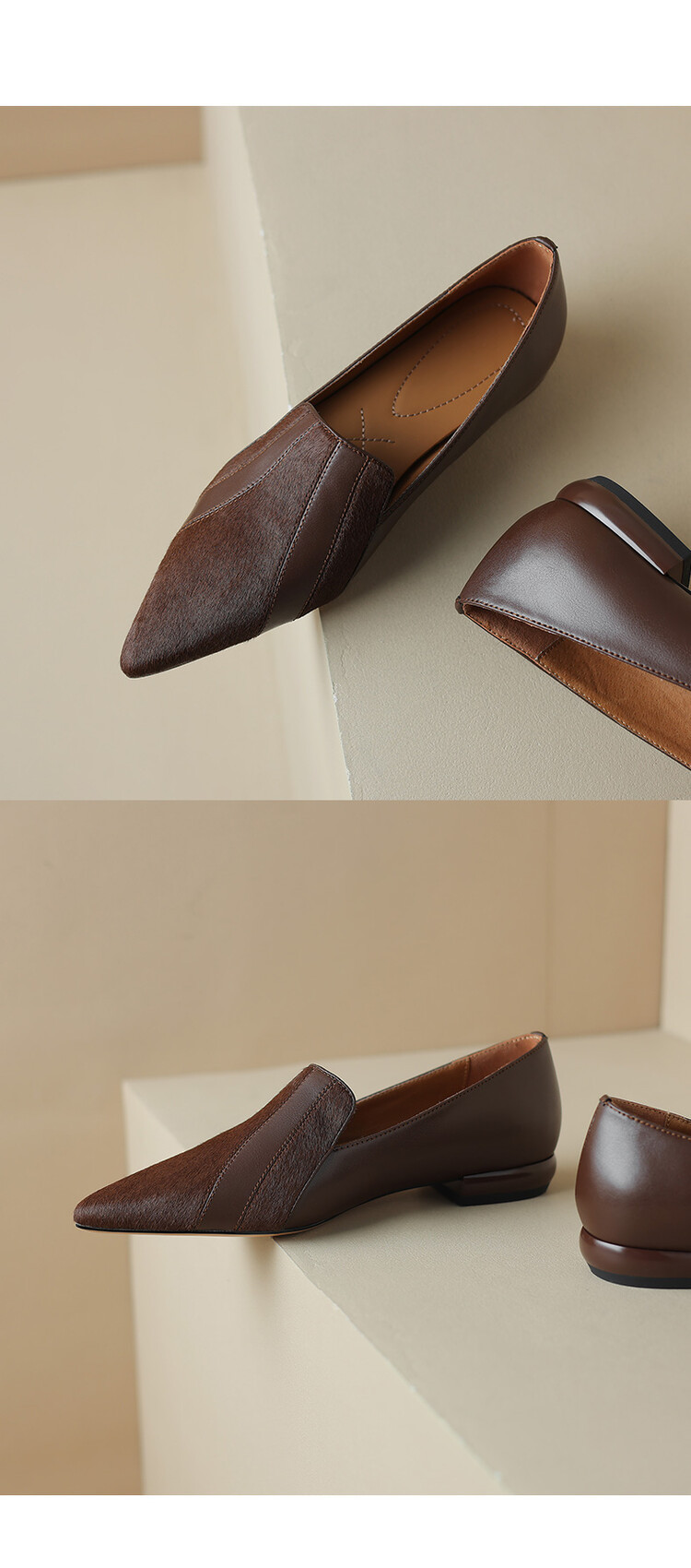 2cm 낮은 굽 말 머리 바느질 신발 여성 가을과 겨울 새로운 뾰족한 플랫 슈즈 캐주얼 블랙 통근 신발 여성