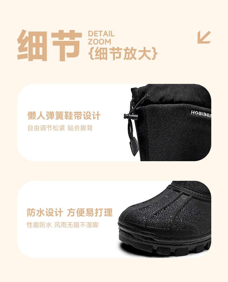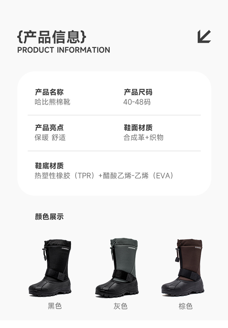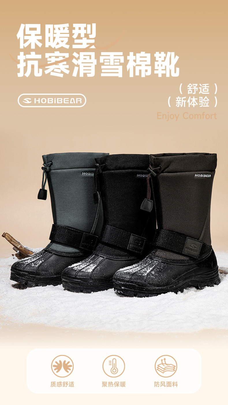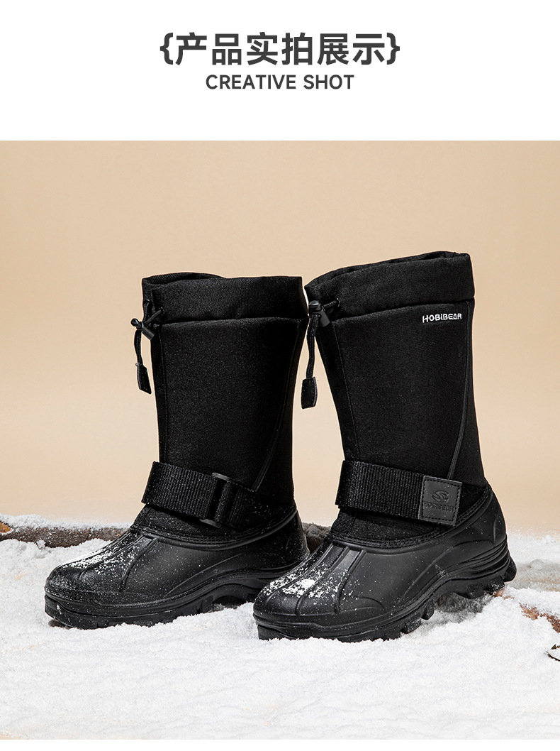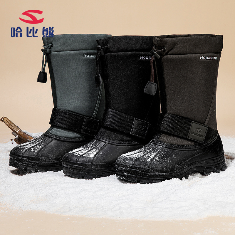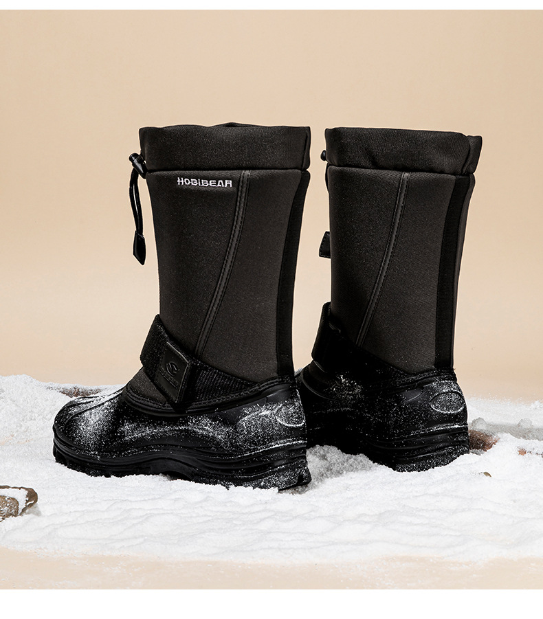 HOBIBEAR 남성용 스노우 부츠 성인 겨울 큰 머리 부츠 튜브 플러시 방한 코튼 부츠 머리카락 세대