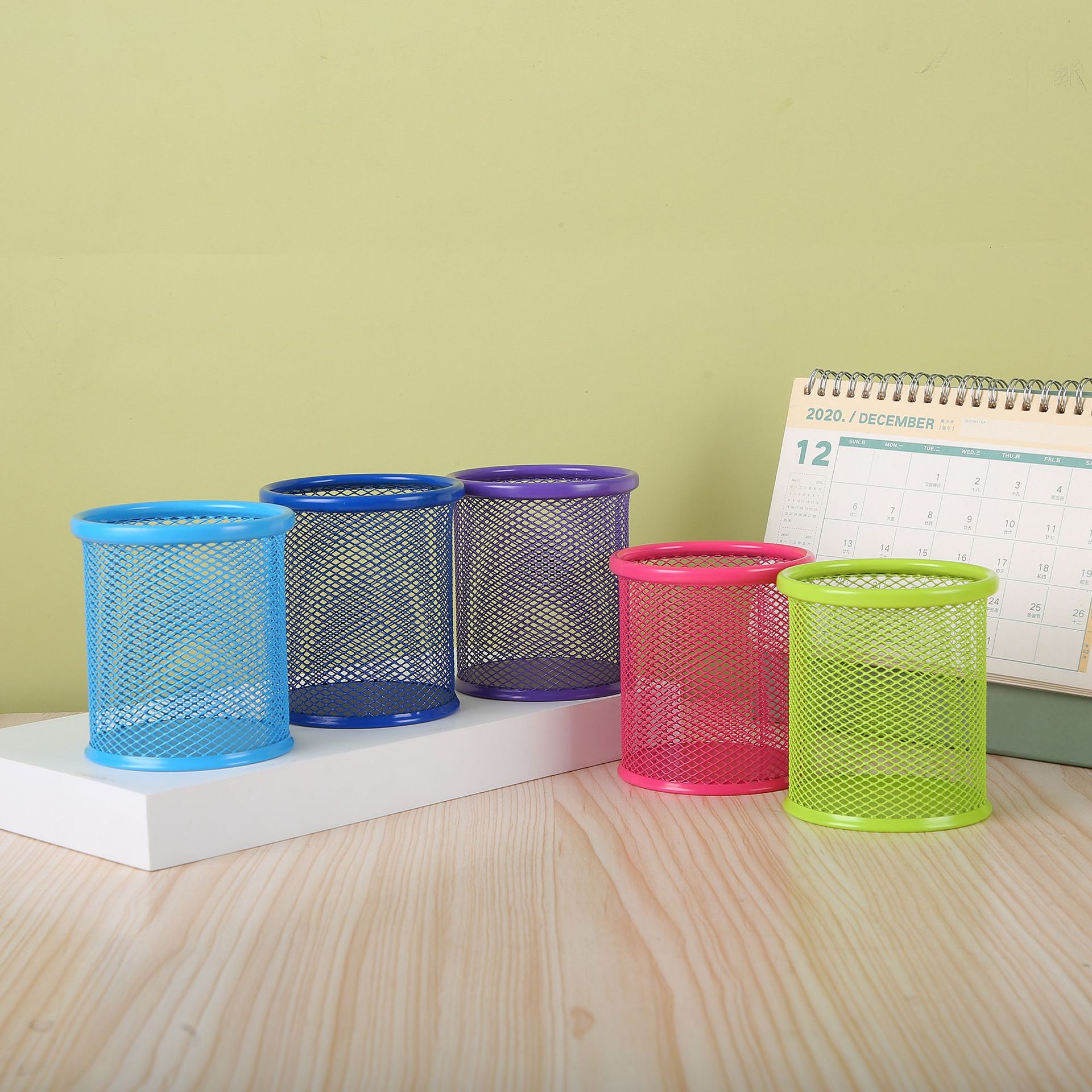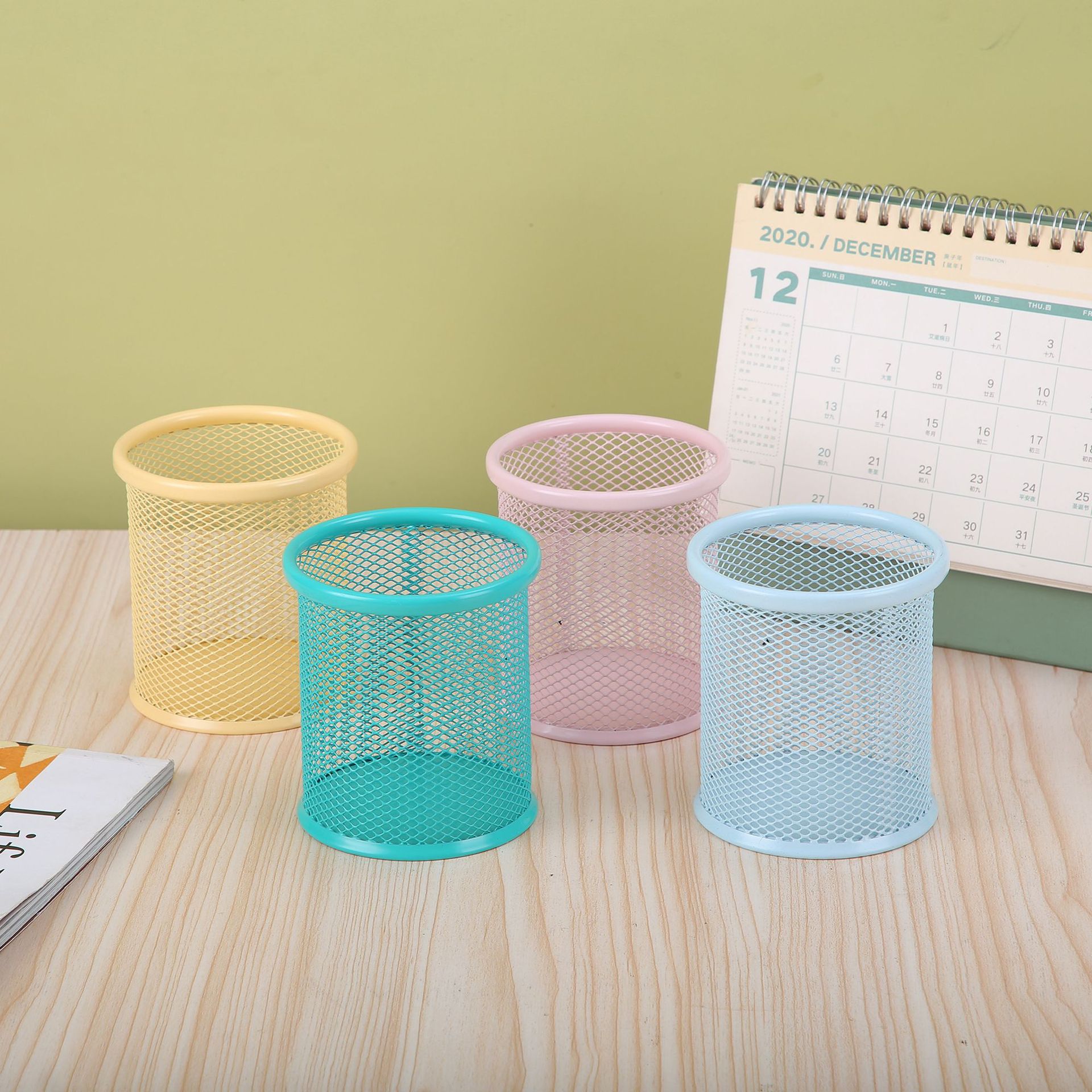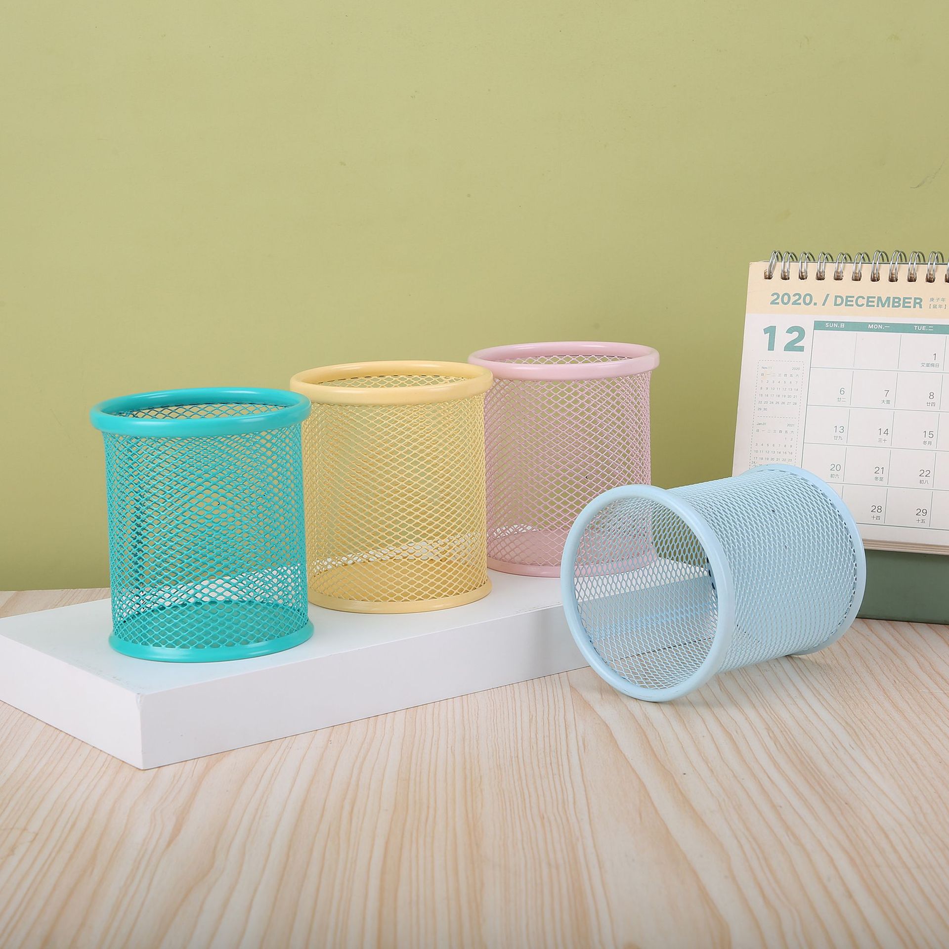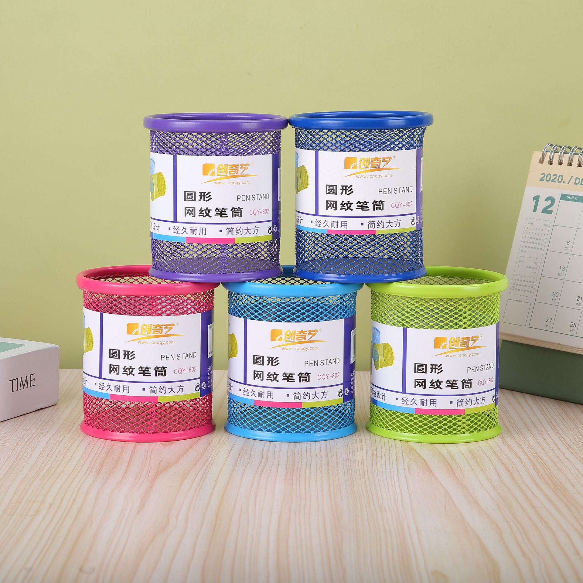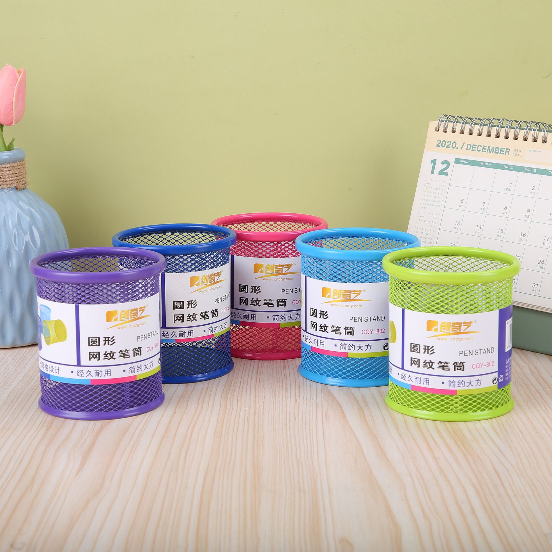 라운드 간단한 크리에이티브 펜 홀더 학생 데스크탑 망상 컬러 스토리지 배럴 금속 중공 문구 비즈니스 펜 홀더