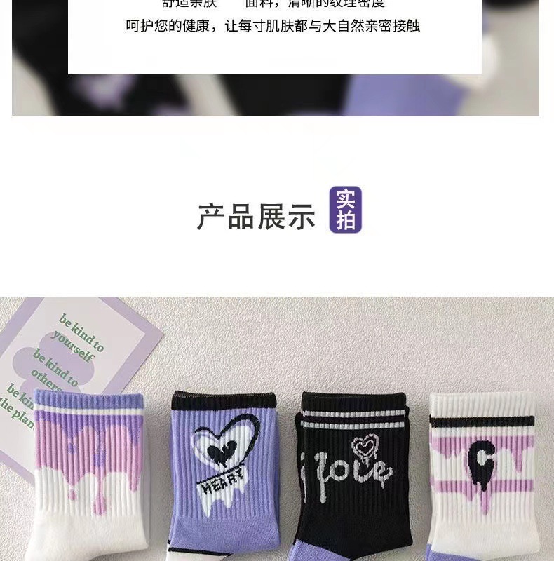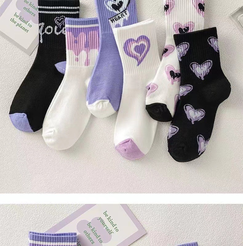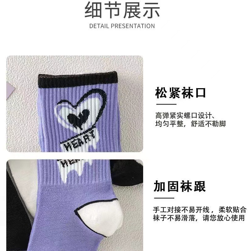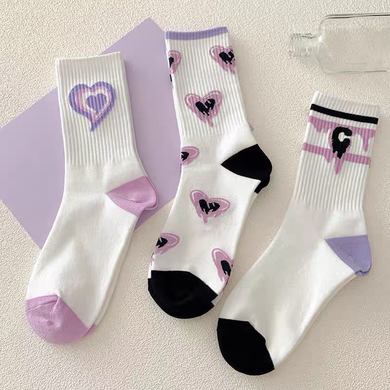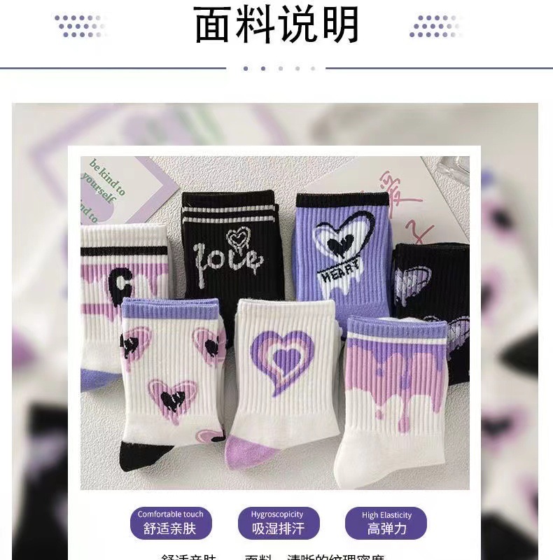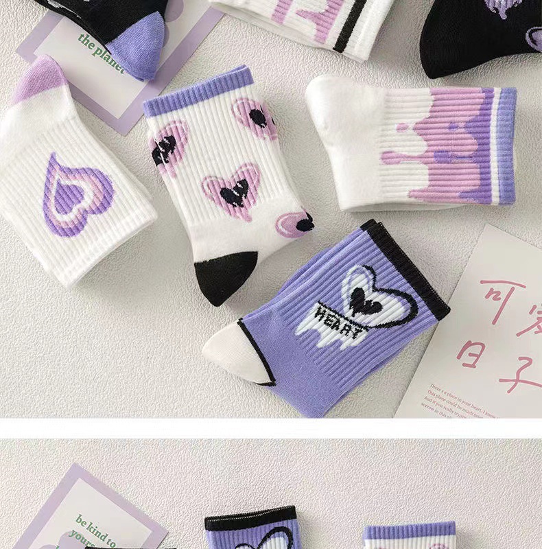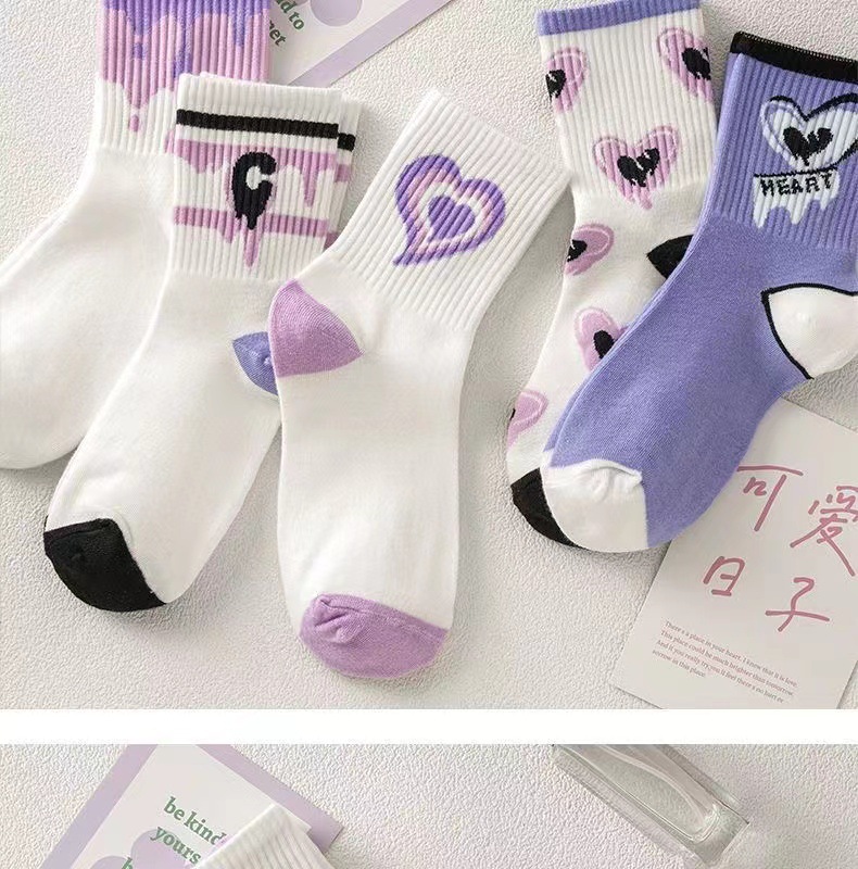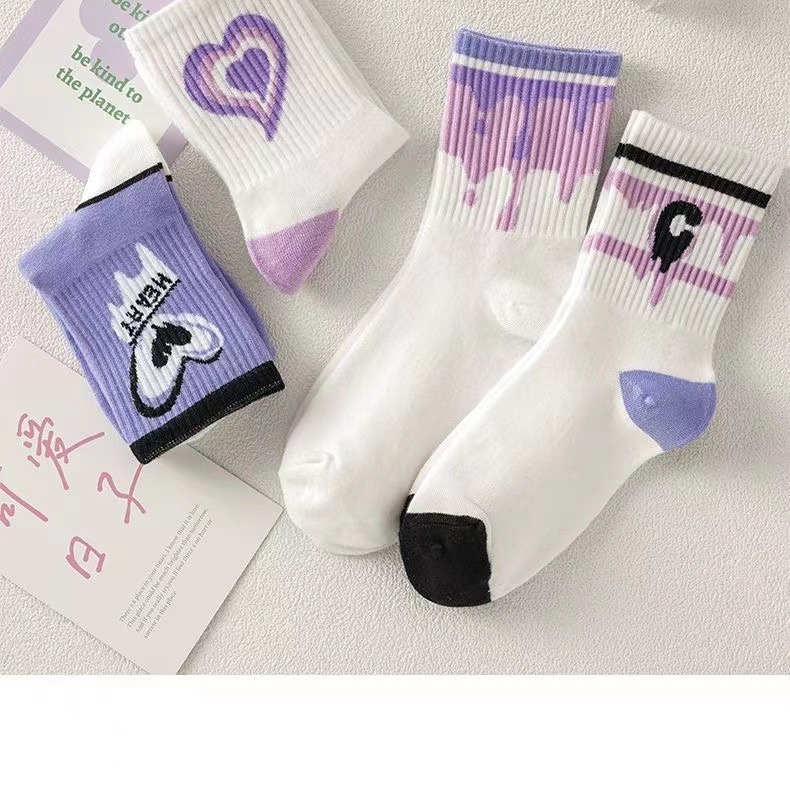 하이 얀 값 프라이드 스트리트 가을과 겨울 트렌디 한 보라색 양말 여성용 중간 배럴 모든 매치 웨스턴 스타일 만화 스포츠 미국 스타킹
