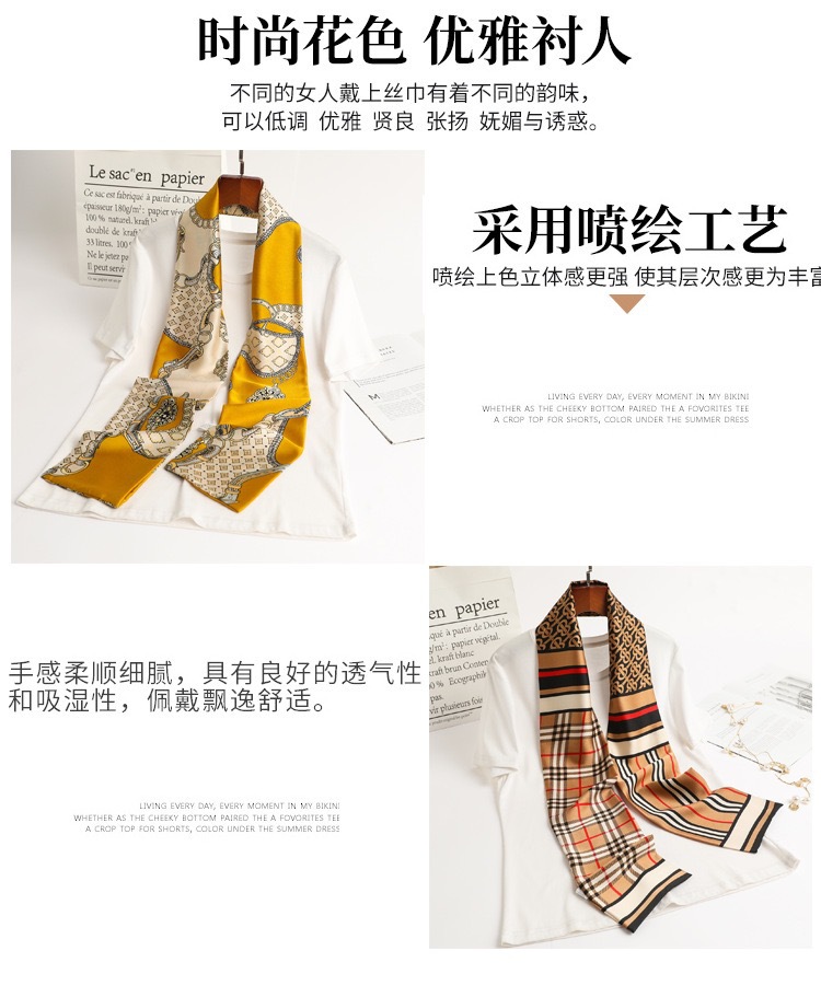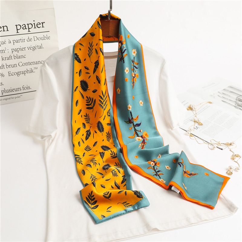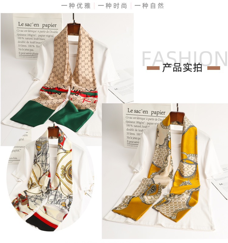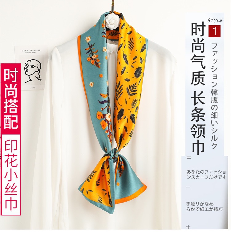 여성을위한 새로운 모조 실크 긴 스카프 더블 레이어 양면 실크 스카프의 한국어 버전 봄과 가을 패션 긴 스카프 작은 스카프 깃발 도매