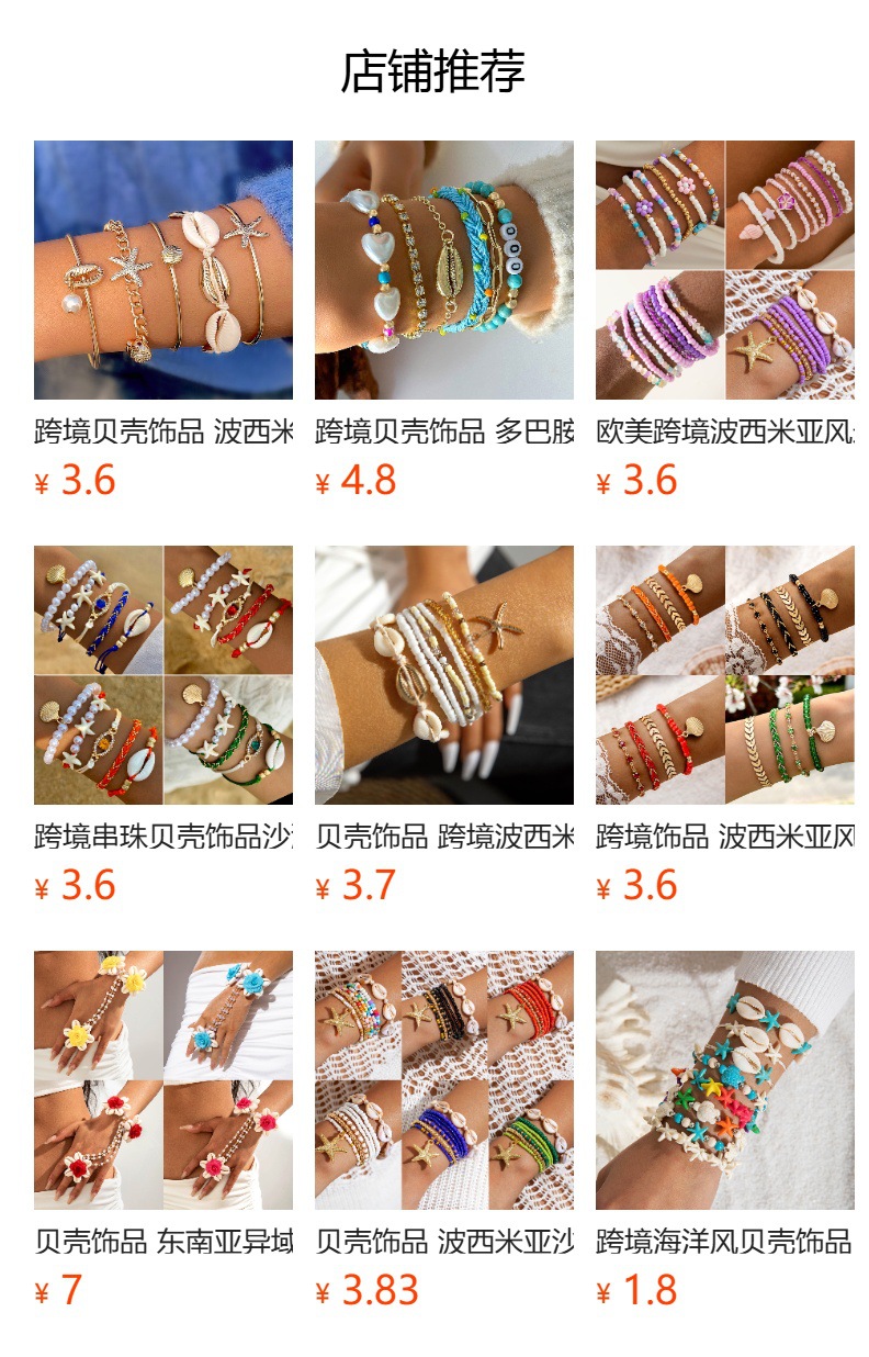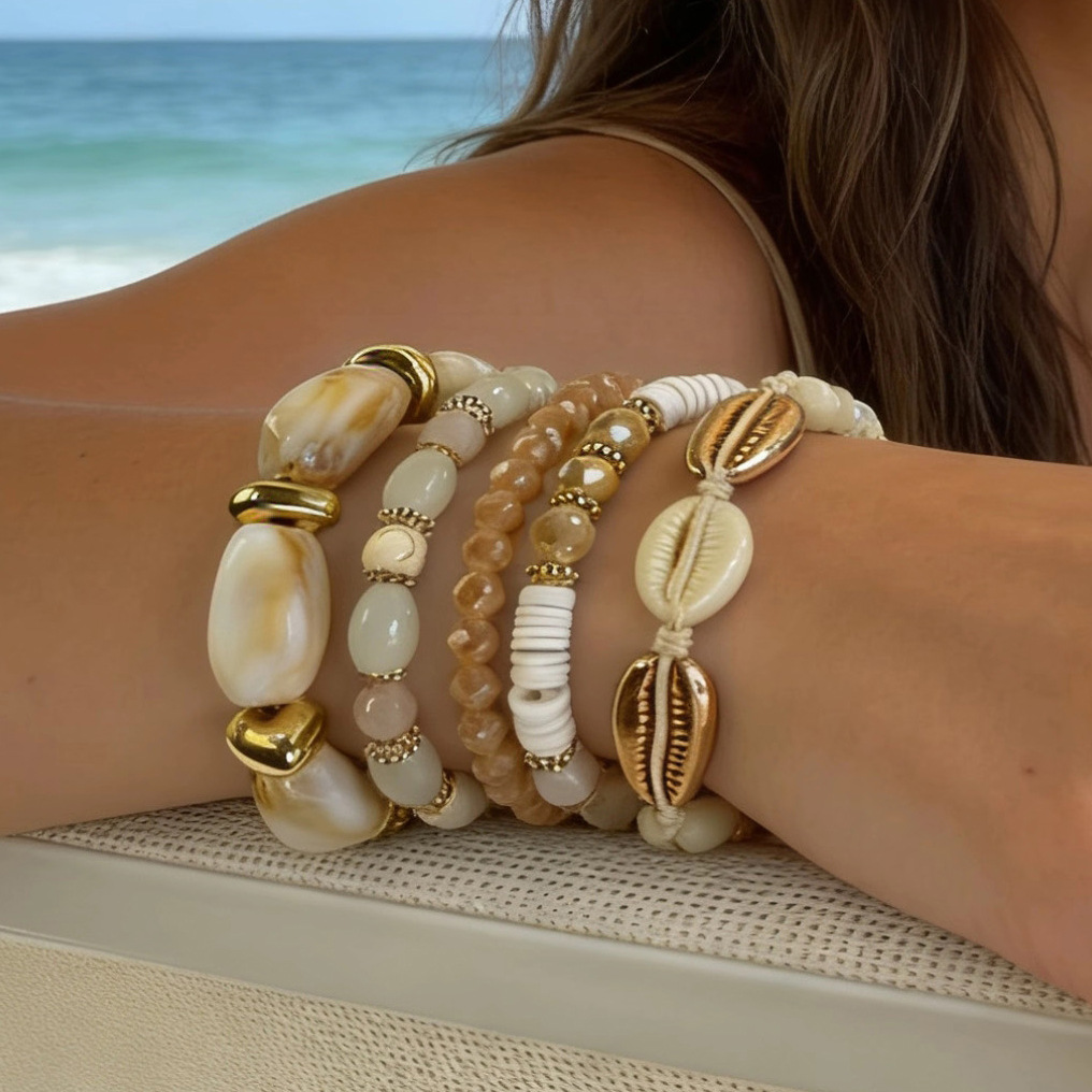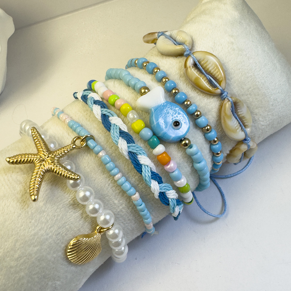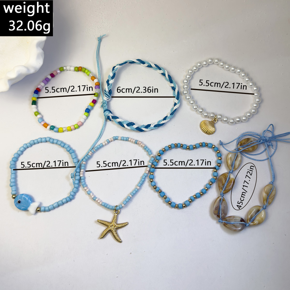 조개껍데기 장식품, 보헤미안 비즈 끈 발찌, 불가사리 비즈 7종 세트, 고급스럽고 독창적인 팔찌