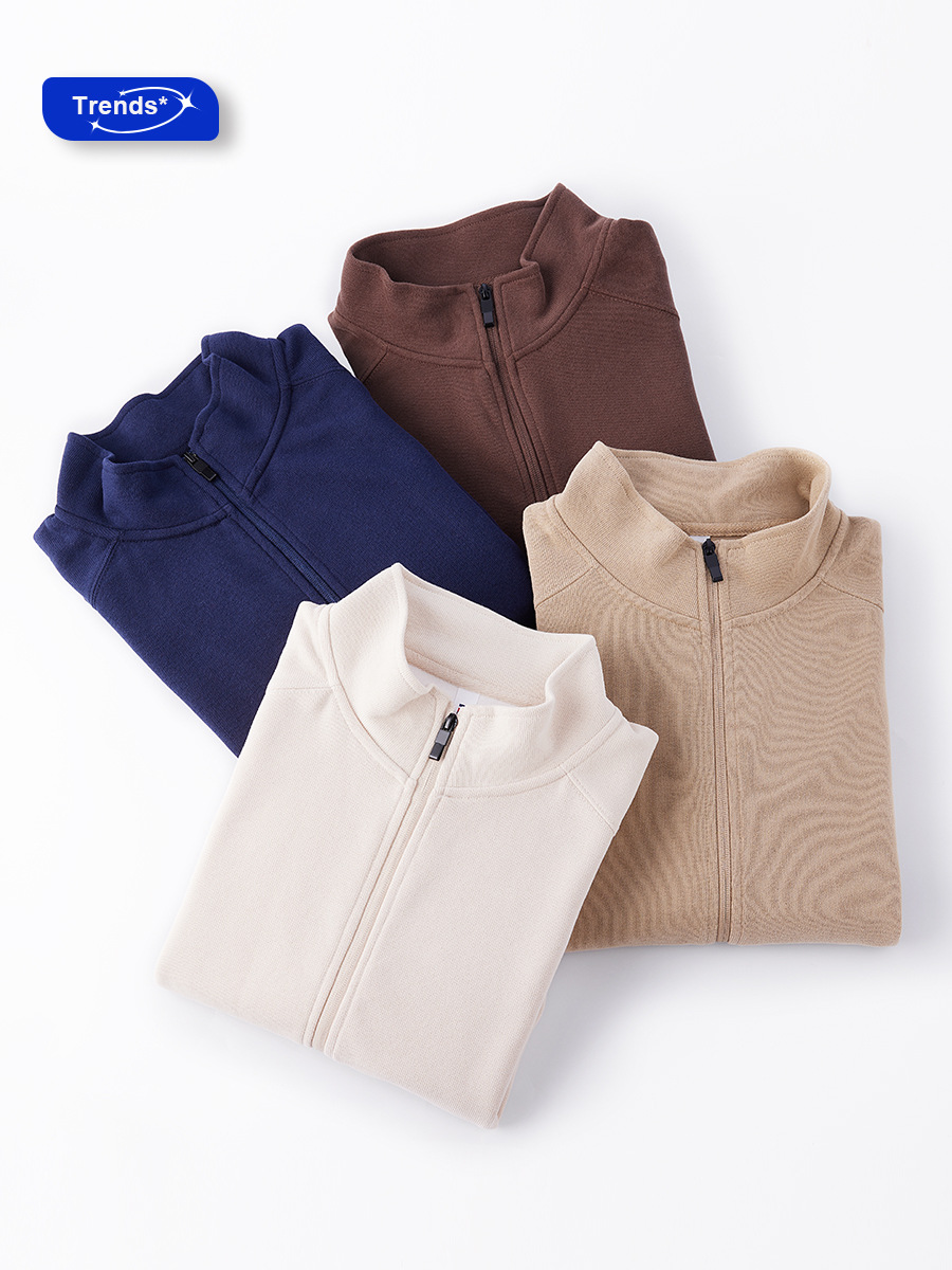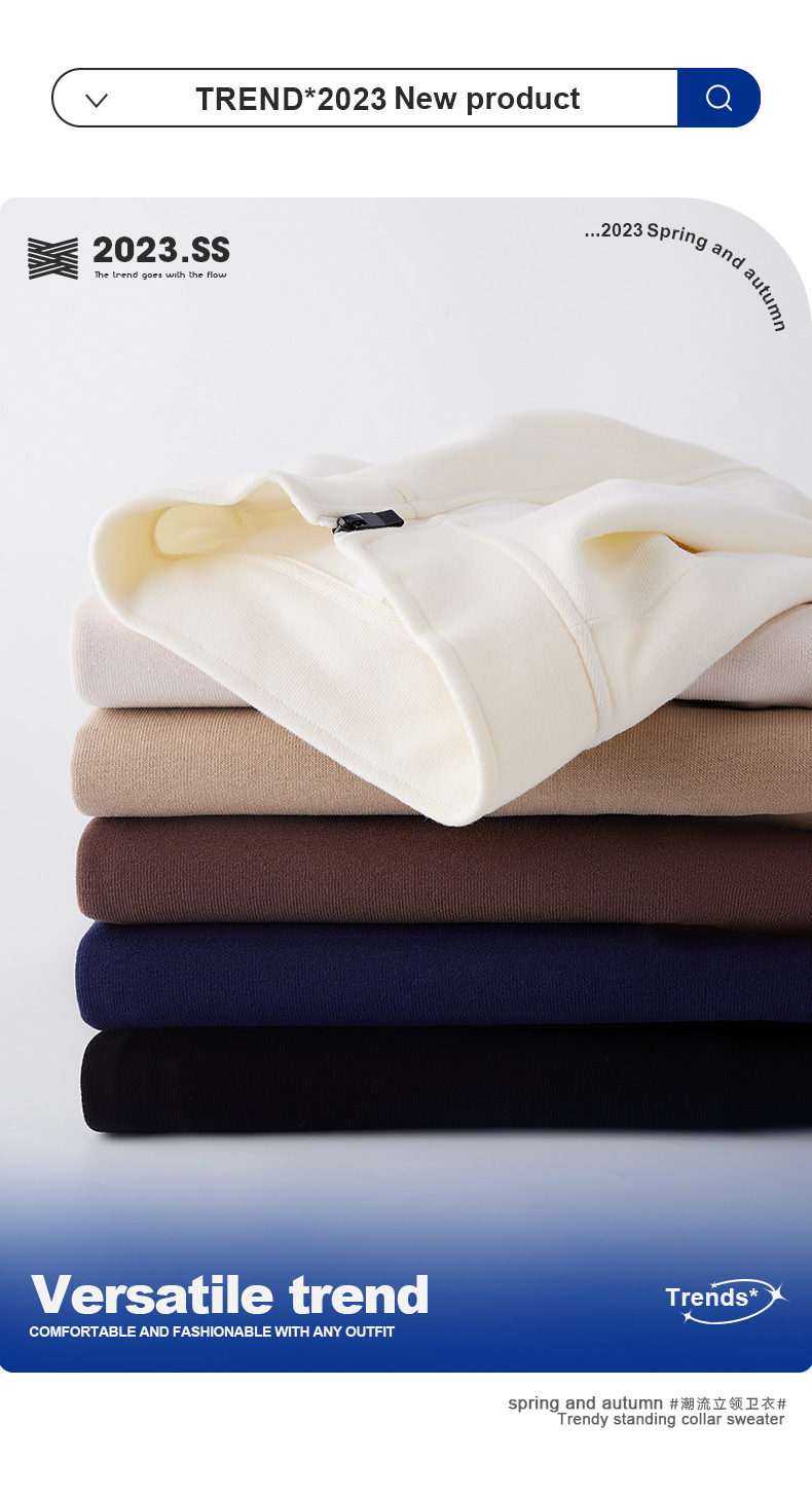 남자의 가을과 겨울 새로운 수직 칼라 스웨터 사용자 정의 지퍼 카디건 단색 긴 소매 한국 스타일 트렌디 브랜드 캐주얼 스포츠 재킷