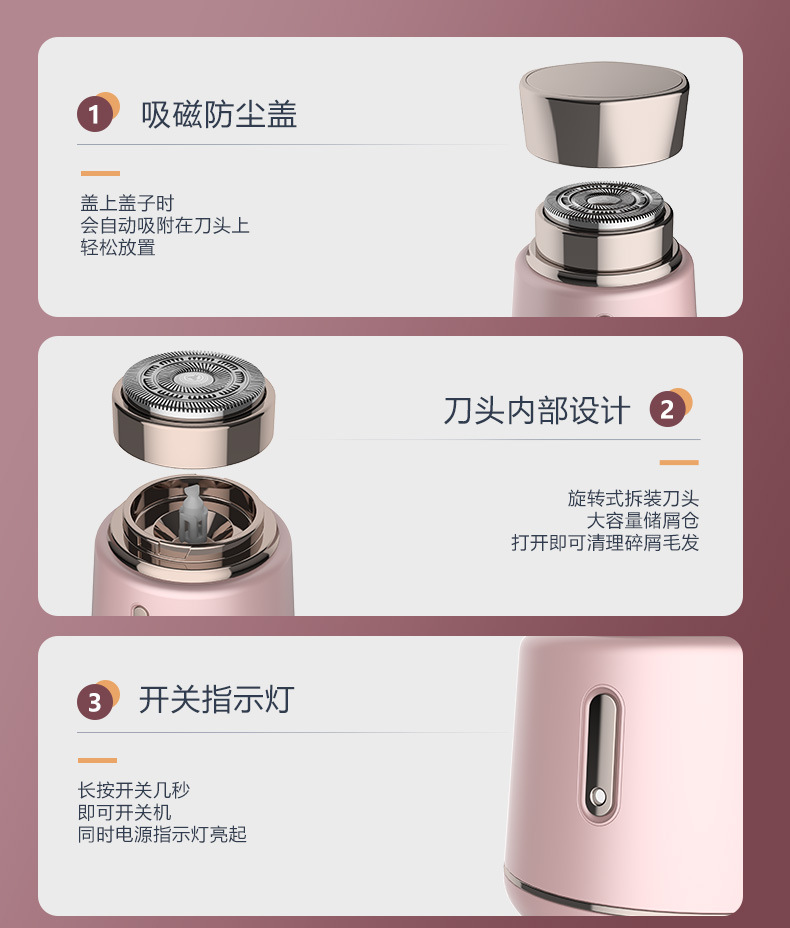4. 配置磁吸刀头保护帽(内带有镜子,私下保护膜可当镜子使用),贴心设计.