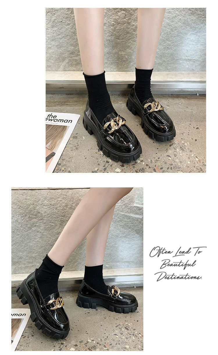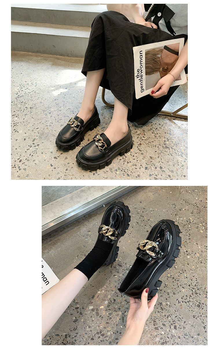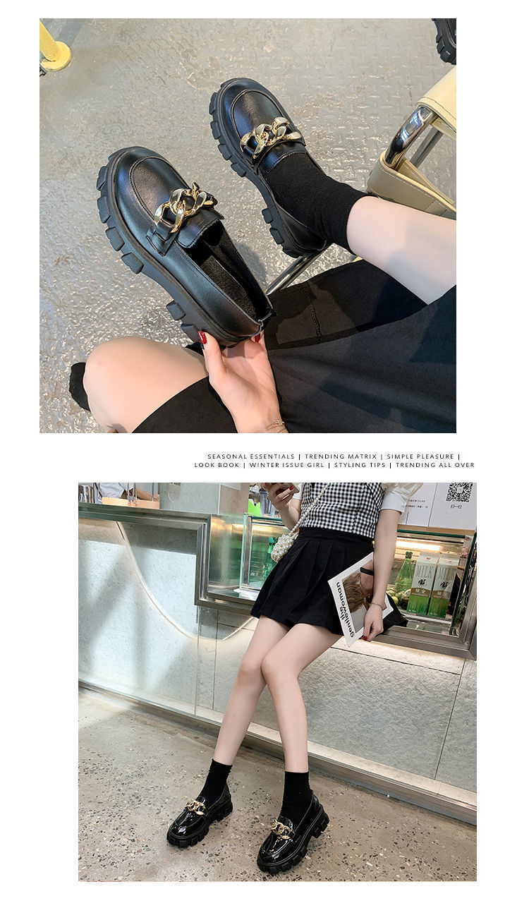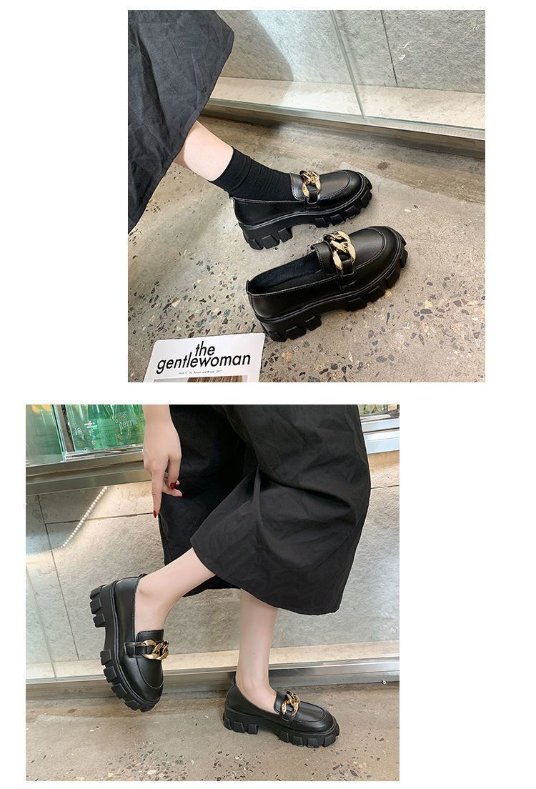 21 가을 모든 경기 복고풍 체인 로퍼의 새로운 한국어 버전 두꺼운 바닥 라운드 발가락 신발 jk 작은 가죽 신발 여성의 영국 스타일