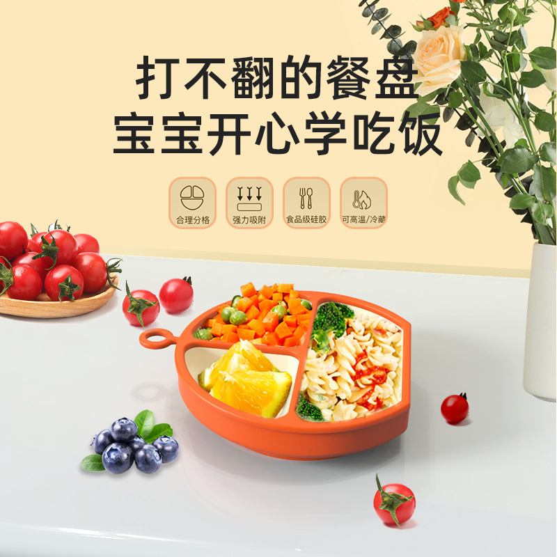 맞춤형 아기 실리콘 플레이트 어린이 식기 세트 실리콘 흡입 플레이트 아기 독립 식사 구획