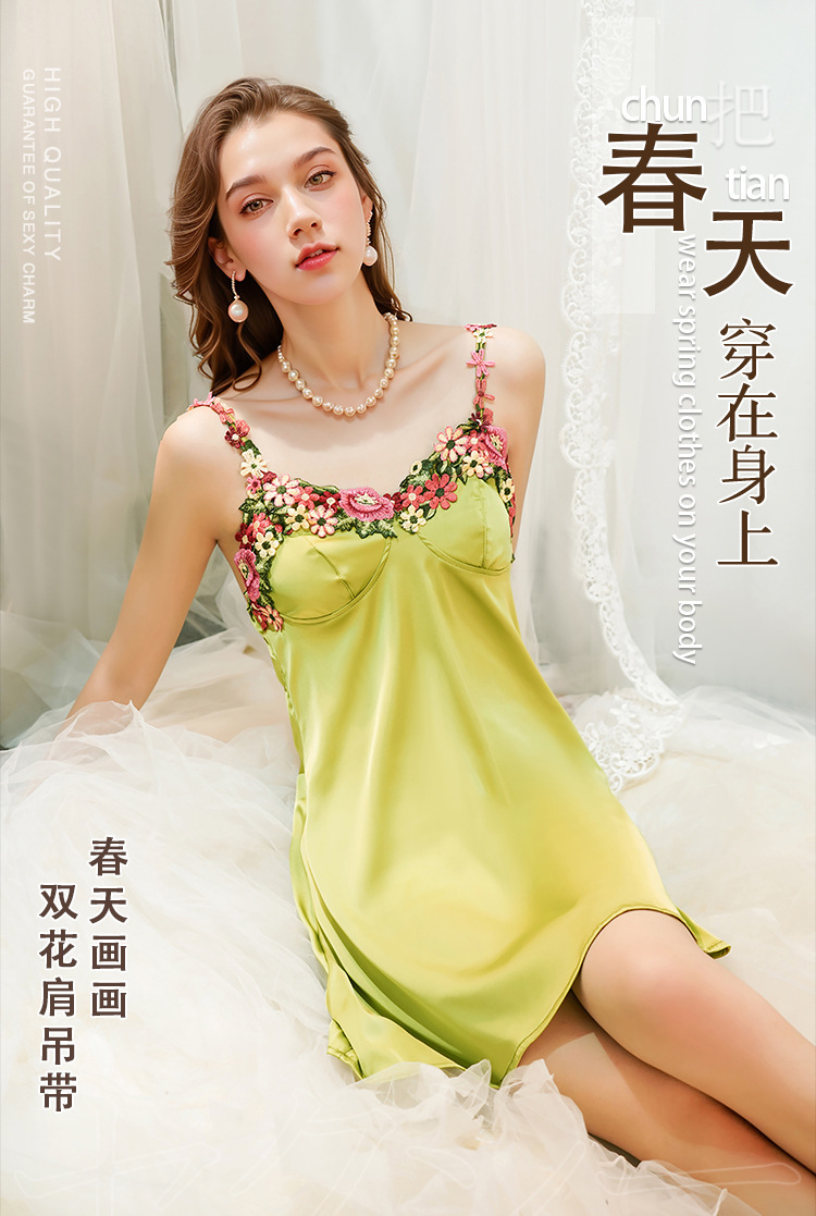 Ying 새로운 스타일 잠옷 섹시한 슬링 리본 새틴 잠옷 여자의 여름 순수한 욕망 잠옷 매혹적인 란제리 세트