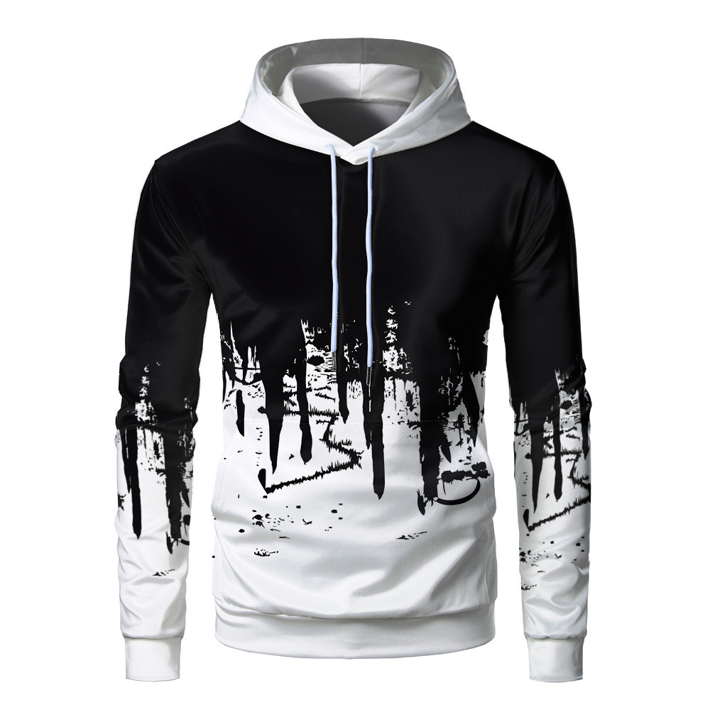 2023 국경 새로운 3D 디지털 잉크젯 후드 스웨터 양털 느슨한 남성용 스웨터