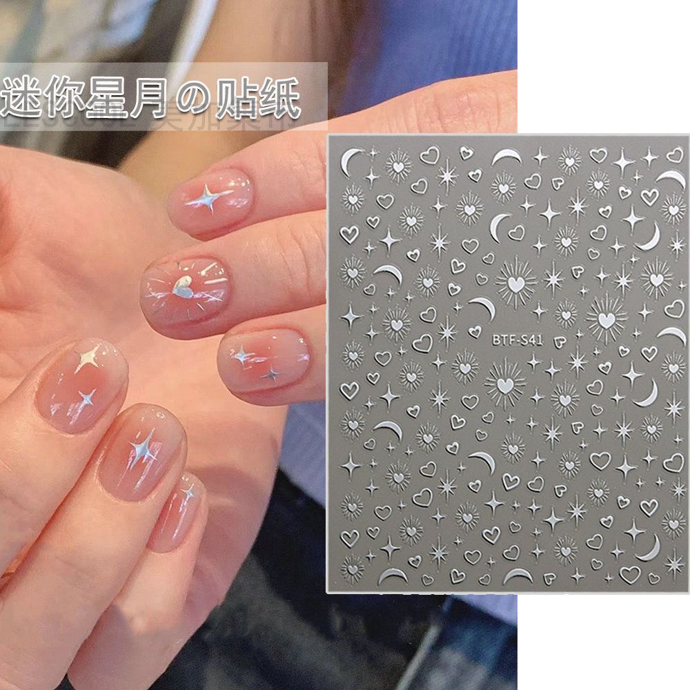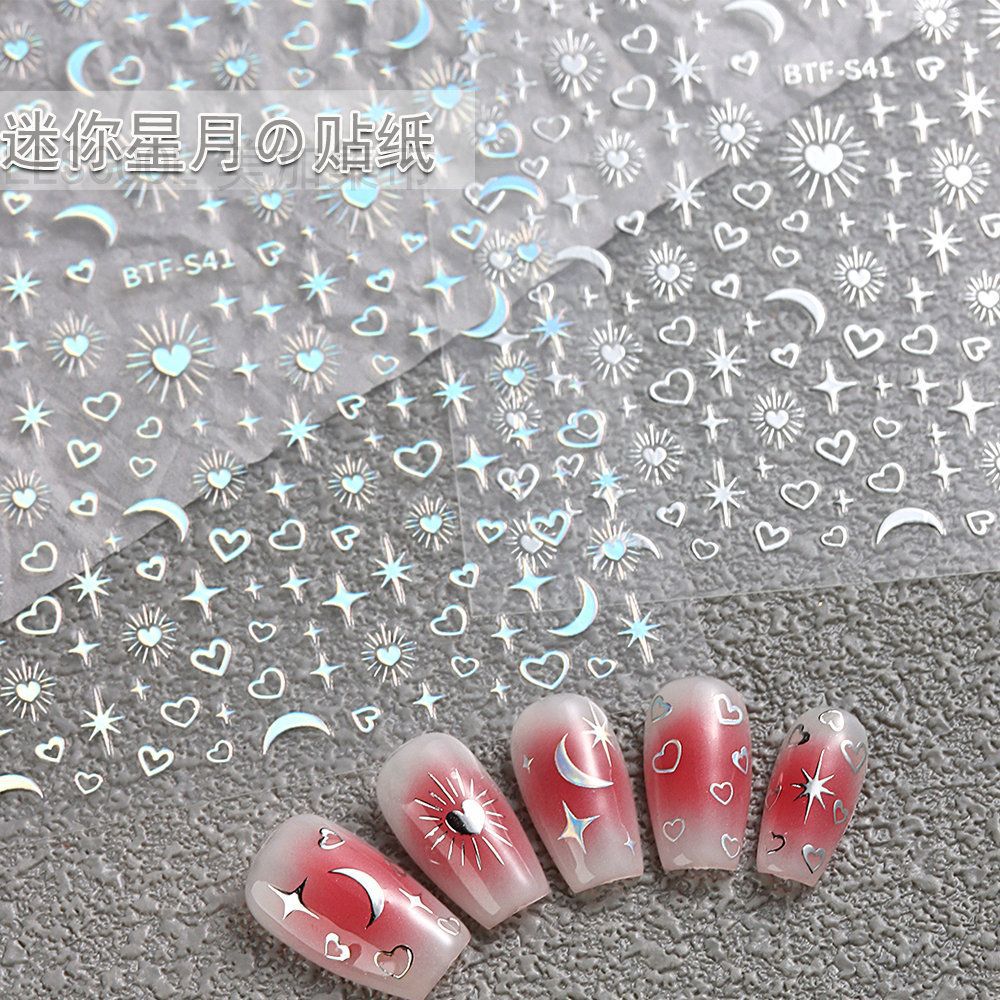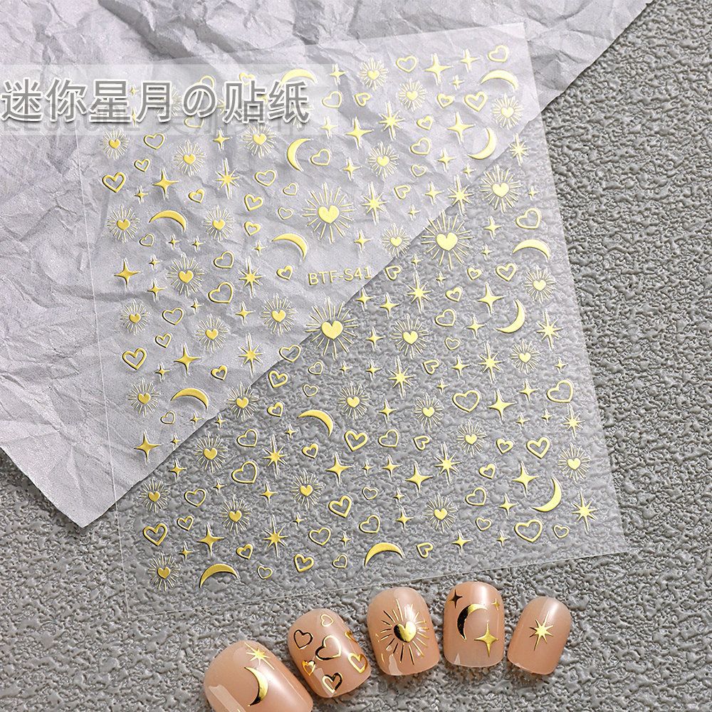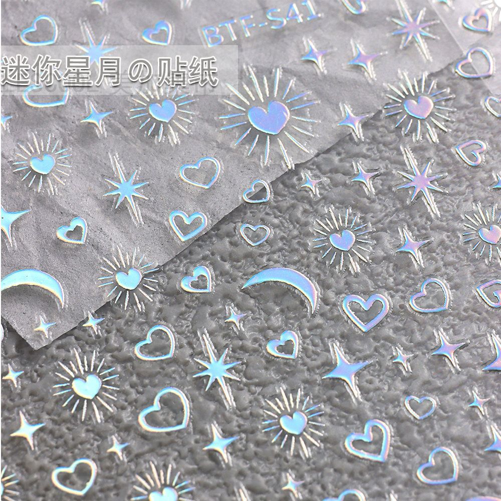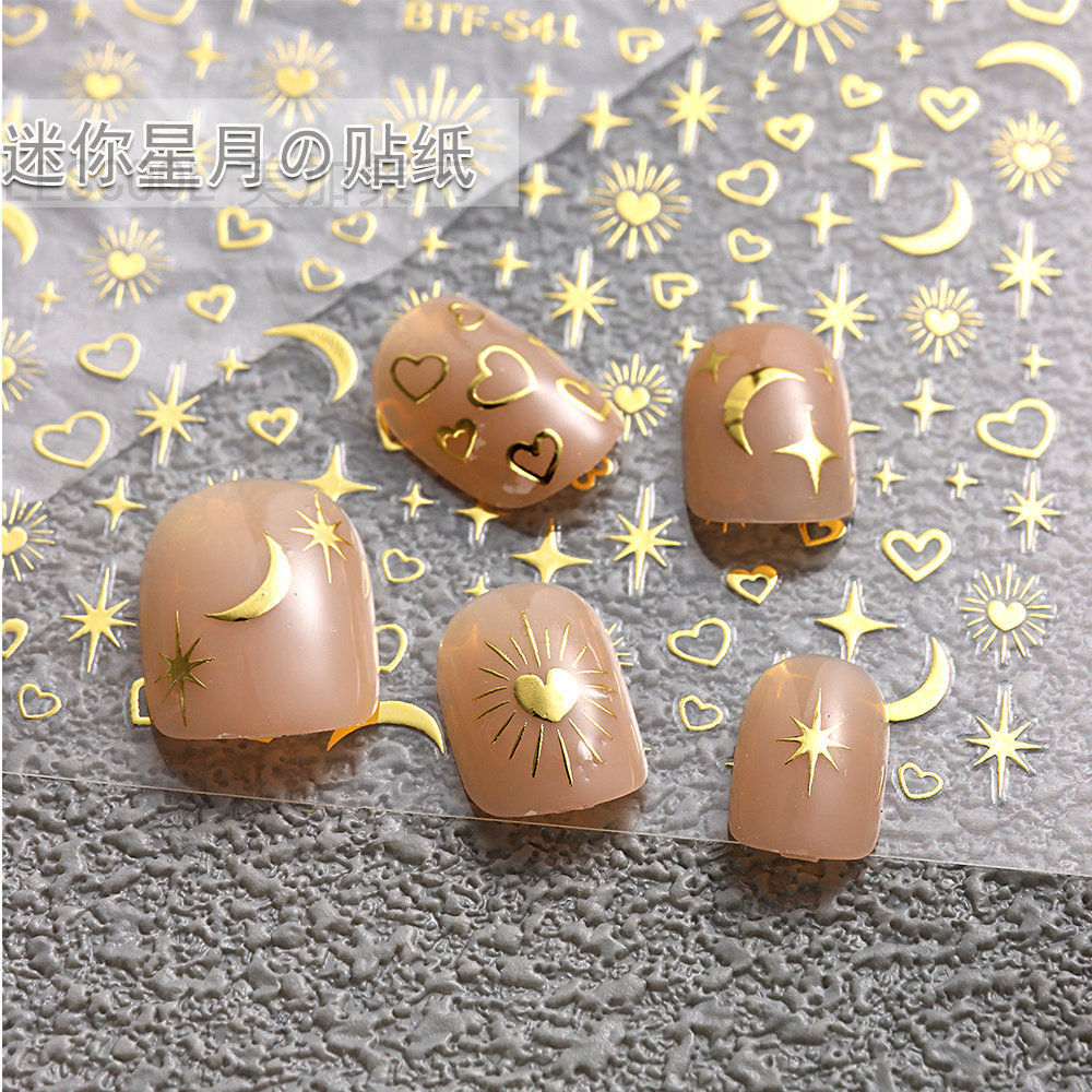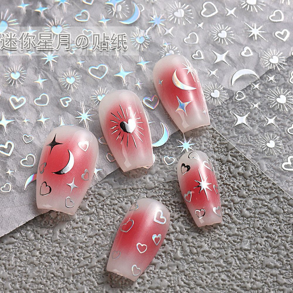 네일 아트 스티커 금 사랑 스타 달 기하학적 패턴 3D 방수 실버 초승달 별 비료 스티커 네일 아트 장식