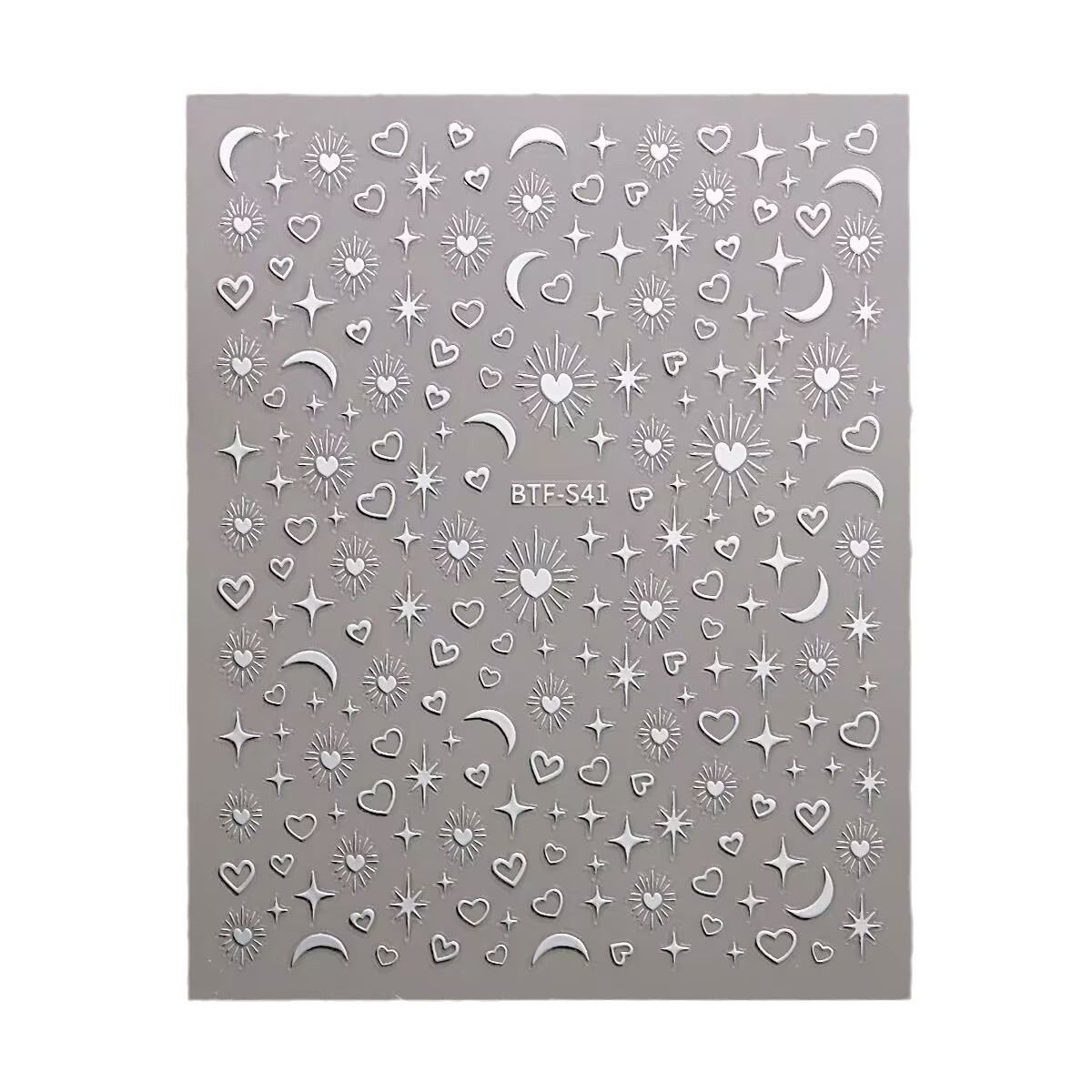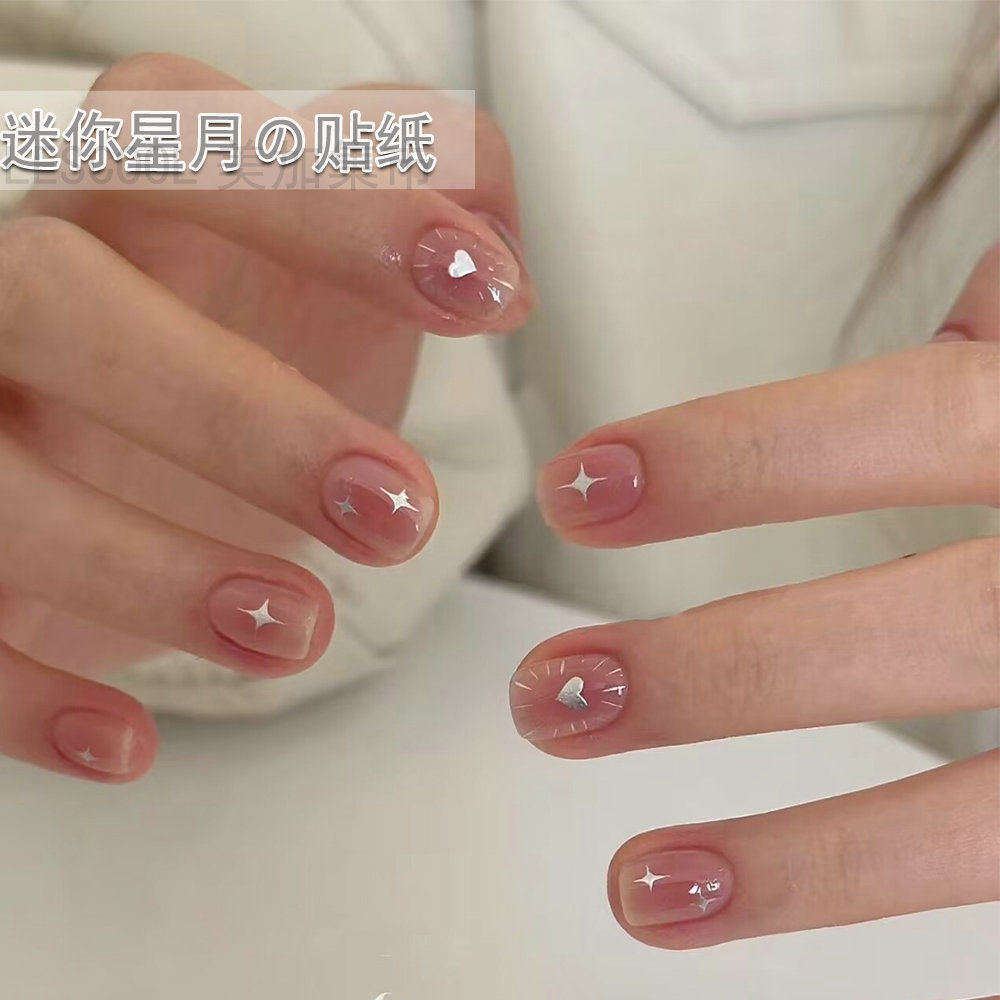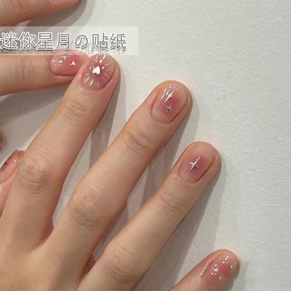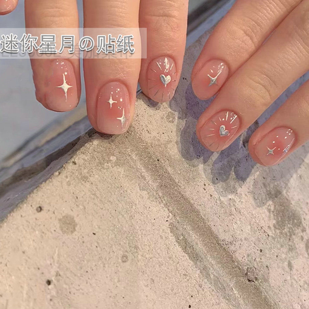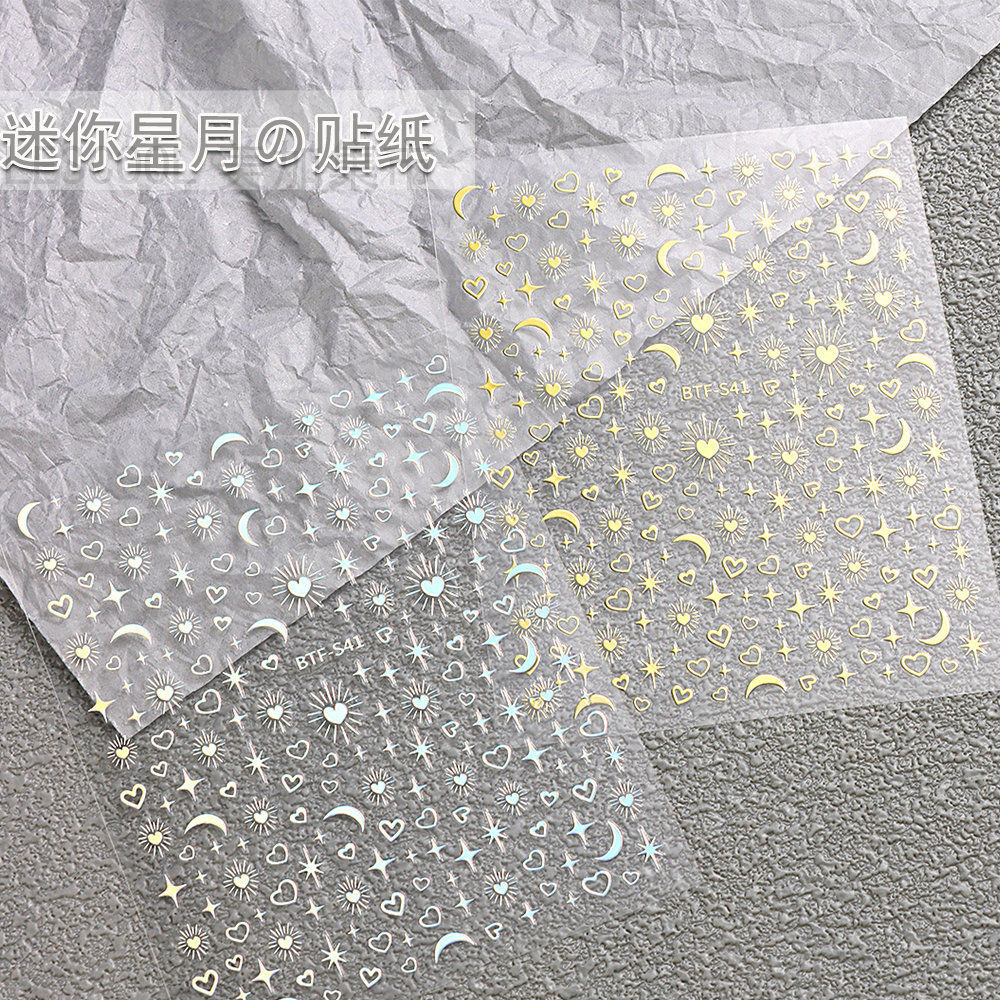 네일 아트 스티커 금 사랑 스타 달 기하학적 패턴 3D 방수 실버 초승달 별 비료 스티커 네일 아트 장식