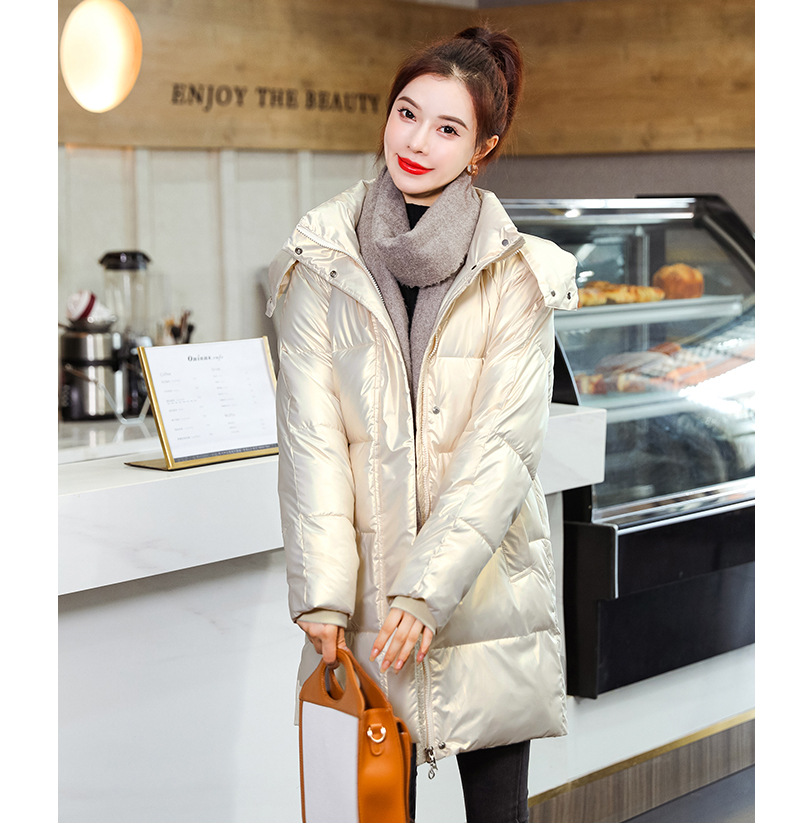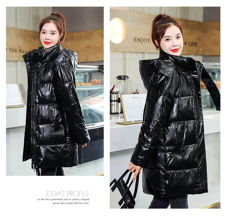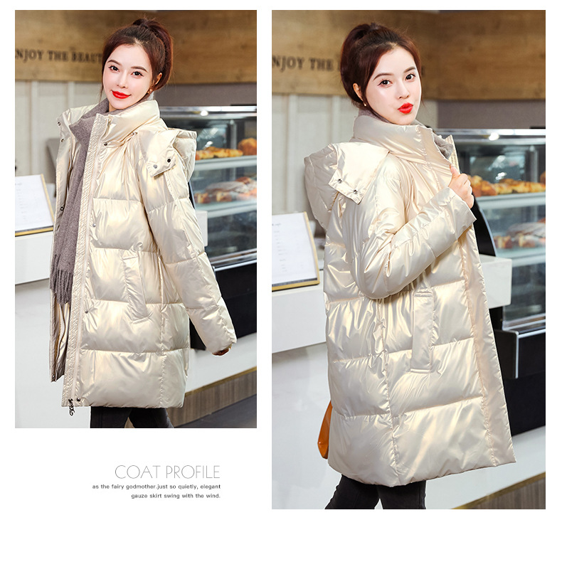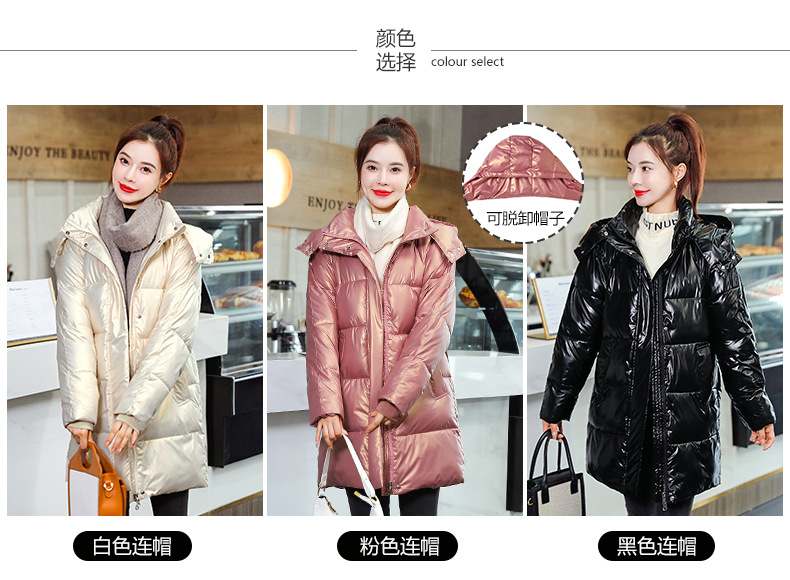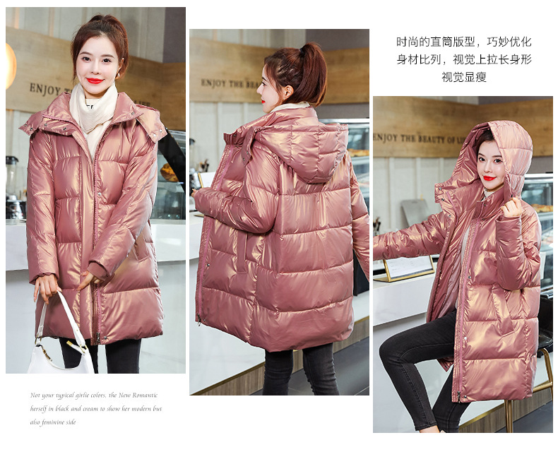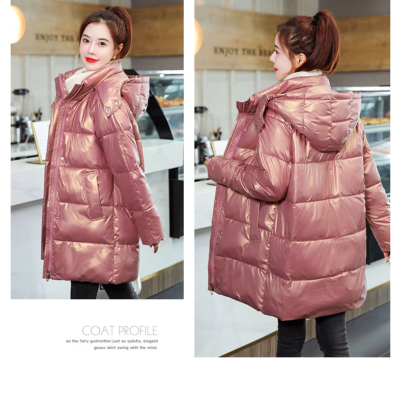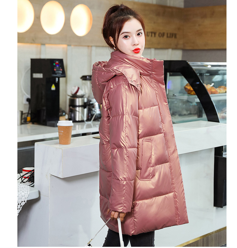 2025 겨울 새로운 스타일 광택 노워시 다운 코튼 코트 여성 중간 길이 한국 스타일 후드 코튼 코트 두꺼운 코튼 코트