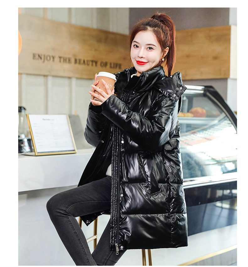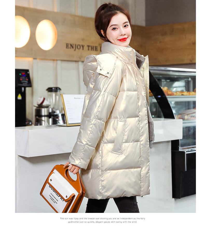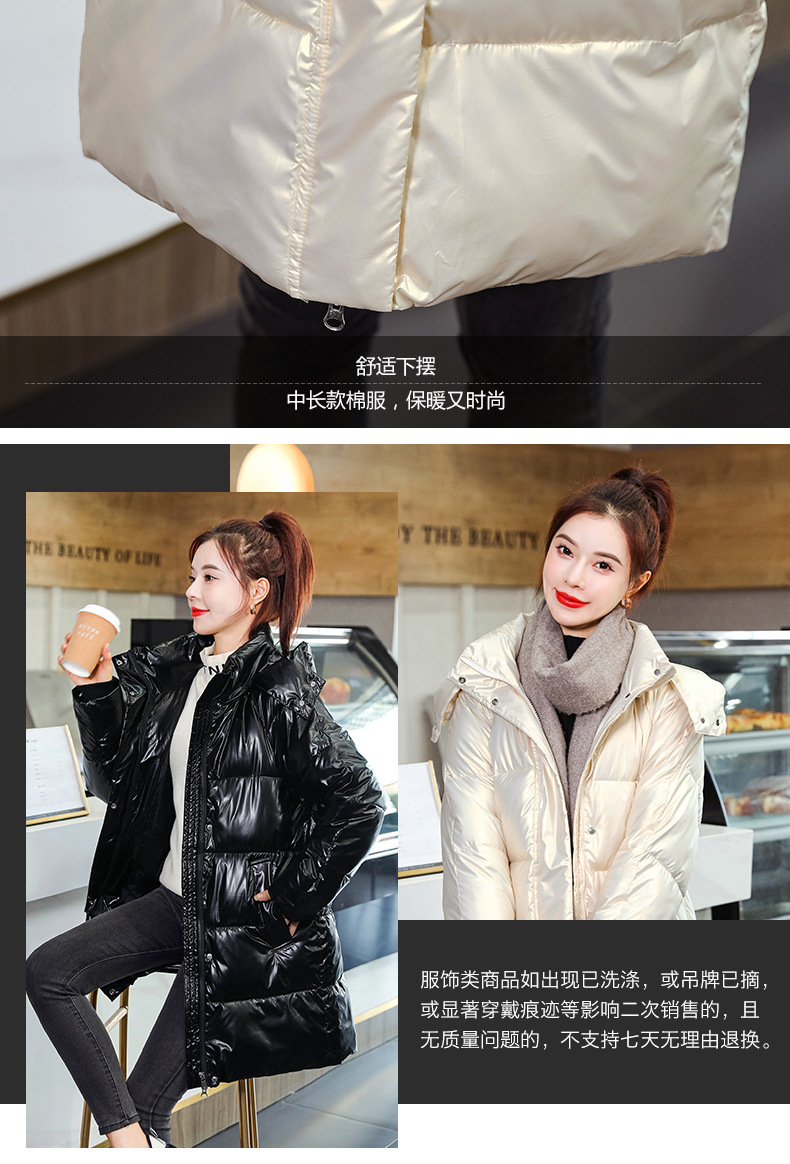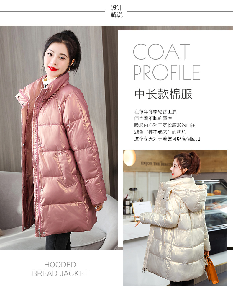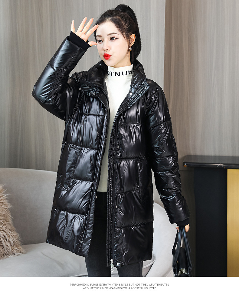 2025 겨울 새로운 스타일 광택 노워시 다운 코튼 코트 여성 중간 길이 한국 스타일 후드 코튼 코트 두꺼운 코튼 코트