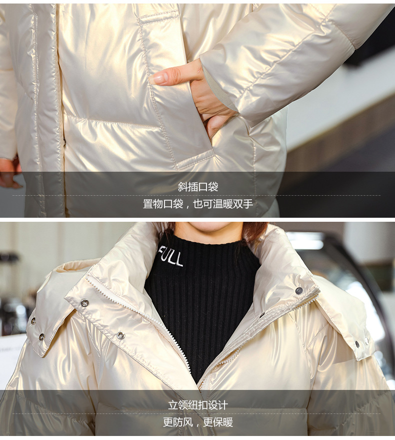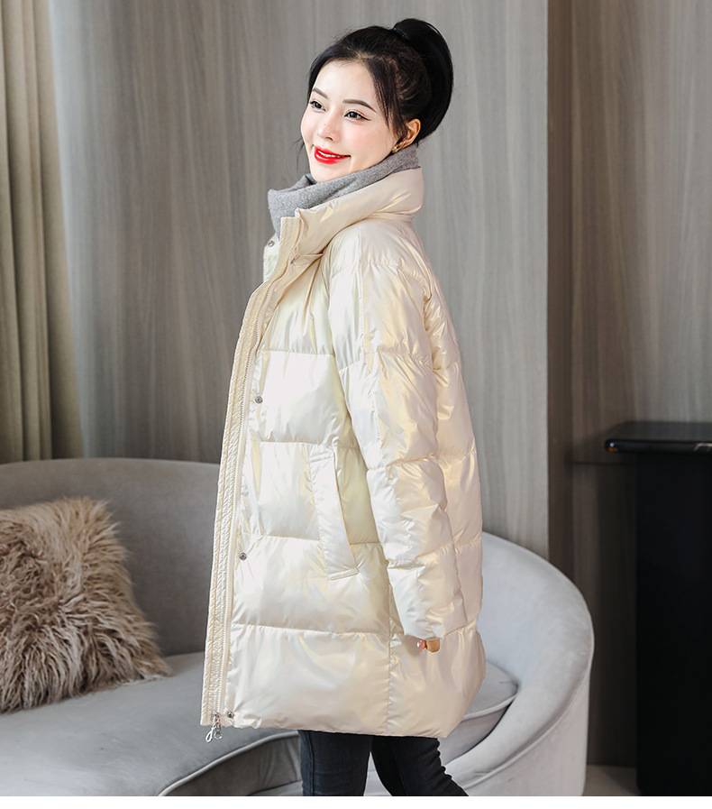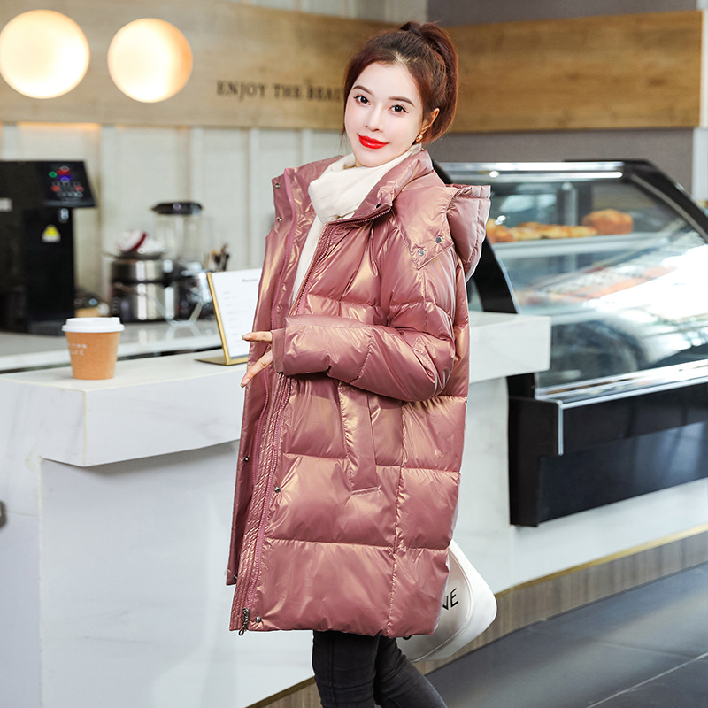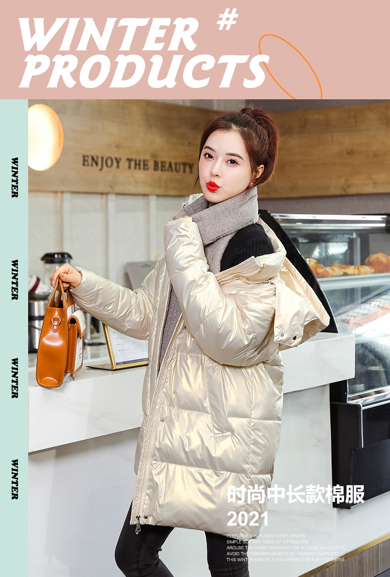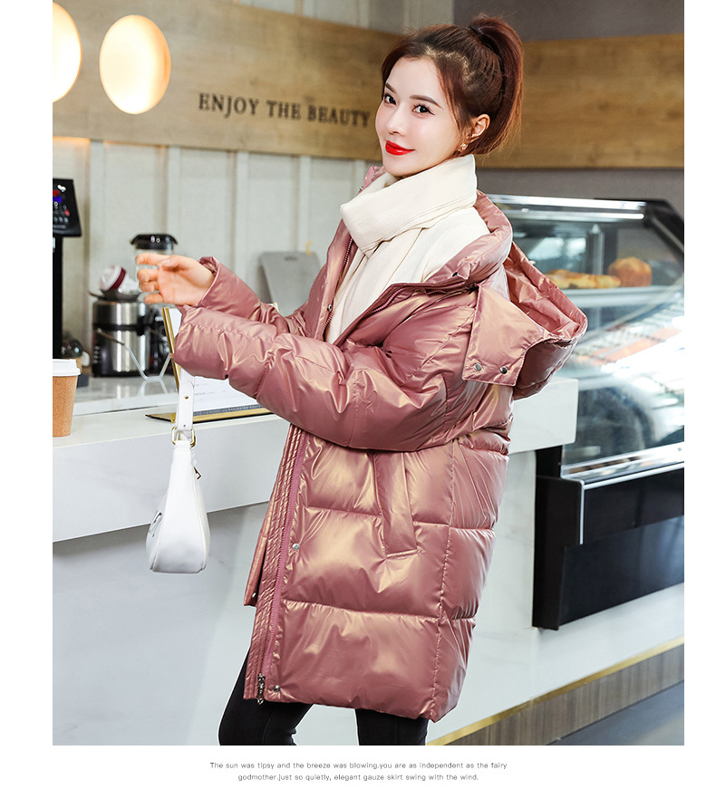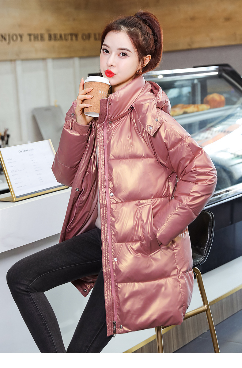 2025 겨울 새로운 스타일 광택 노워시 다운 코튼 코트 여성 중간 길이 한국 스타일 후드 코튼 코트 두꺼운 코튼 코트