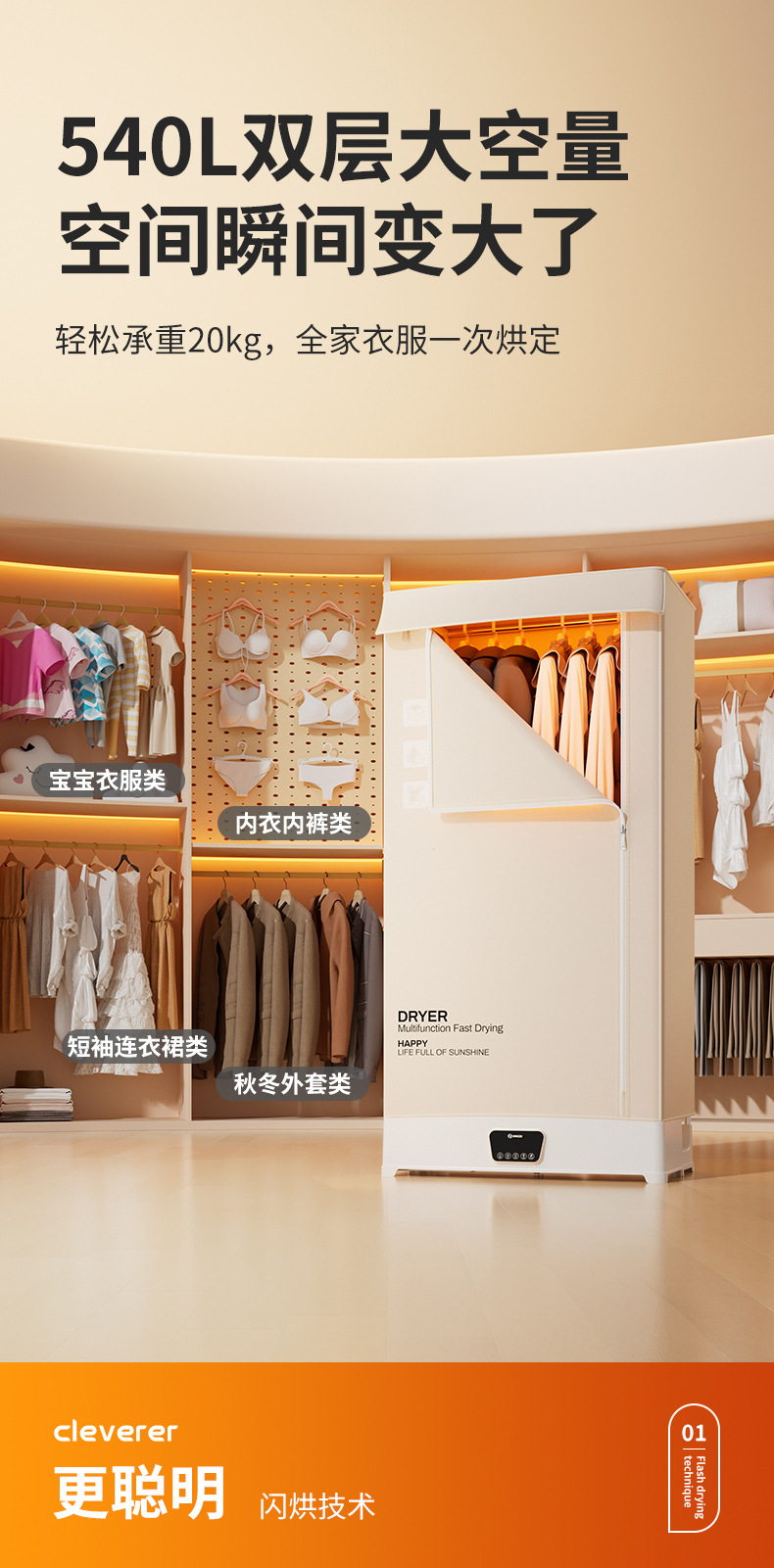 엄선된 제품 ☆ 양쯔 가정용 소형 전자동 속건 살균 접이식 서랍형 휴대용 의류 건조기