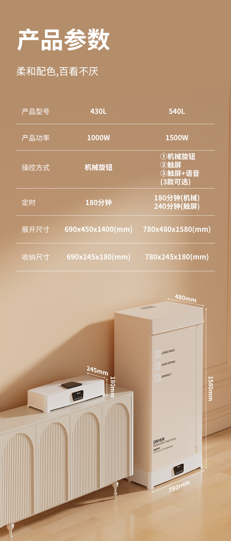 베이지 - 음성모델 [1500W] + 수건걸이 + 음이온 + 자외선 살균