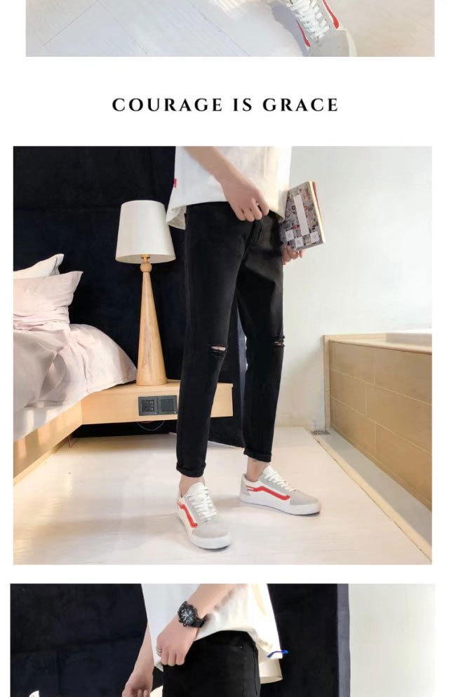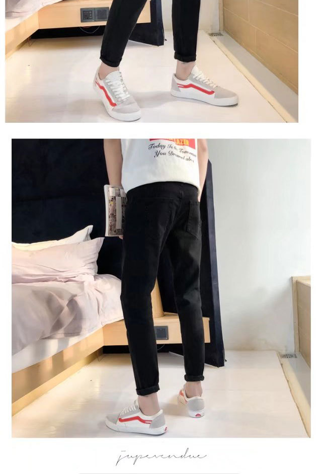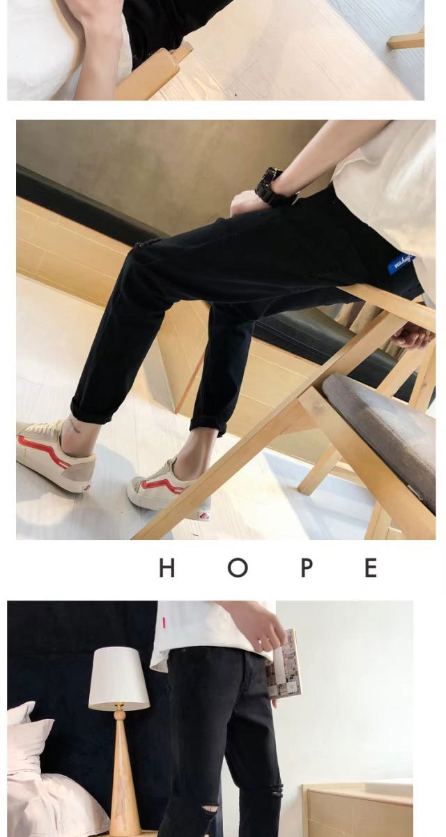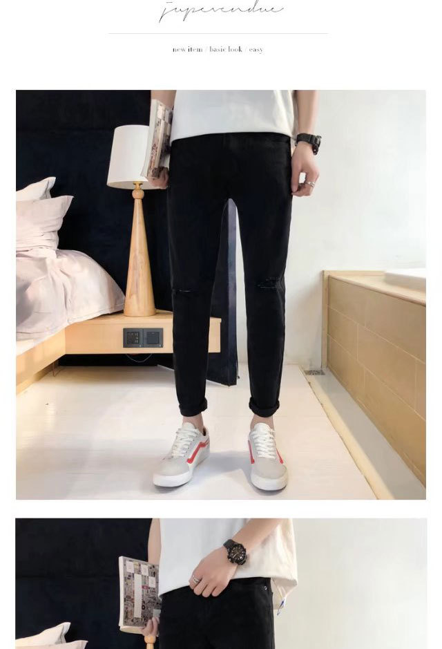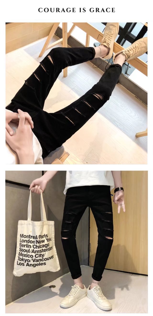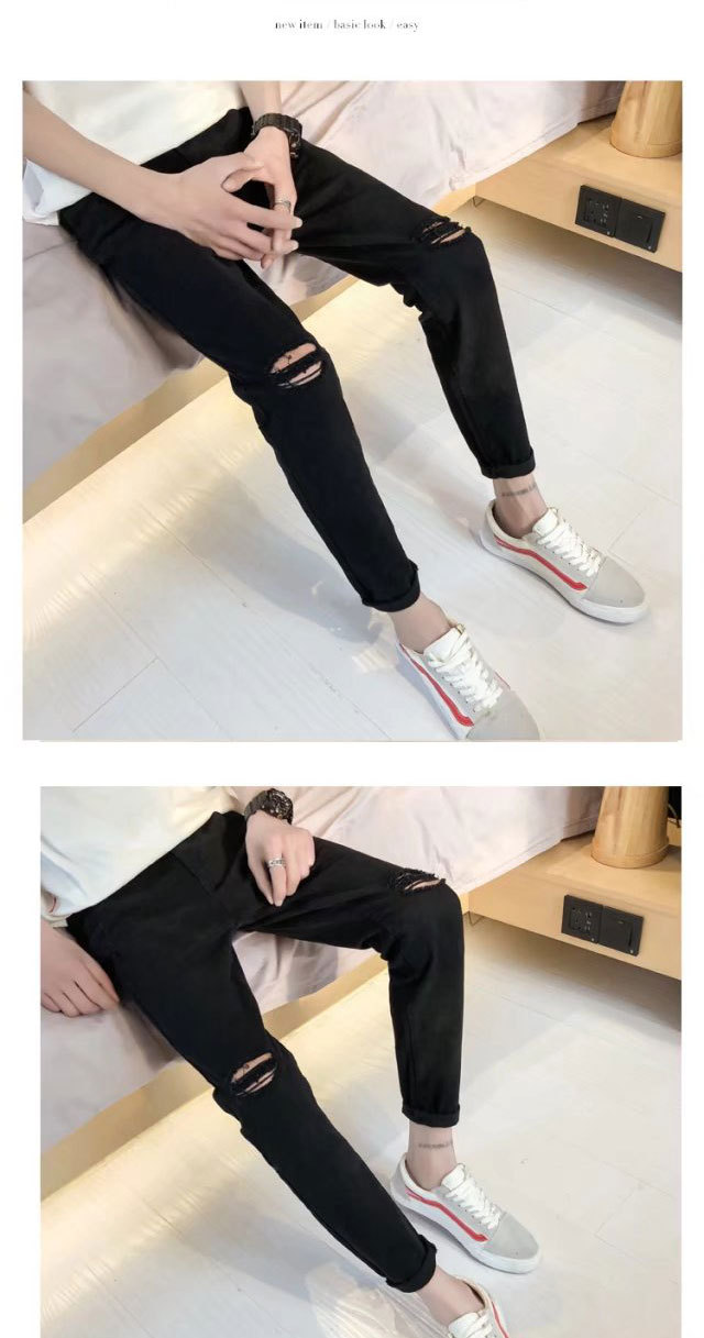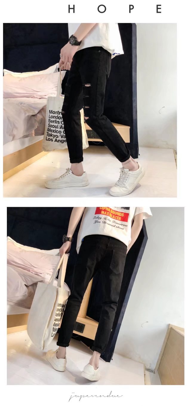 스톨 찢어진 청바지 남성용 신축성 있는 슬림핏 레그 팬츠 남성용 한국식 패셔너블한 9 점 블랙 9 점 거지 팬츠